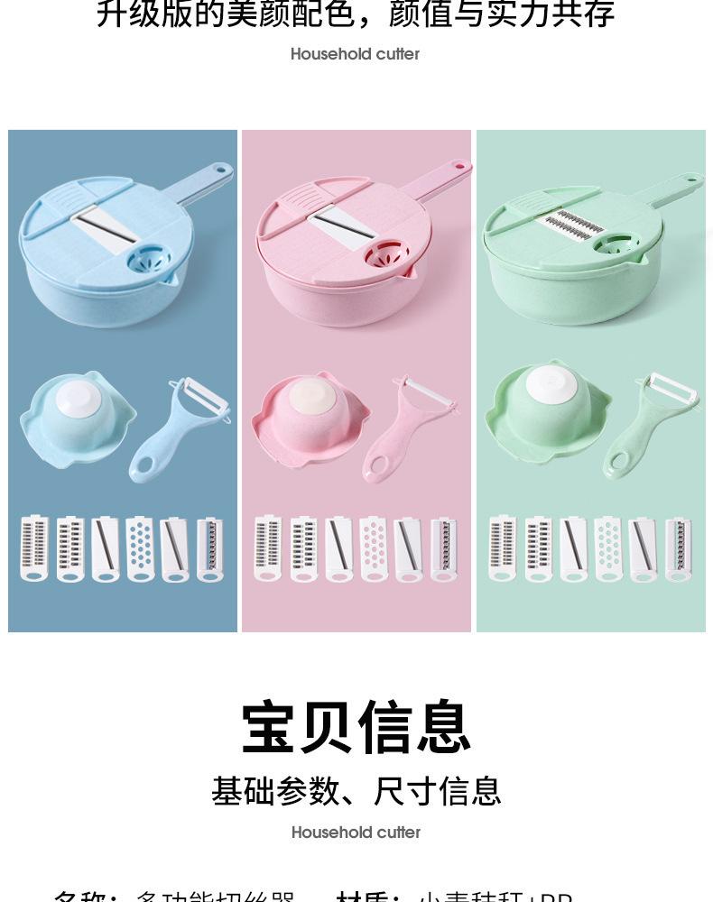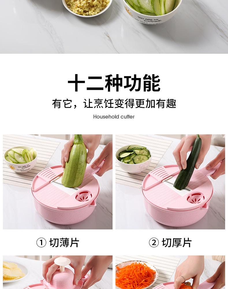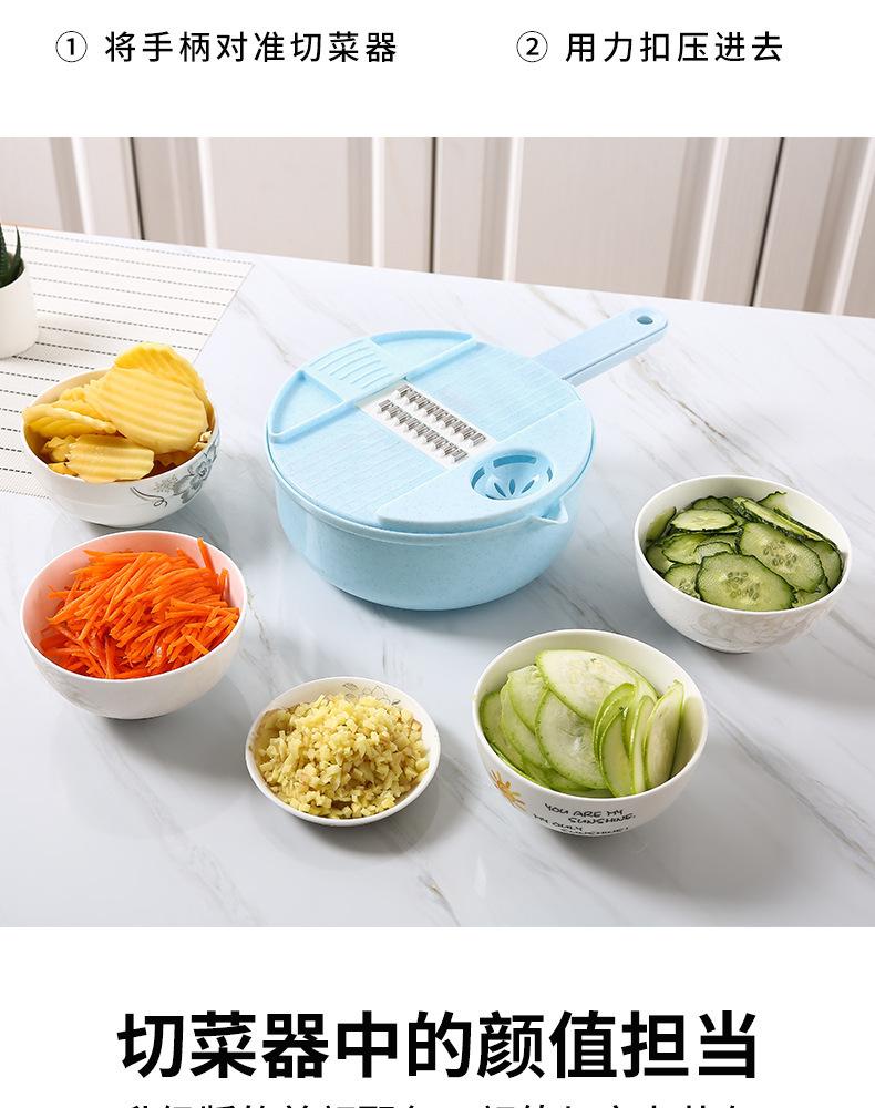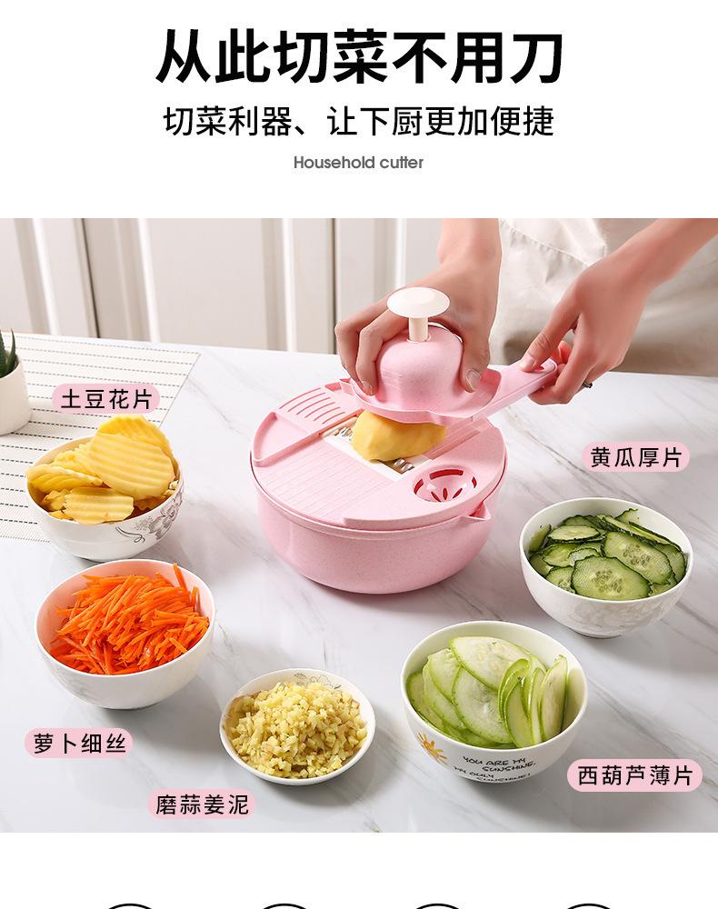 Cortador de verduras multifunción nueve en uno para cocina, utensilios de cocina, 12 piezas, rallador, trituradora de patatas y rábanos, cortador de verduras