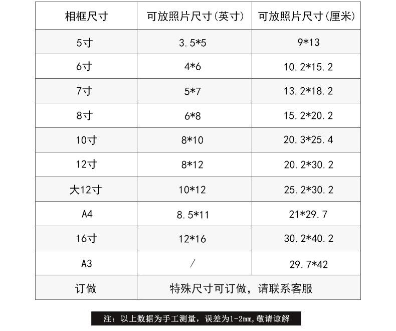 5-inch (9 * 13cm) table decoration, 6 inches (10.2 * cm) can be placed and Hung, 7inch (13*18cm) can be placed...