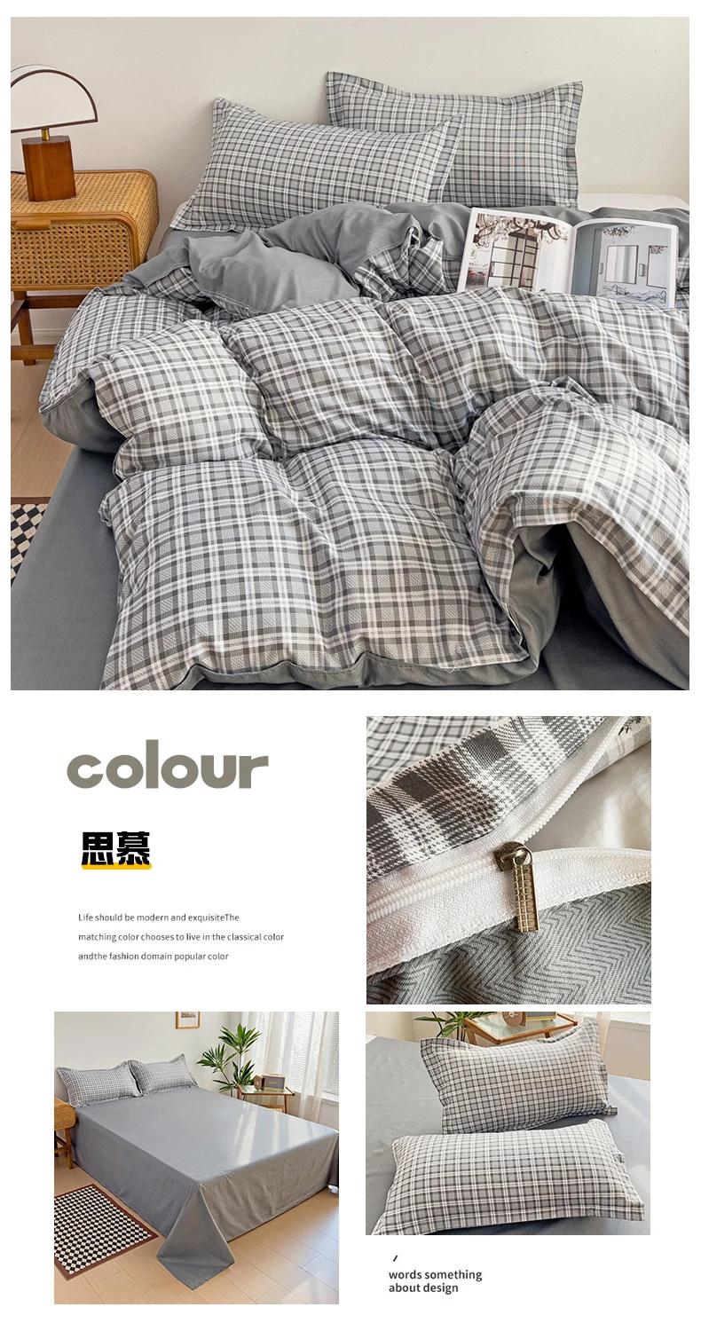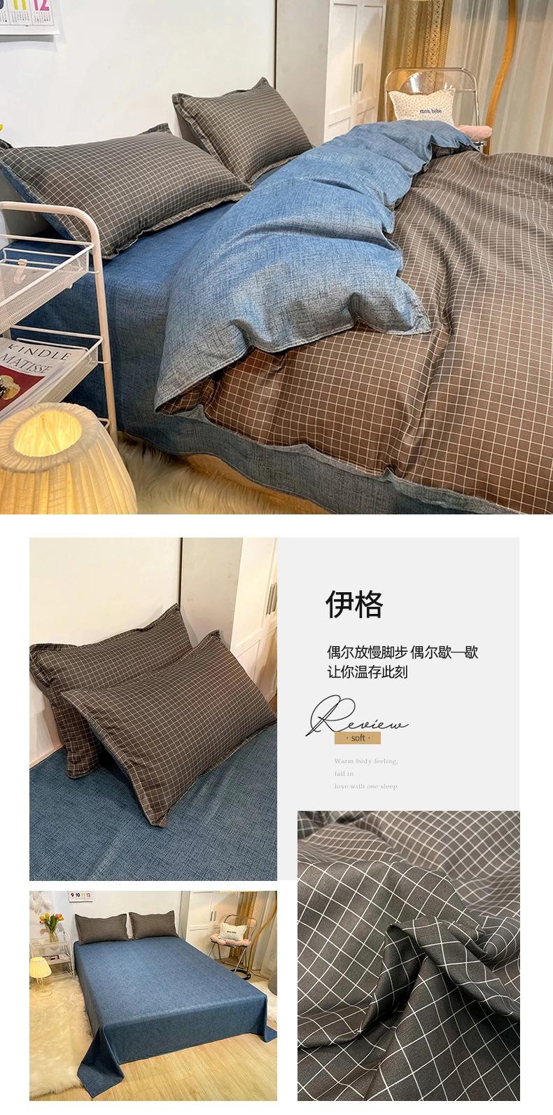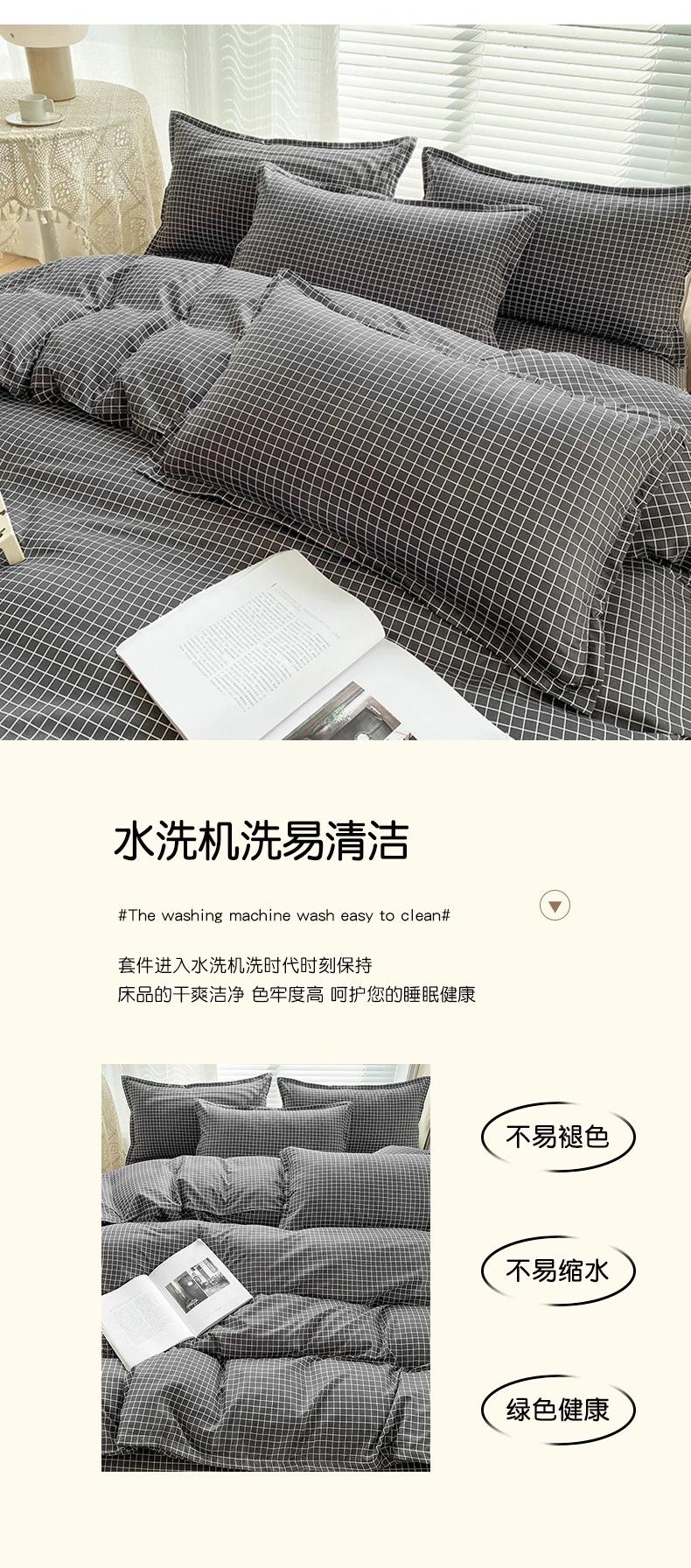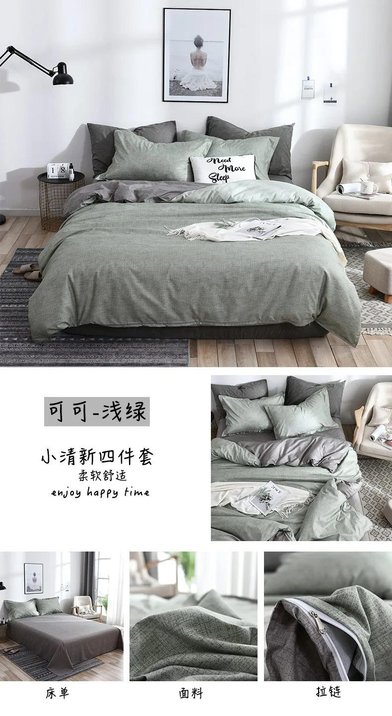 Juego de sábanas de cuatro piezas, funda nórdica, color liso simple, dormitorio de estudiantes, algodón lavado 3, sábana de tres piezas, ropa de cama 4