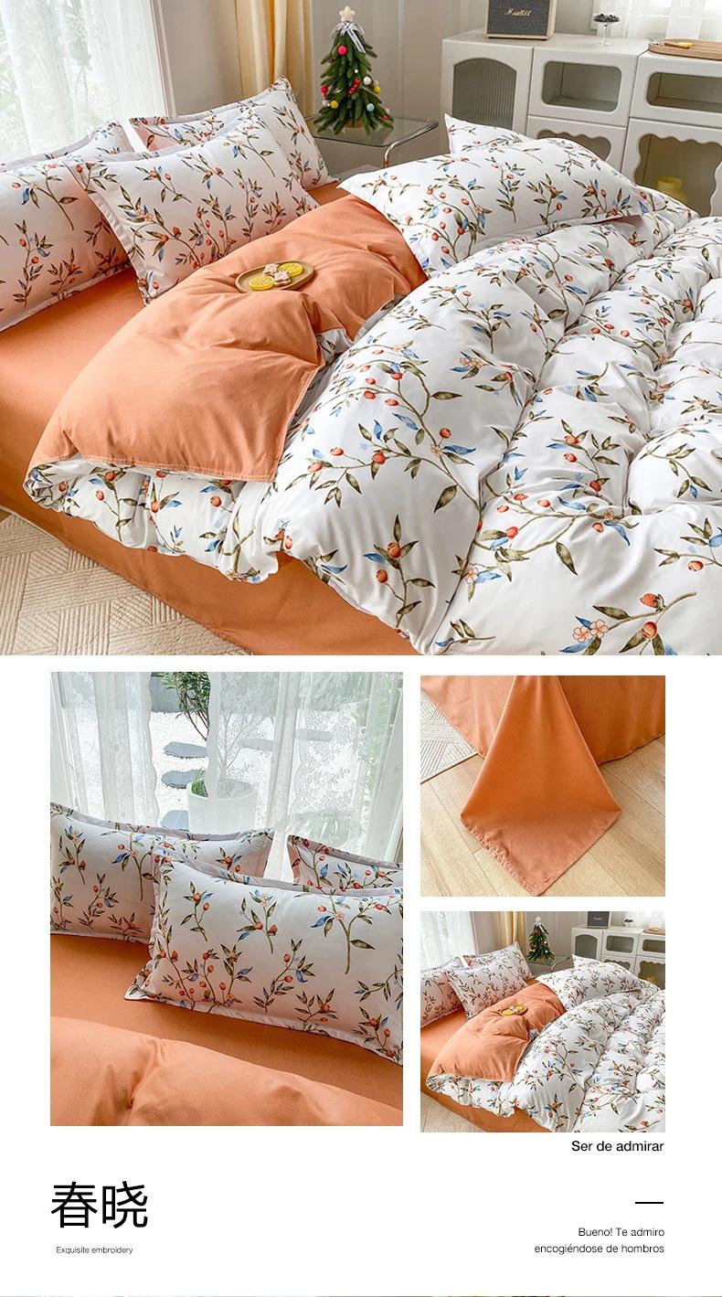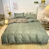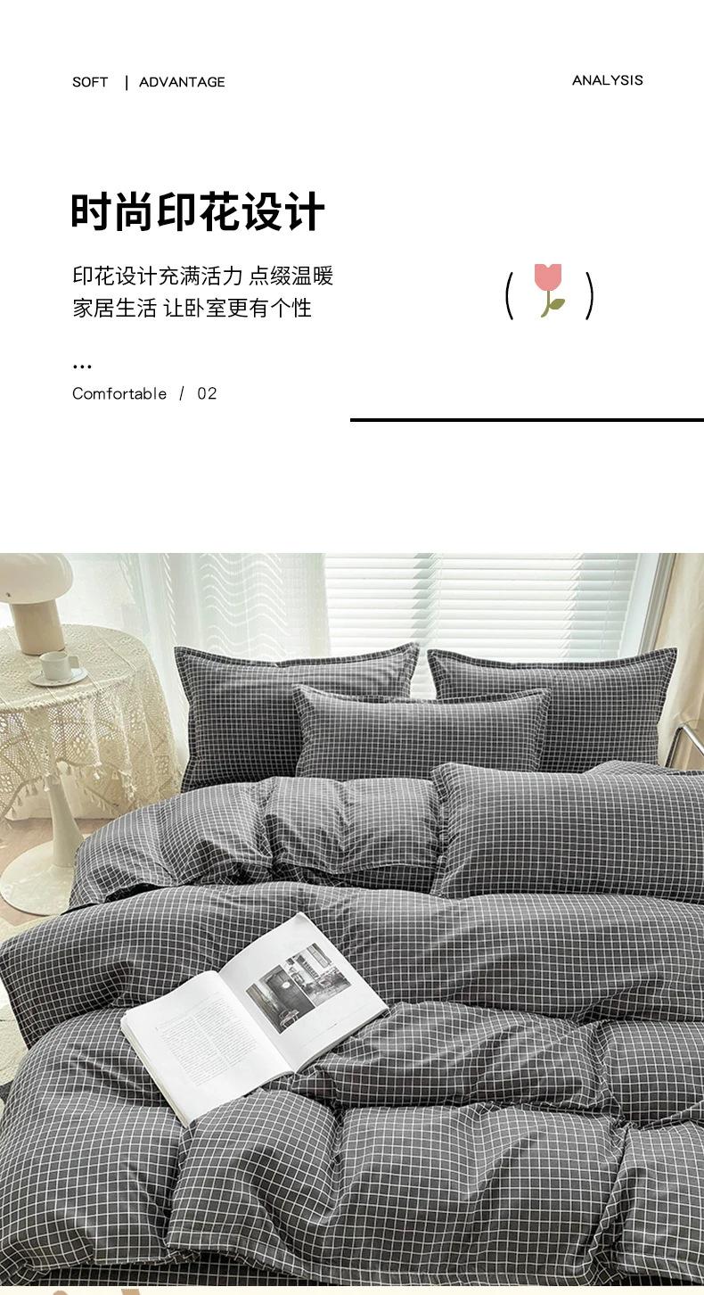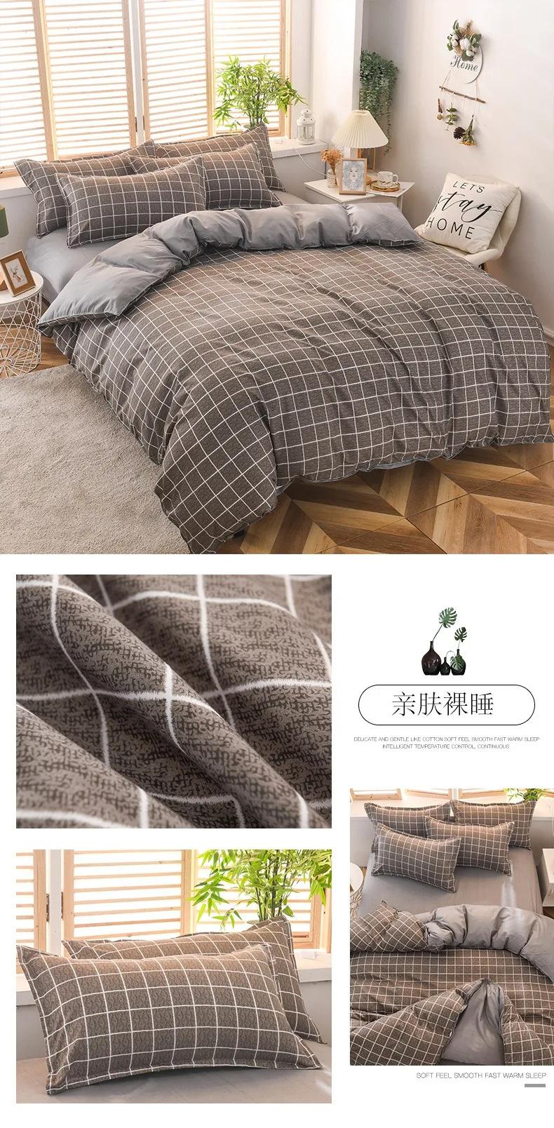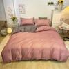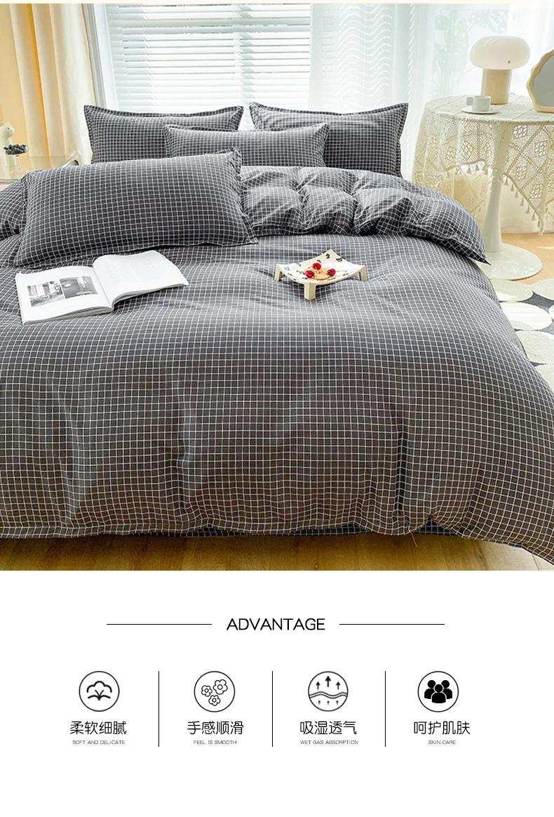 Juego de sábanas de cuatro piezas, funda nórdica, color liso simple, dormitorio de estudiantes, algodón lavado 3, sábana de tres piezas, ropa de cama 4
