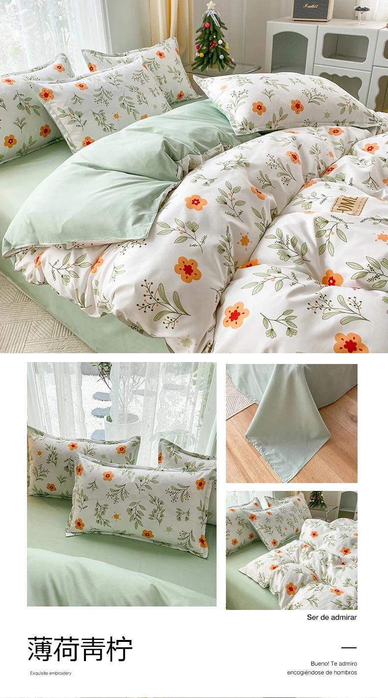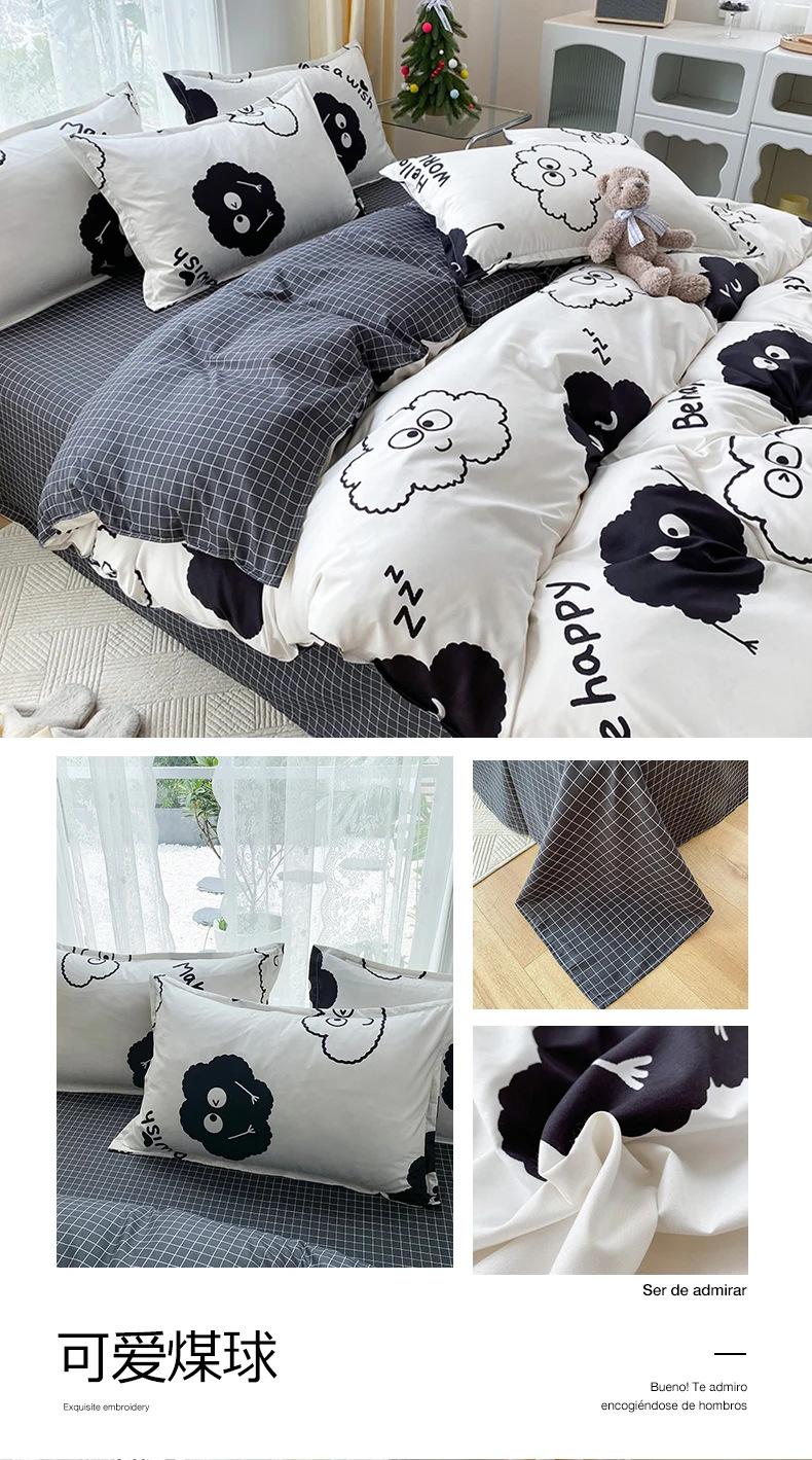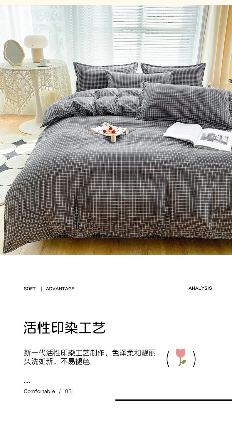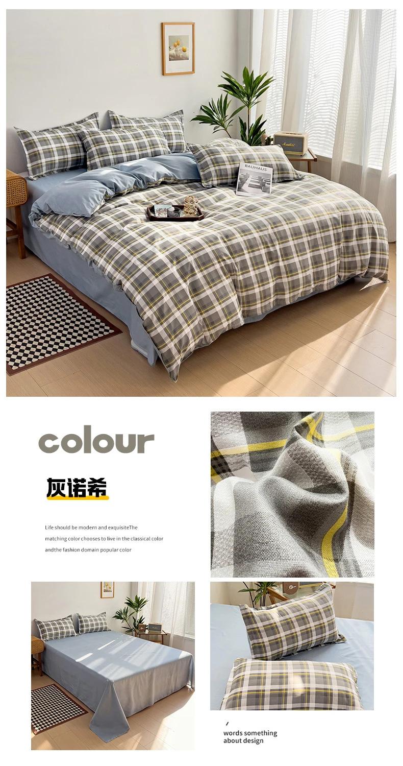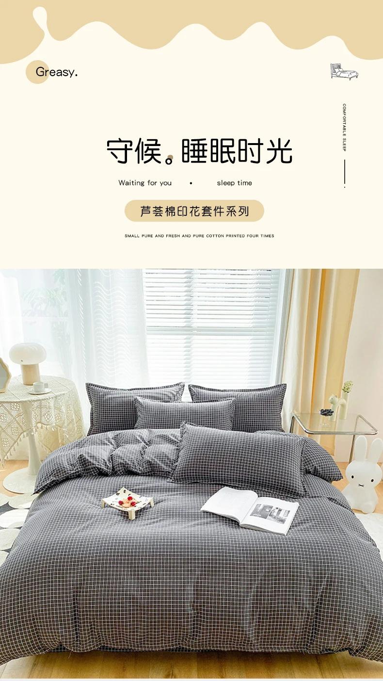 Sábana de algodón lavable de cuatro piezas, funda de edredón, ropa de cama de tres piezas para dormitorio de estudiantes, novedad de 2024