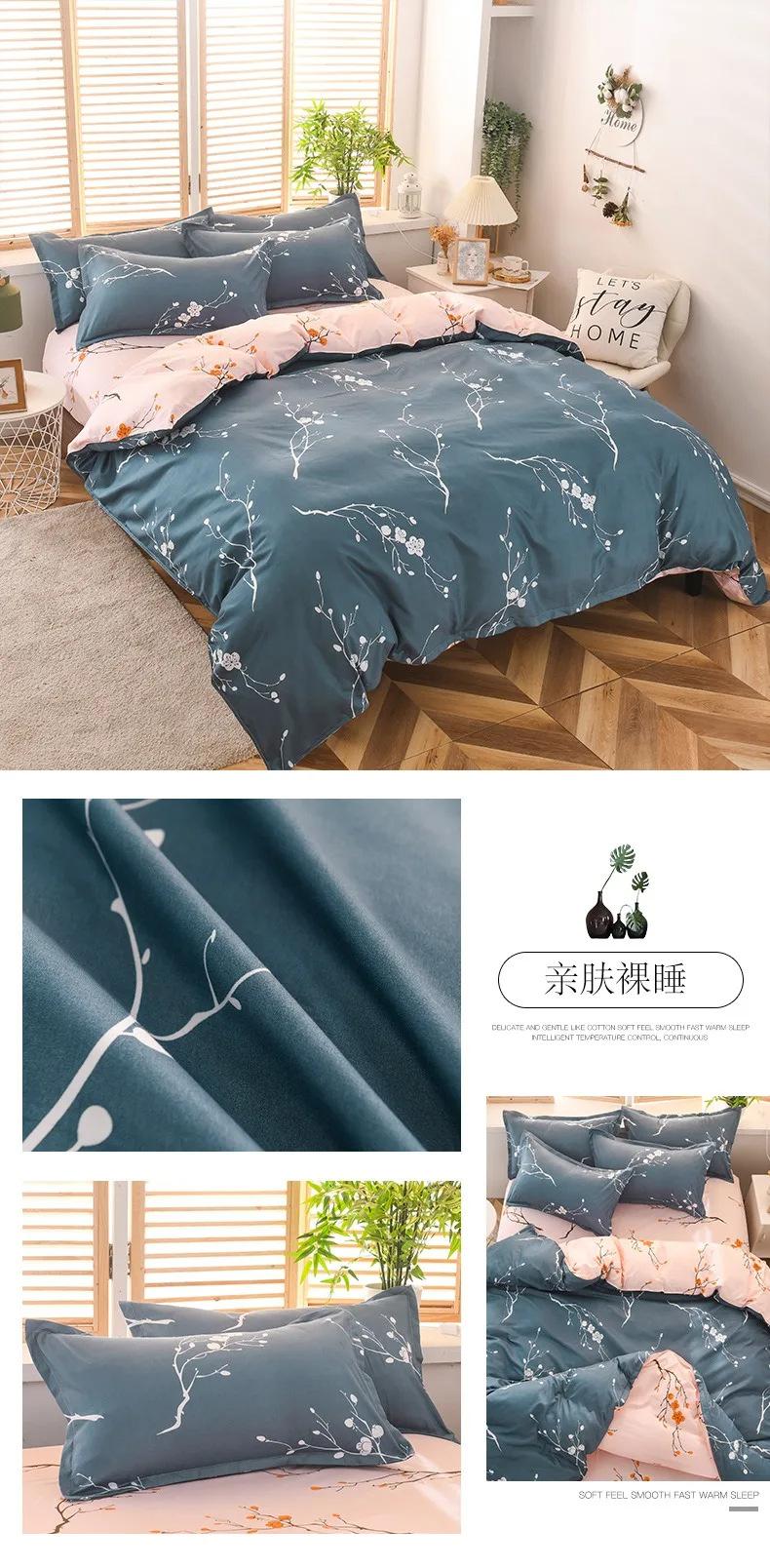 Edredón de cuatro piezas, sencillo, de color liso, estilo antártico, para dormitorio de estudiantes, ropa de cama de tres piezas