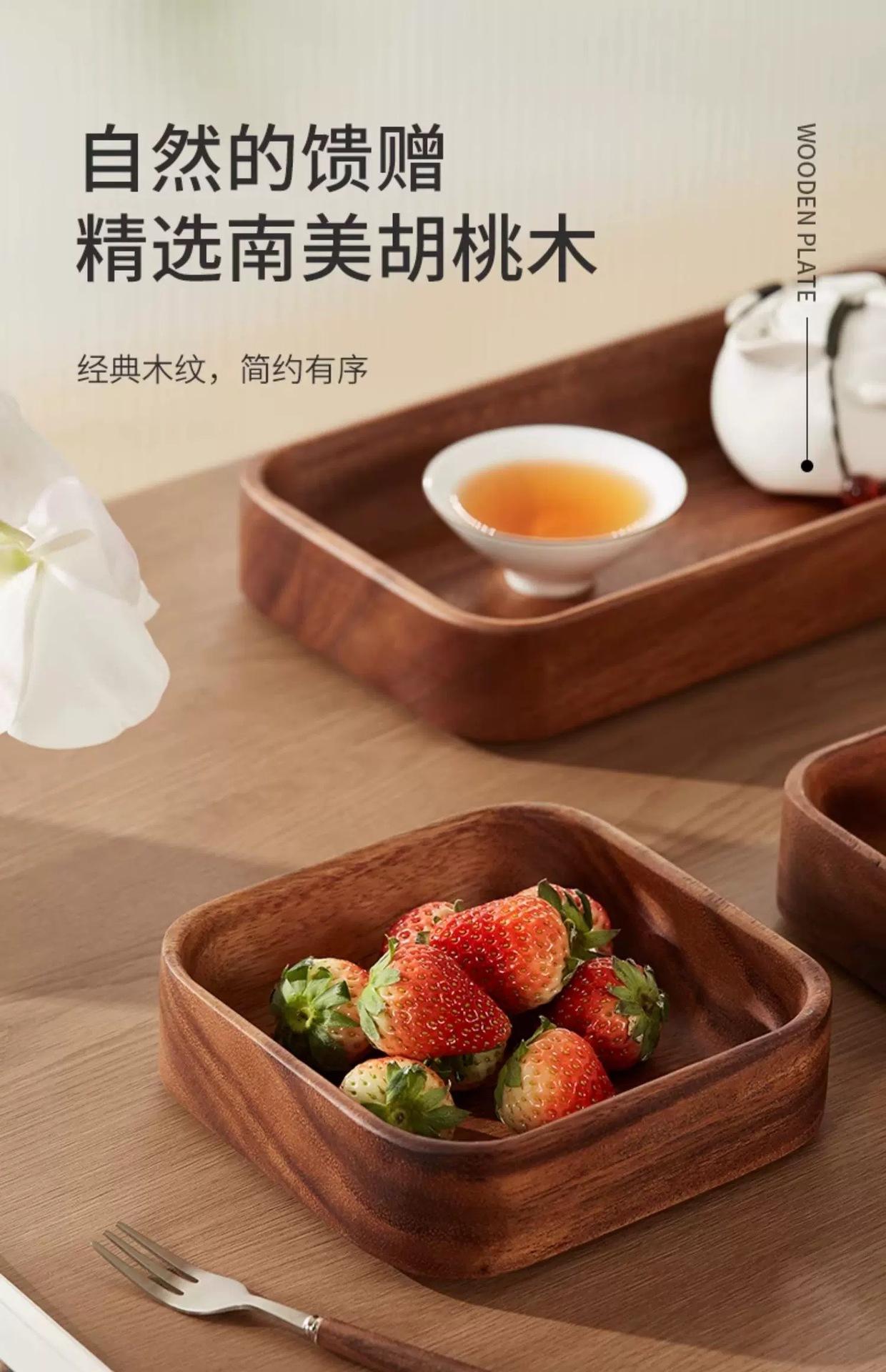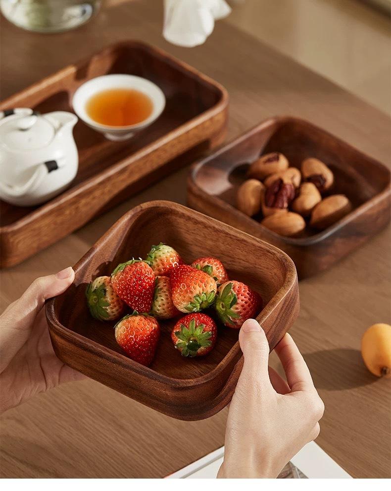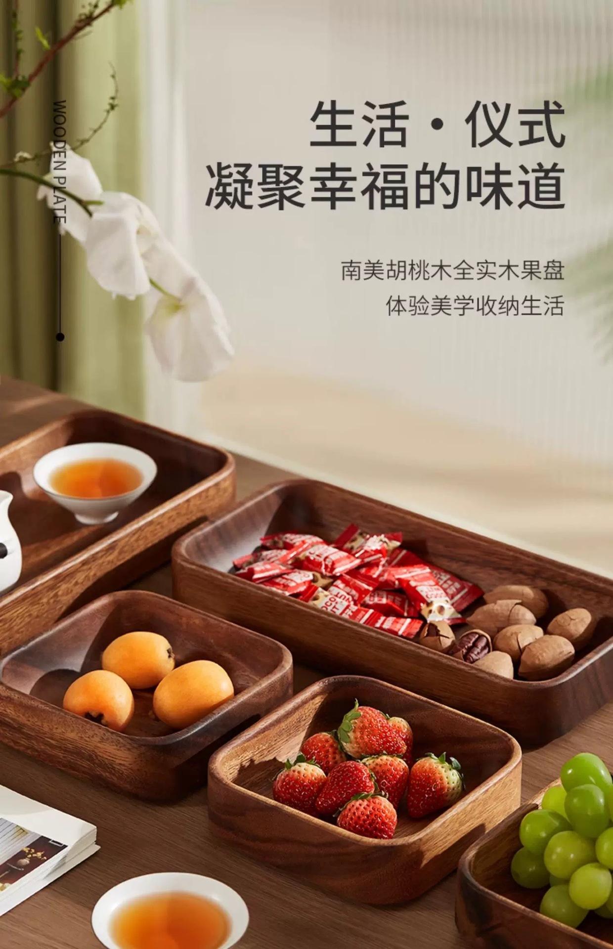 Bandeja de Postre de Madera de Nogal Plato Cuadrado para Pastelería y Nueces Bandeja para Frutos Secos Caja de Almacenamiento Bandeja para Frutas de Madera Maciza Bandeja de Postre de Madera