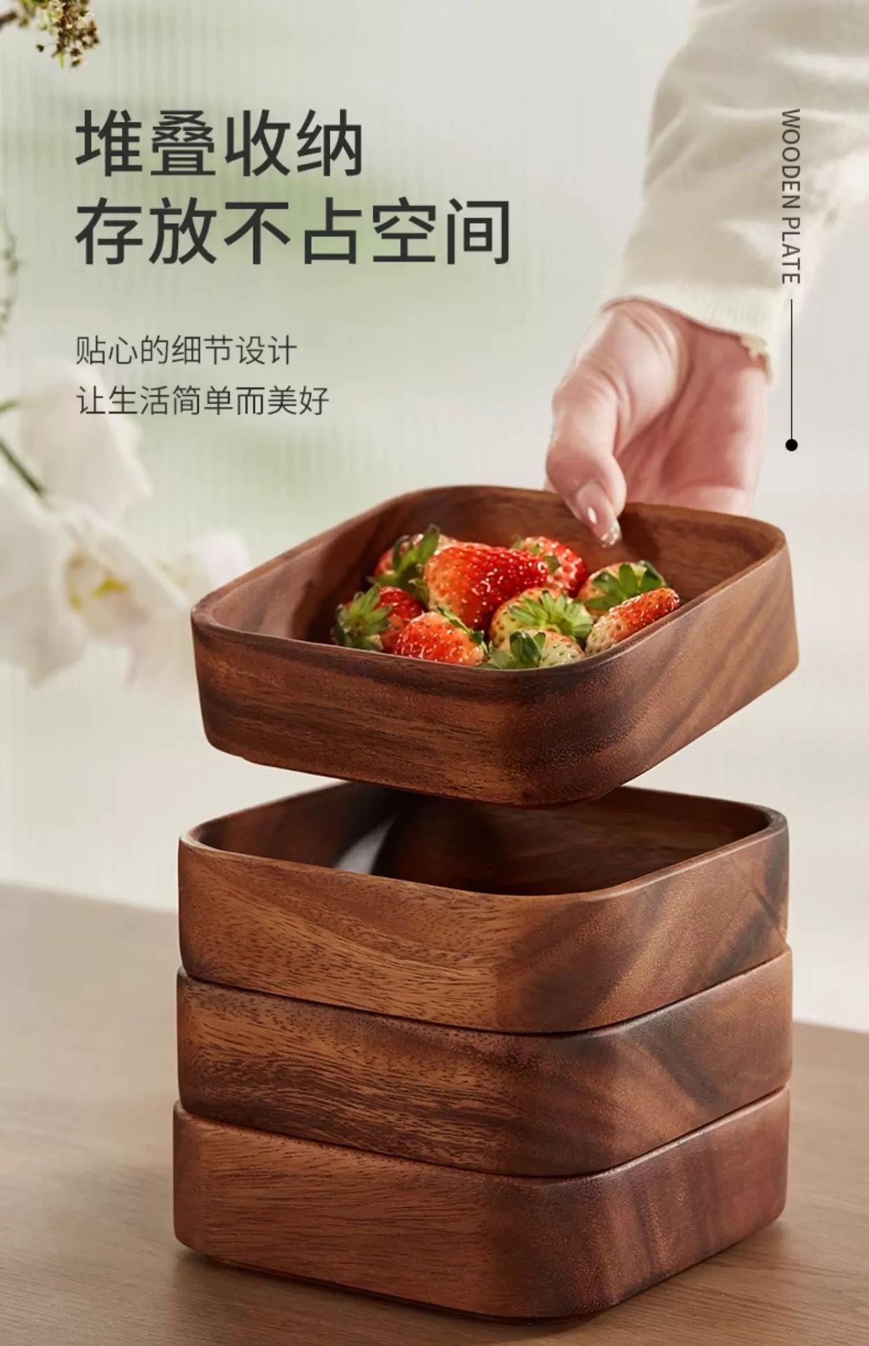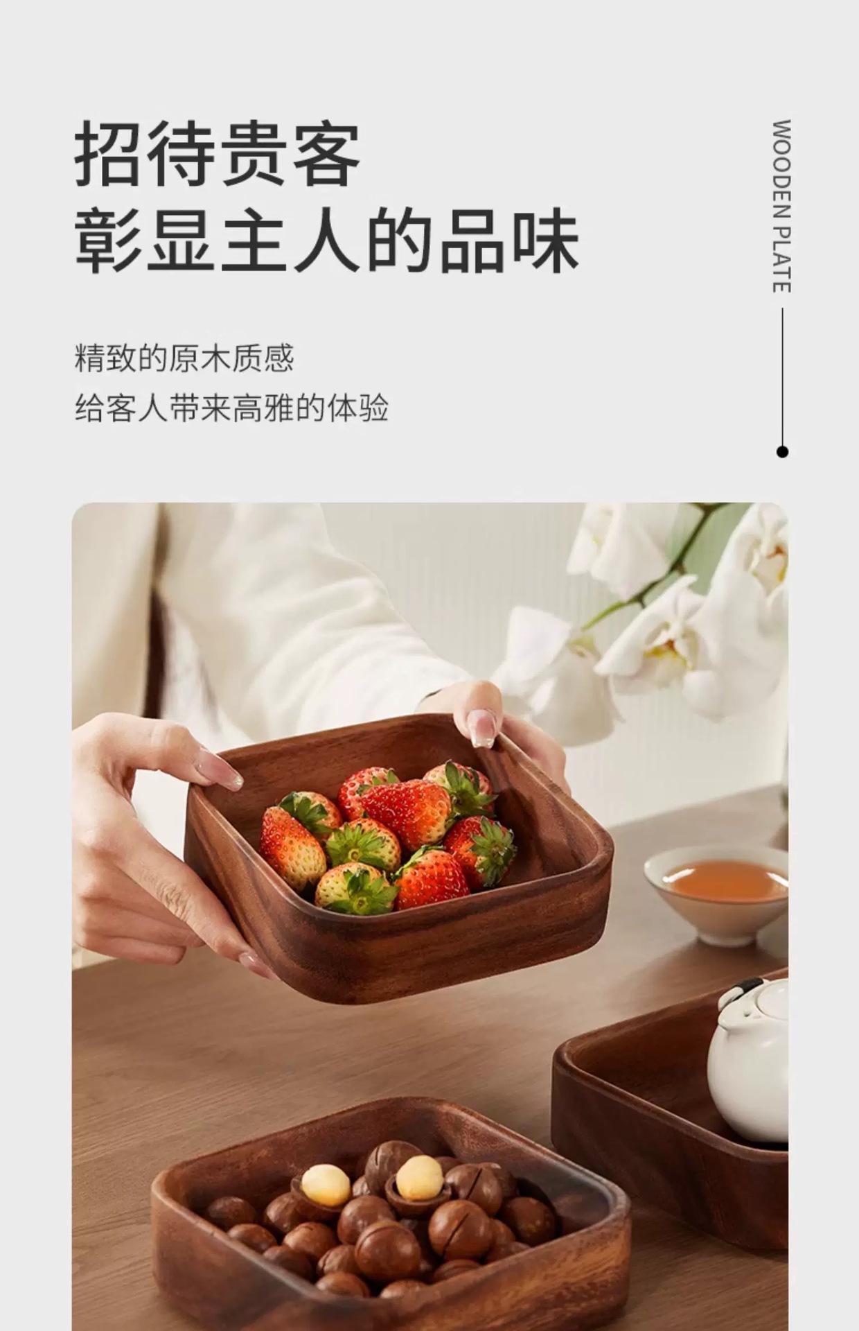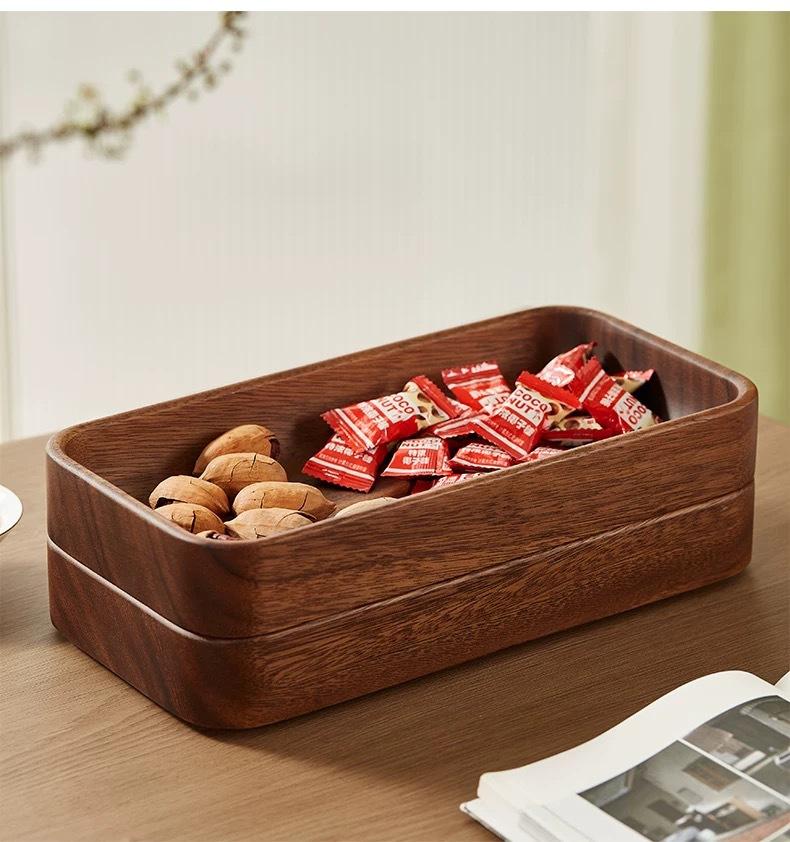 Bandeja de Postre de Madera de Nogal Plato Cuadrado para Pastelería y Nueces Bandeja para Frutos Secos Caja de Almacenamiento Bandeja para Frutas de Madera Maciza Bandeja de Postre de Madera