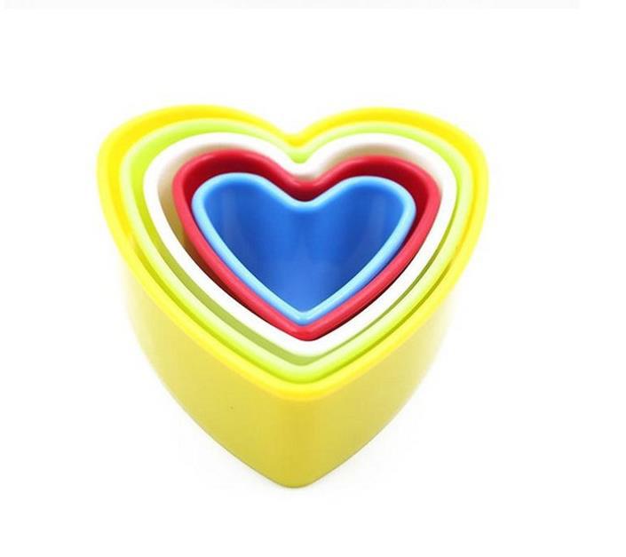 Juego de 5 piezas en forma de corazón: 4,5, 5,5, 6,5, 7,5, 8,5, altura 3,2 cm