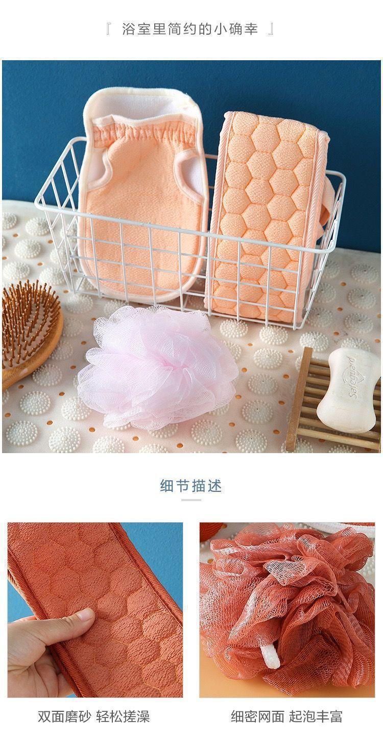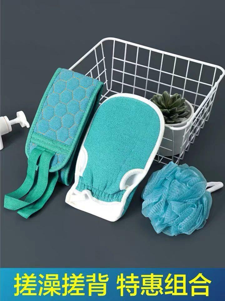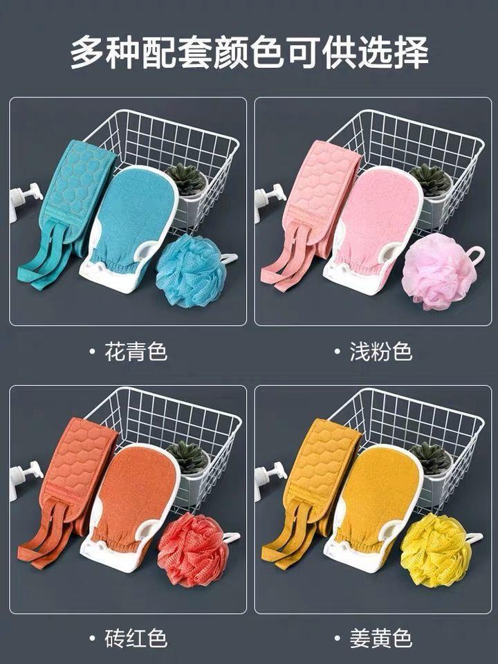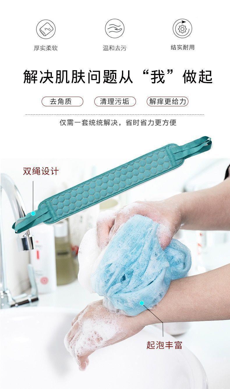 Juego de tres piezas de artefacto de baño con toalla para frotar, conjunto de bola de baño de descontaminación con barro para frotar espeso, conjunto de tira trasera, toalla para frotar larga
