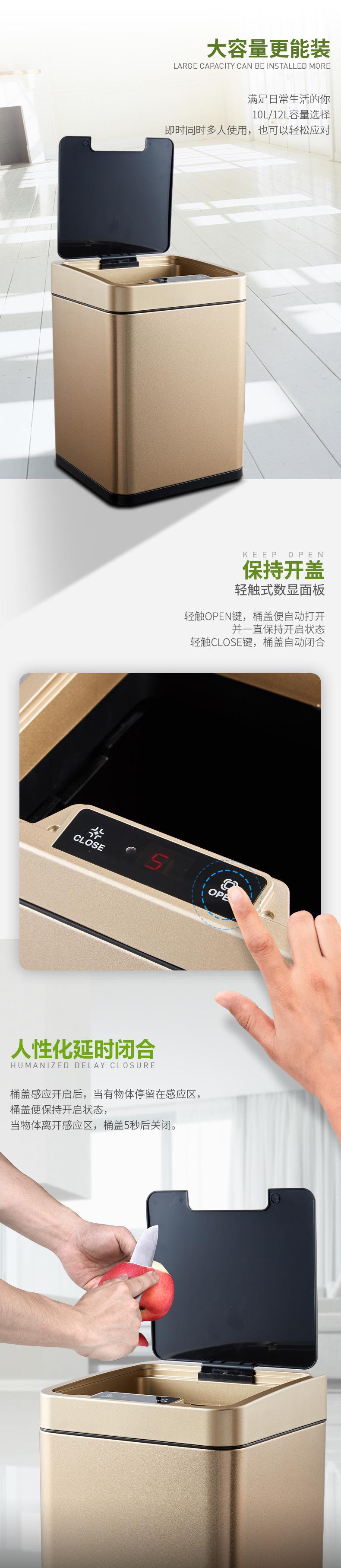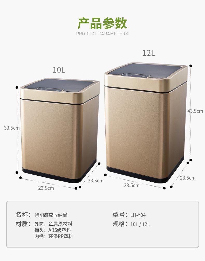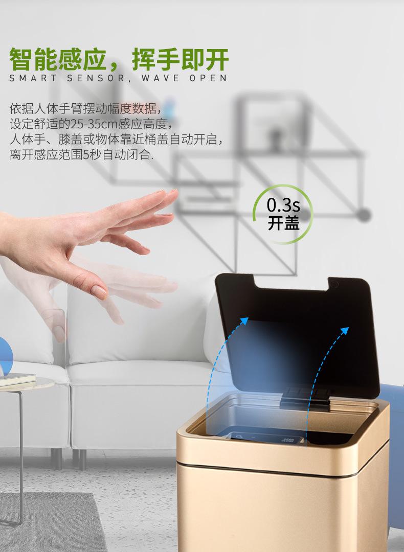 Bote de Basura Automático con Sensor Inteligente, Bote de Basura Cuadrado para Sala de Estar, Cubo Inteligente de Almacenamiento de Acero Inoxidable de 10L