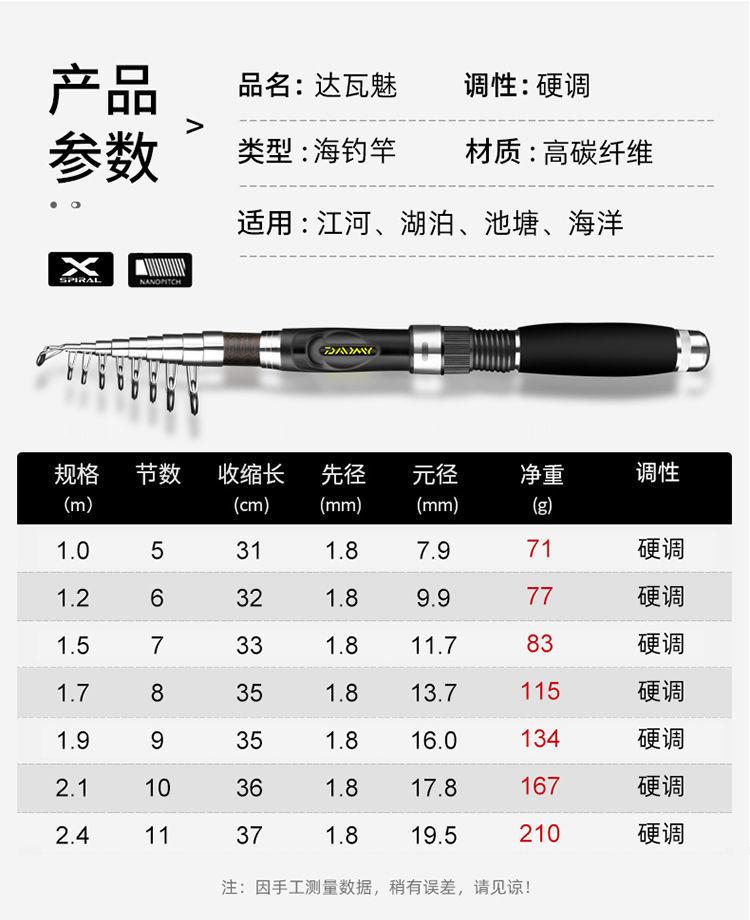 Dawa Encantador Ultracortocircuito Caña de Subpesca Caña de Mar Caña de Lanzamiento de Largo Alcance Caña de Mar Caña de Lanzamiento Caña de Pesca en Hielo Caña Pequeña Retráctil para Señuelos Juego de Fábrica