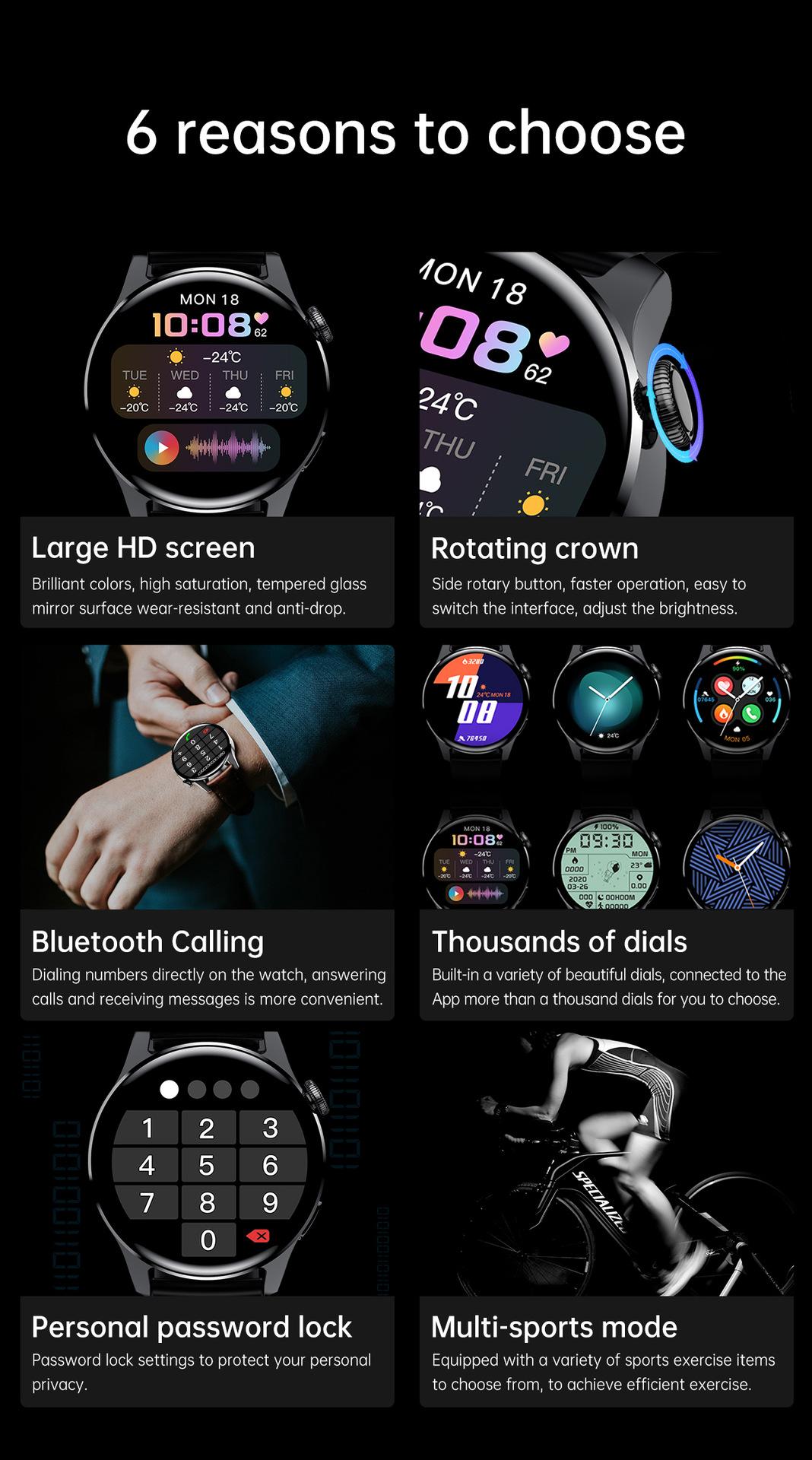 | Soporta teléfono móvil conectado al reloj para responder llamadas y escuchar música |