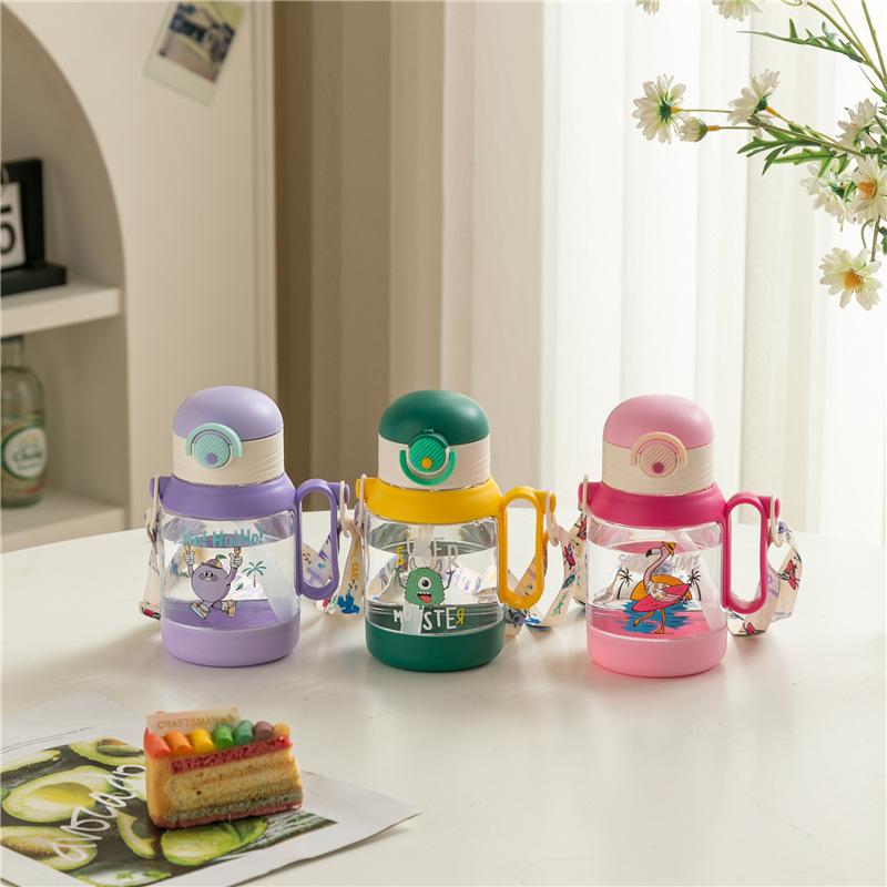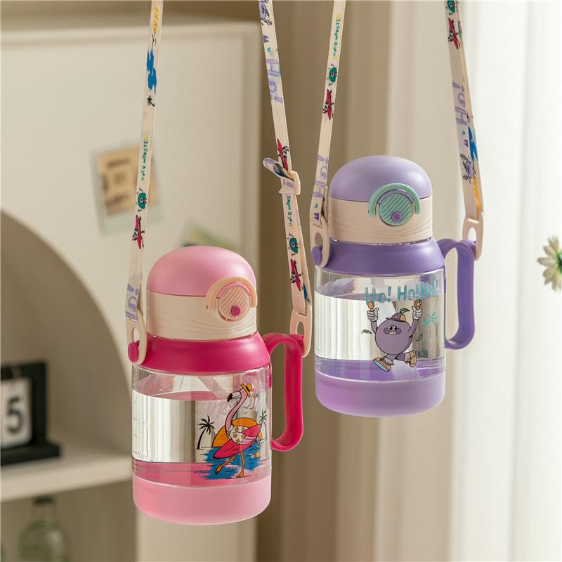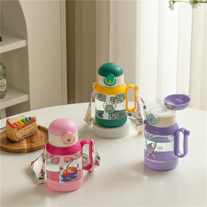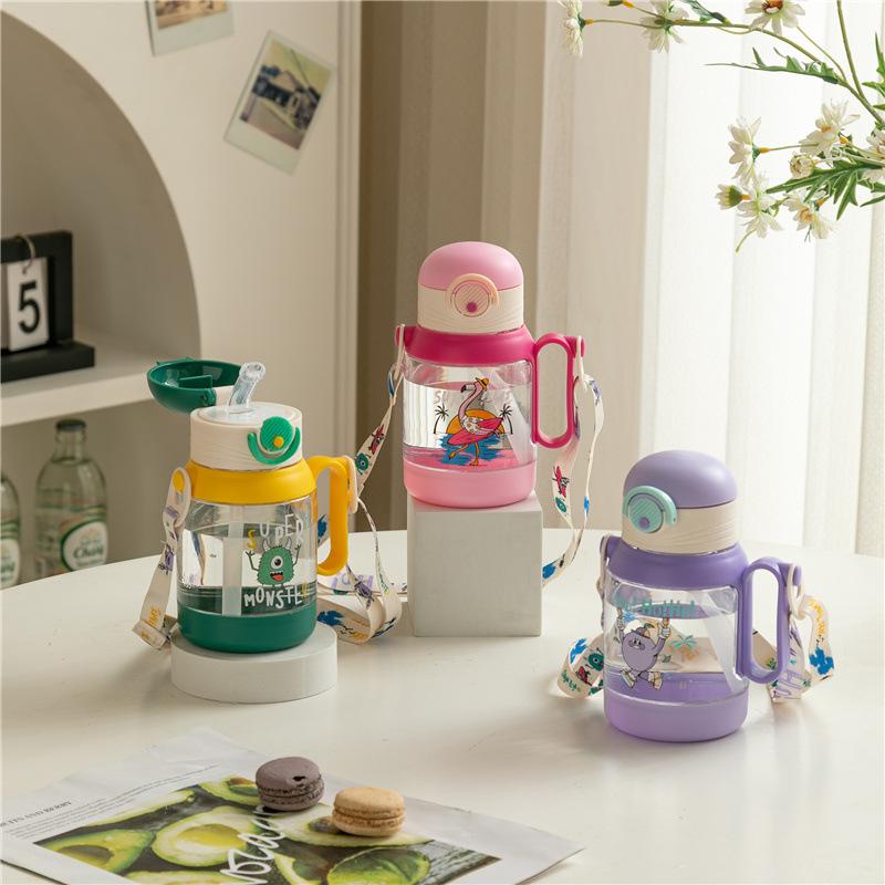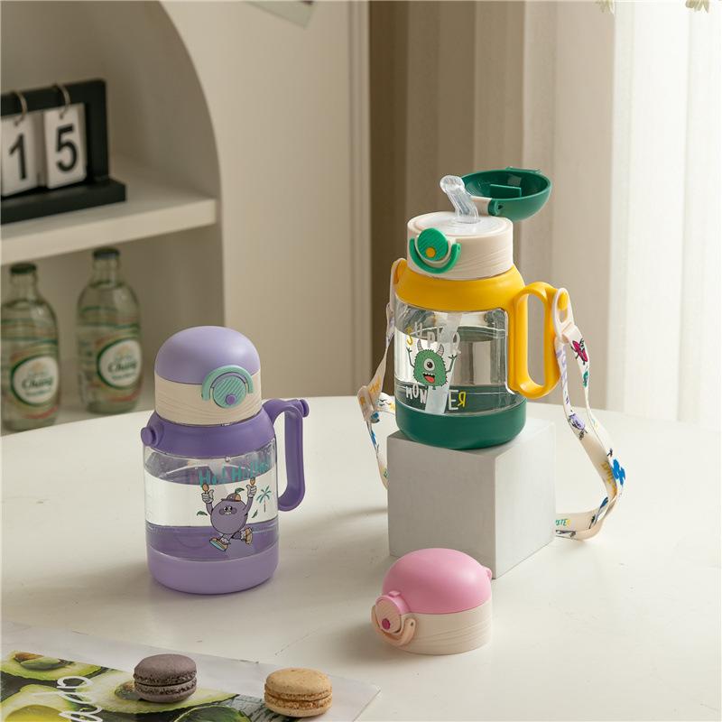 2023 Nuevo Vaso de Agua Infantil Lindo con Popote, Correa para Jardín de Niños, Botella de Agua, Vaso de Plástico con Asa para Estudiantes de Primaria