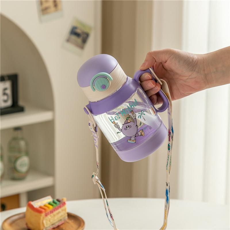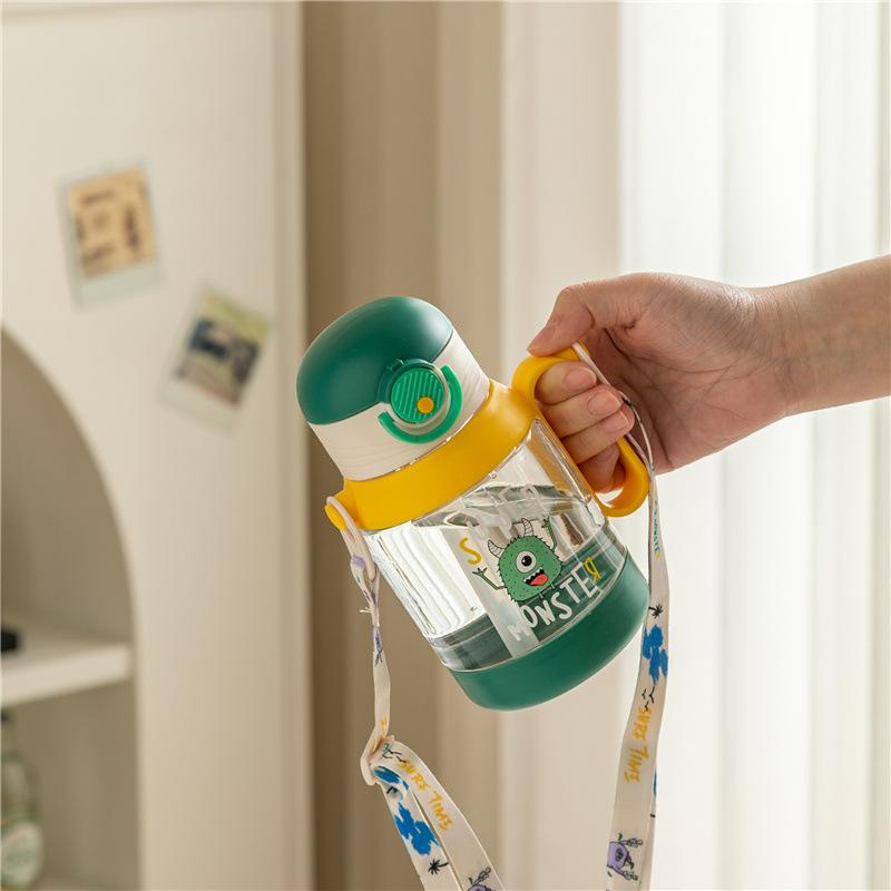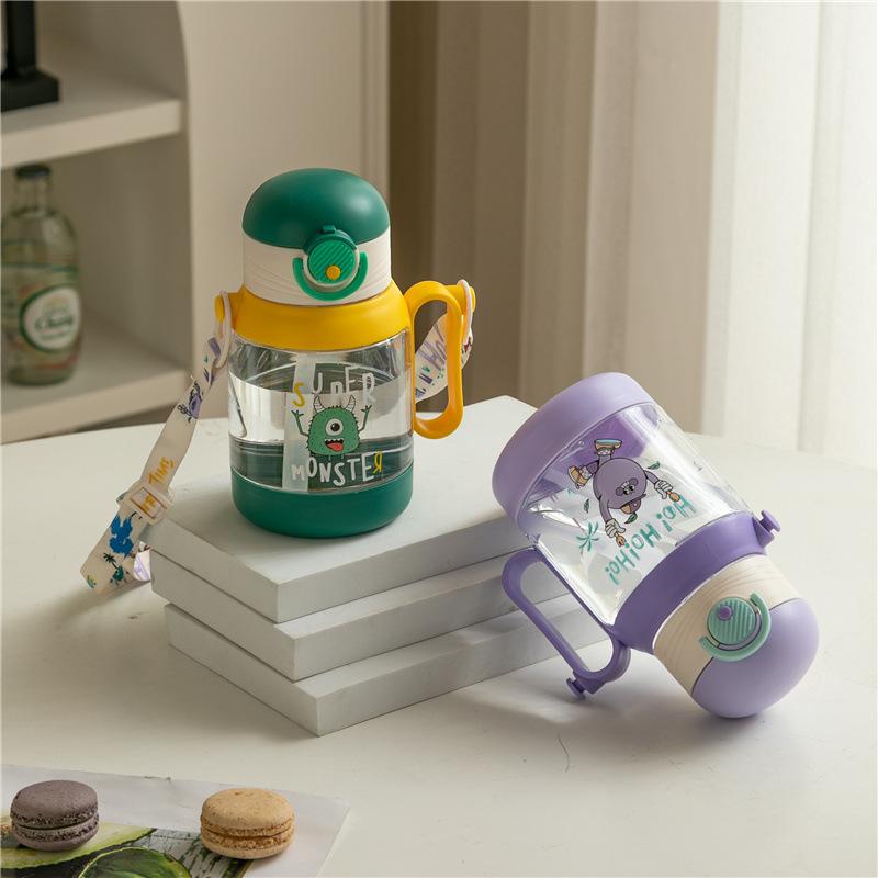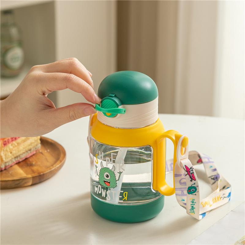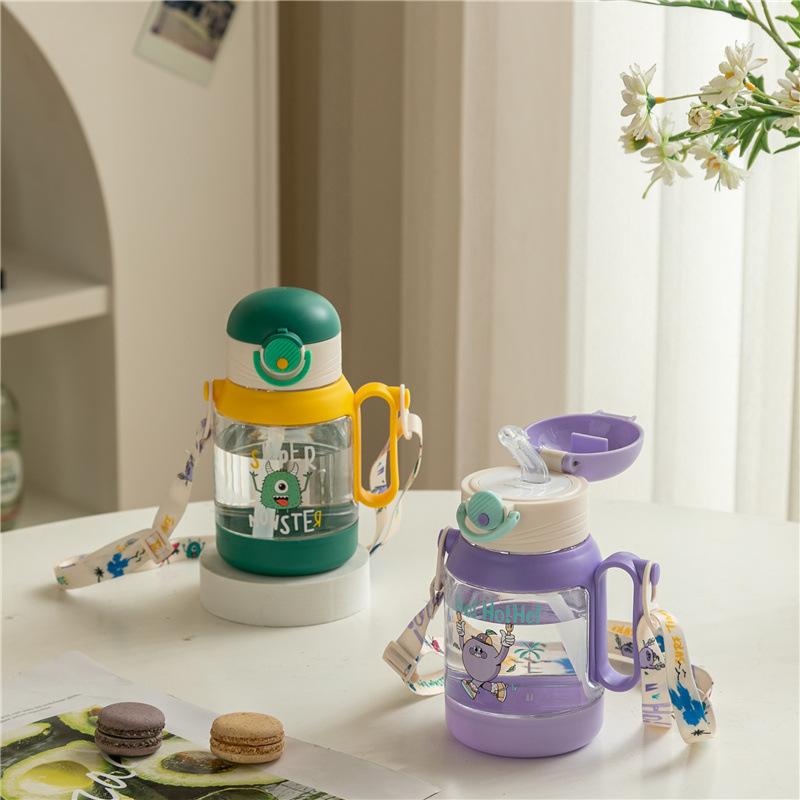 2023 Nuevo Vaso de Agua Infantil Lindo con Popote, Correa para Jardín de Niños, Botella de Agua, Vaso de Plástico con Asa para Estudiantes de Primaria