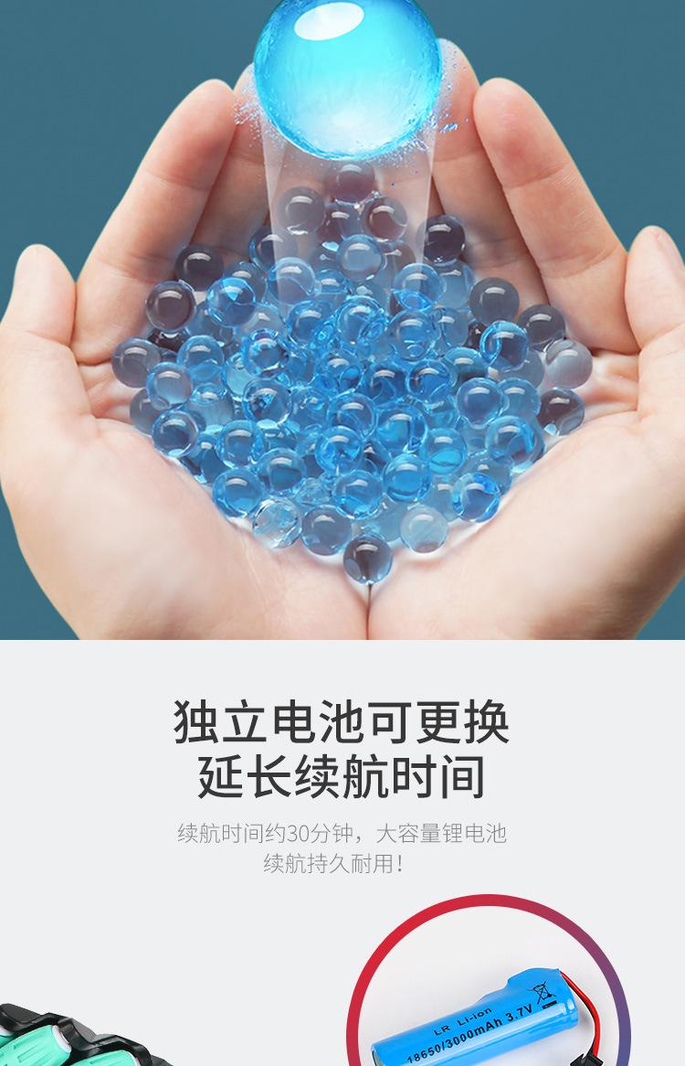 Configuración estándar: 1 batería para el cuerpo + 500 paquetes de bombas de agua * 2 paquetes. Si necesita más configuración, por favor contacte al servicio al cliente~
