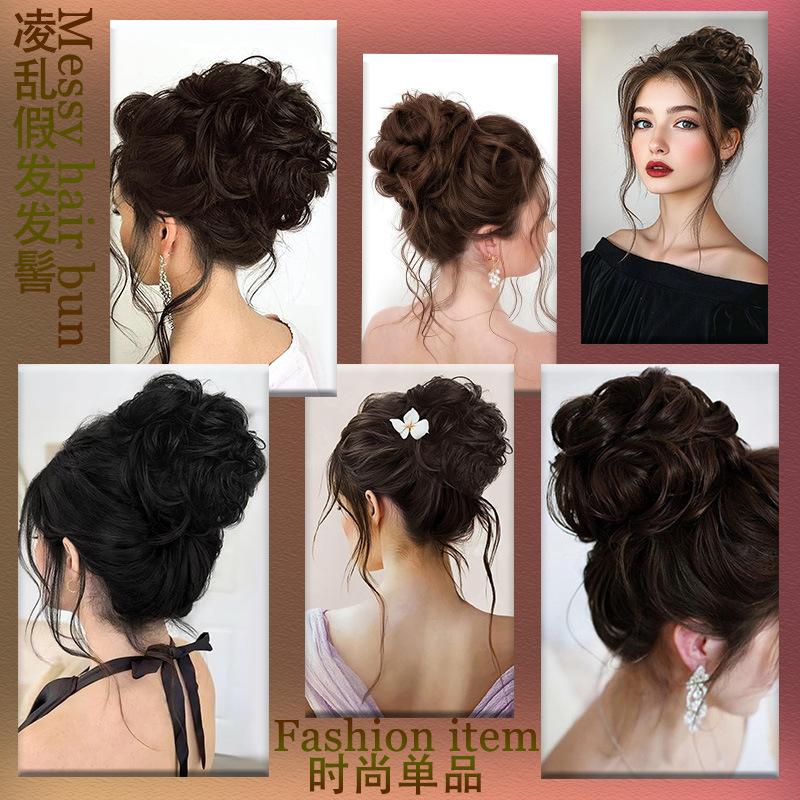 Clip Transfronterizo Flor Capullo Peluca Moño Despeinado Esponjoso Nupcial Cabello Rizado Bobina Cabello Fibra Química Sintética Peluca Bolsa de Cabello