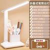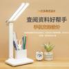 Lámpara de escritorio plegable de doble cabeza con soporte para bolígrafos táctil, protección ocular, atenuación, carga, giratoria, para aprendizaje en dormitorio, enchufable, lectura, estudiante