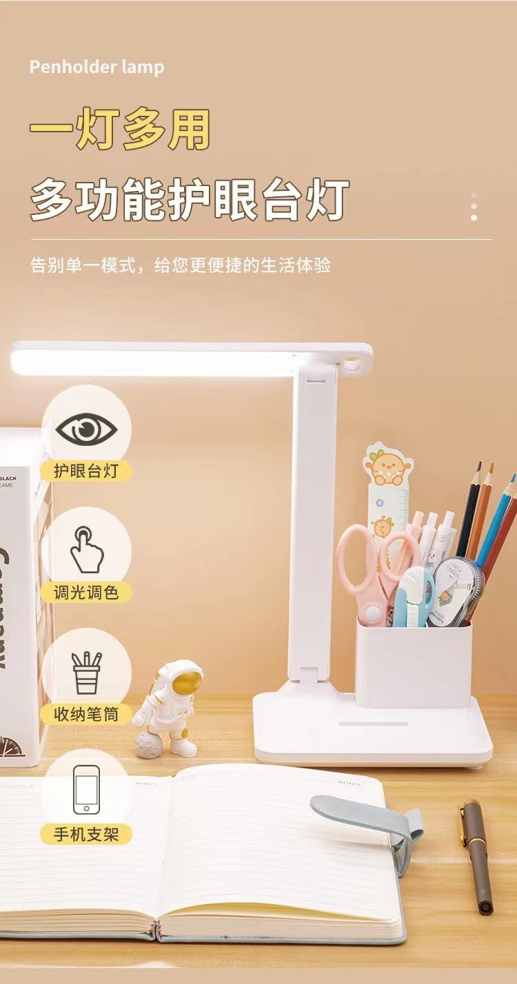 White double-ended pen holder table lamp (plug-in type + data cable)