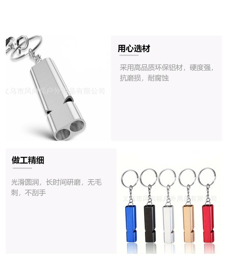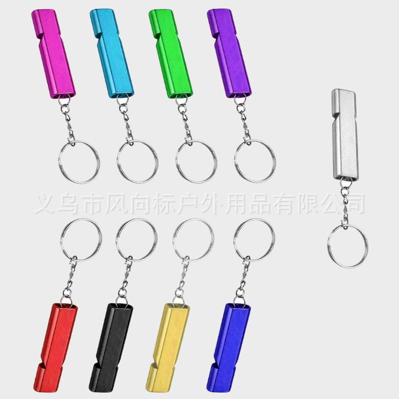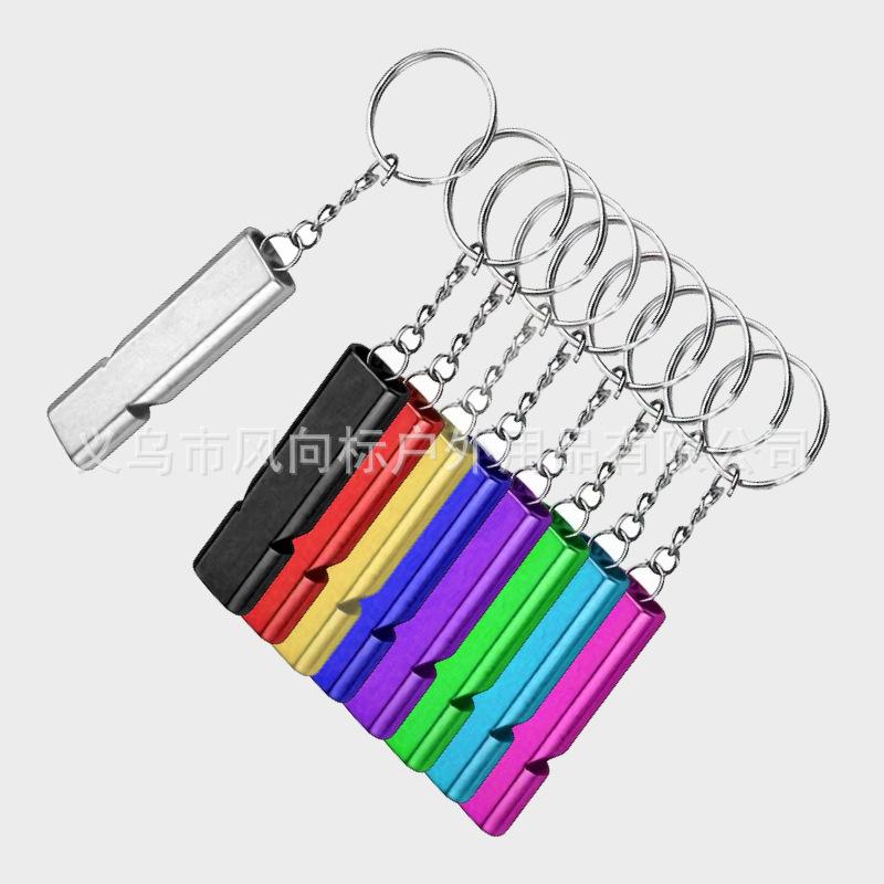 Silbato plano de doble orificio de aleación de aluminio para exteriores, para montañismo, supervivencia, entrenamiento de fuego, sonido de alta potencia, doble tubo.