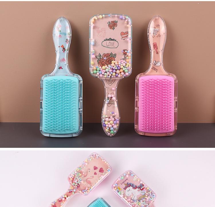 Peine Cuadrado Transparente Peine de Dibujos Animados para Niños Peine Alisador Peine de Peluquería Casera Peine para Masaje del Cuero Cabelludo Peine de Plástico con Bolas de Burbujas