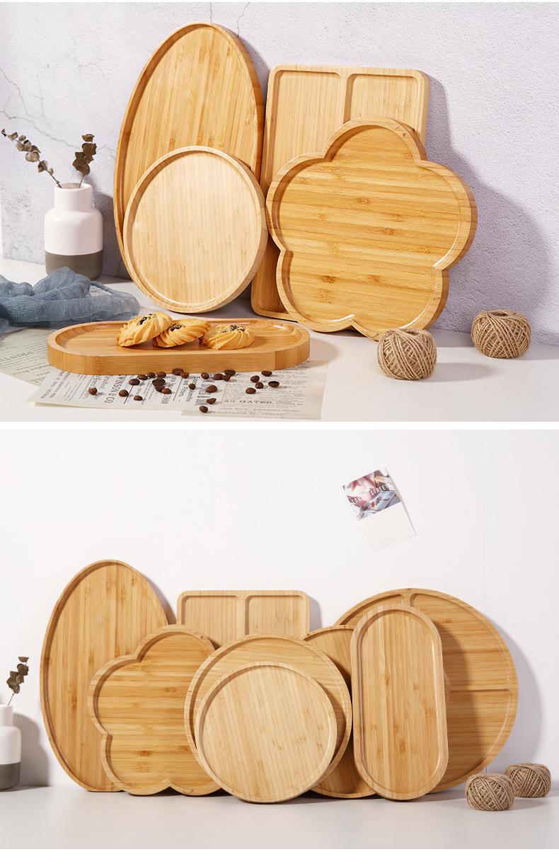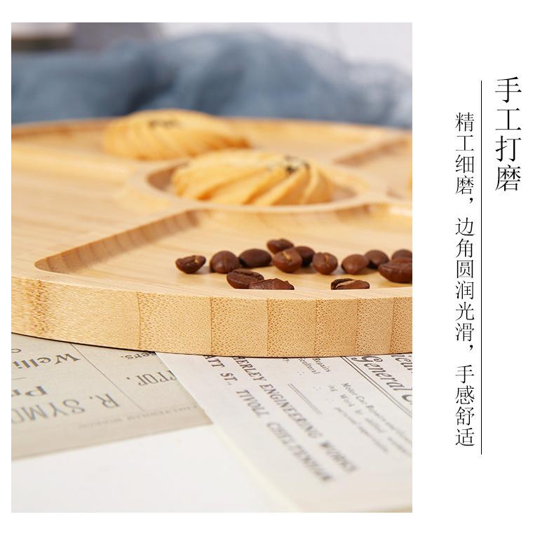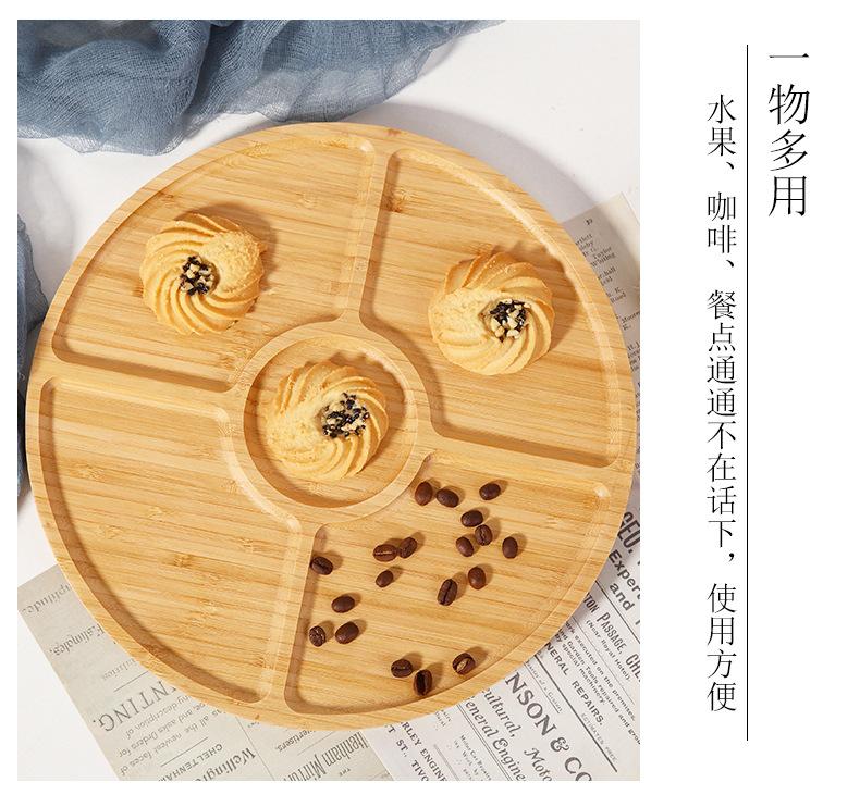 Bandeja Redonda de Bambú para Té Vajilla para Postre Plato Compartimentado Multifuncional Bandeja para Alimentos Complementarios Vajilla de Estilo Simple