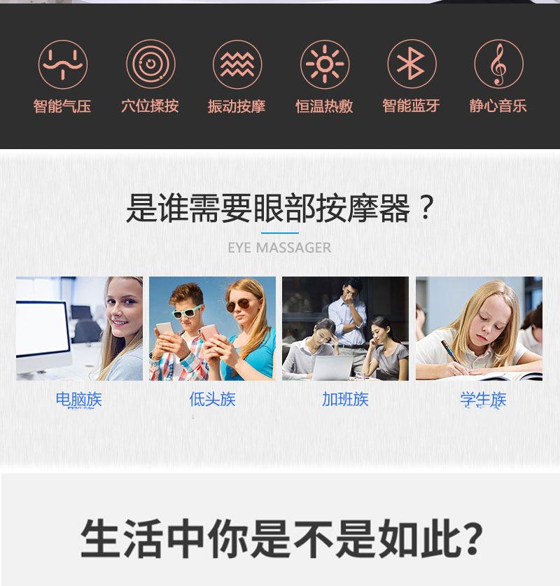 Masajeador de ojos personalizado con procesamiento de fábrica, protector ocular con presión de aire, masajeador de ojos inteligente con compresa caliente, protector ocular con Bluetooth