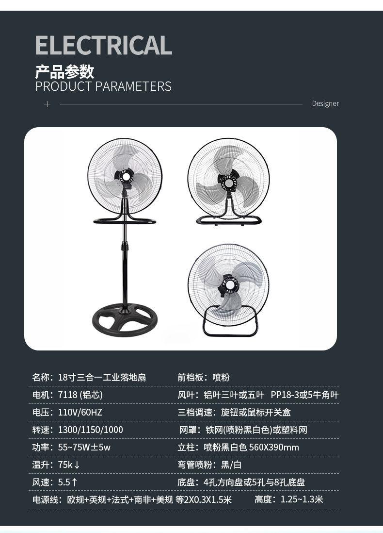 18-inch aluminum leaf floor fan, 18-inch plastic leaf floor fan, 18-inch three-in-one floor fan