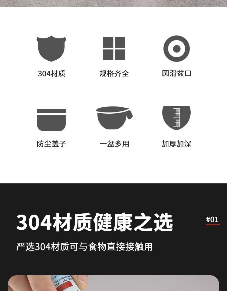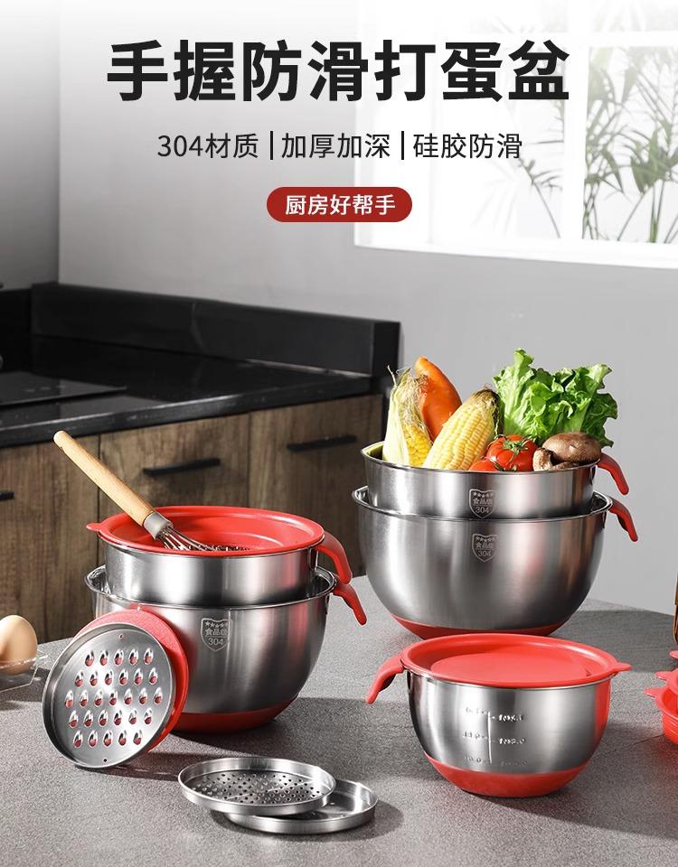 16CM egg beating basin + 4-piece set SUS304, 18CM egg beating basin + 4-piece set SUS304, 20M egg beating basi...