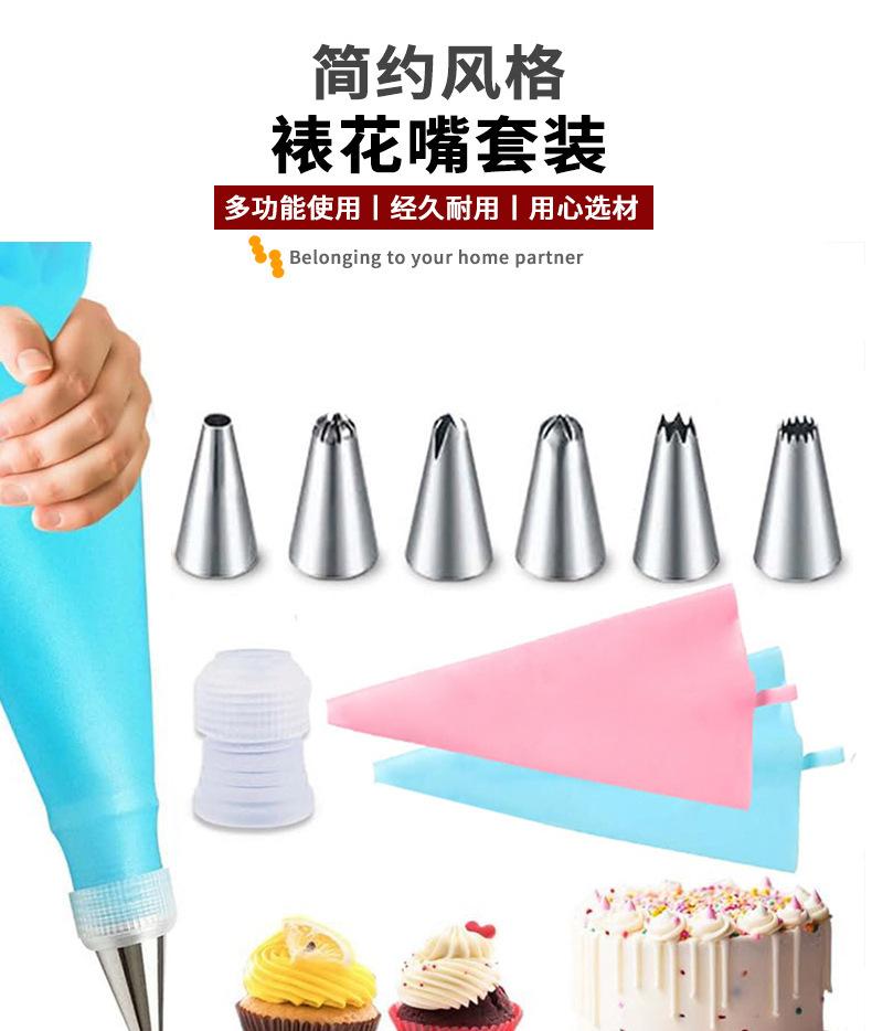 Boquilla de acero inoxidable para tubería transfronteriza juego de 8 piezas pastel tarta de huevo taza Mafen herramientas para hornear juego de bolsa para manga pastelera de crema