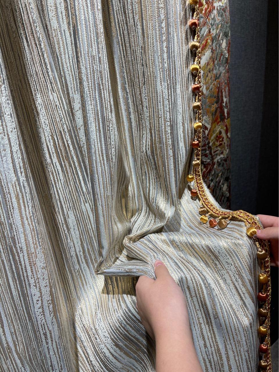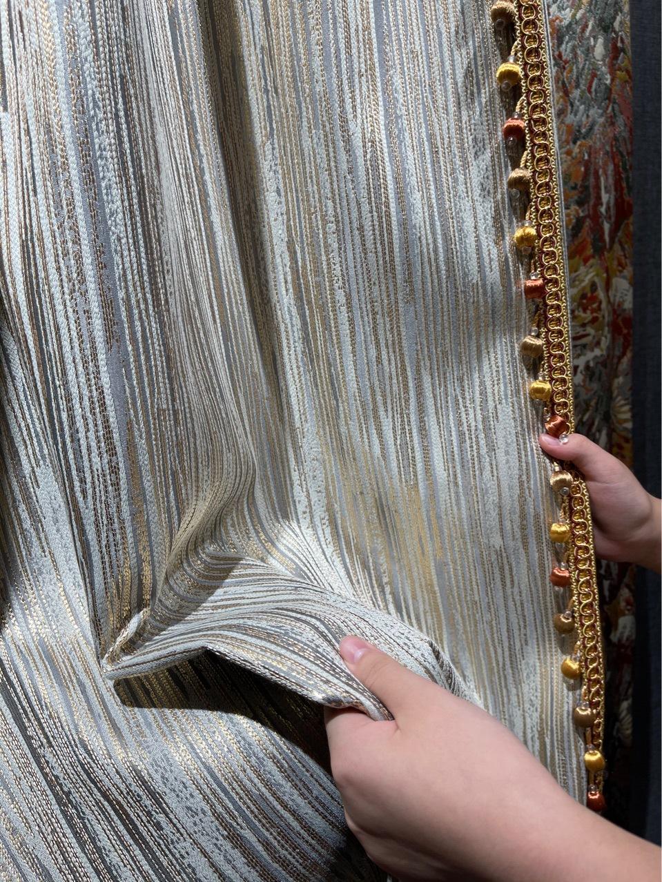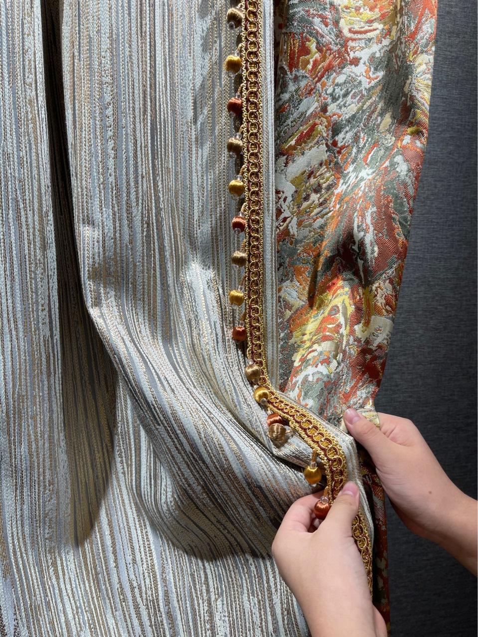 Cortina de jacquard con hilo dorado, costura americana de lujo, sombreado, sala de estar, dormitorio de lujo, cortina con acabado de costura moderna