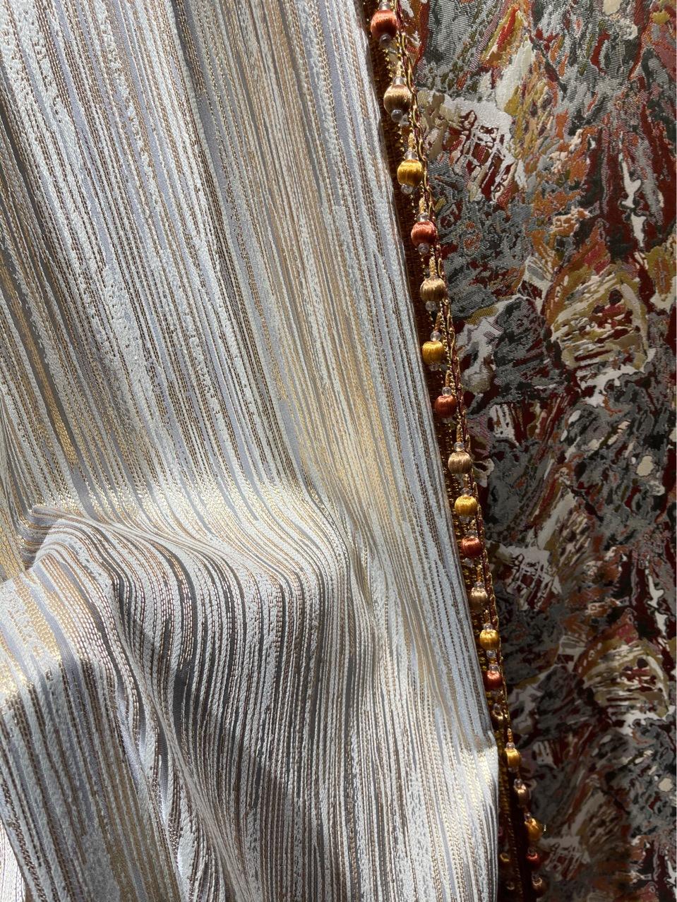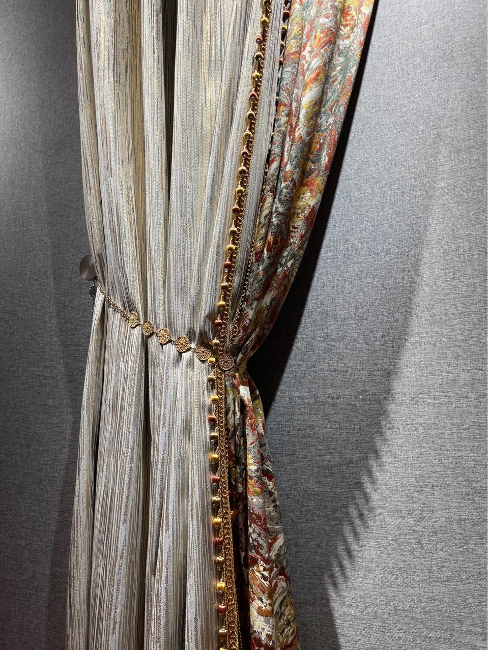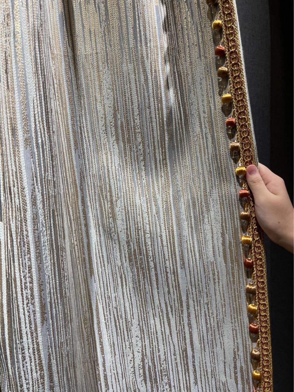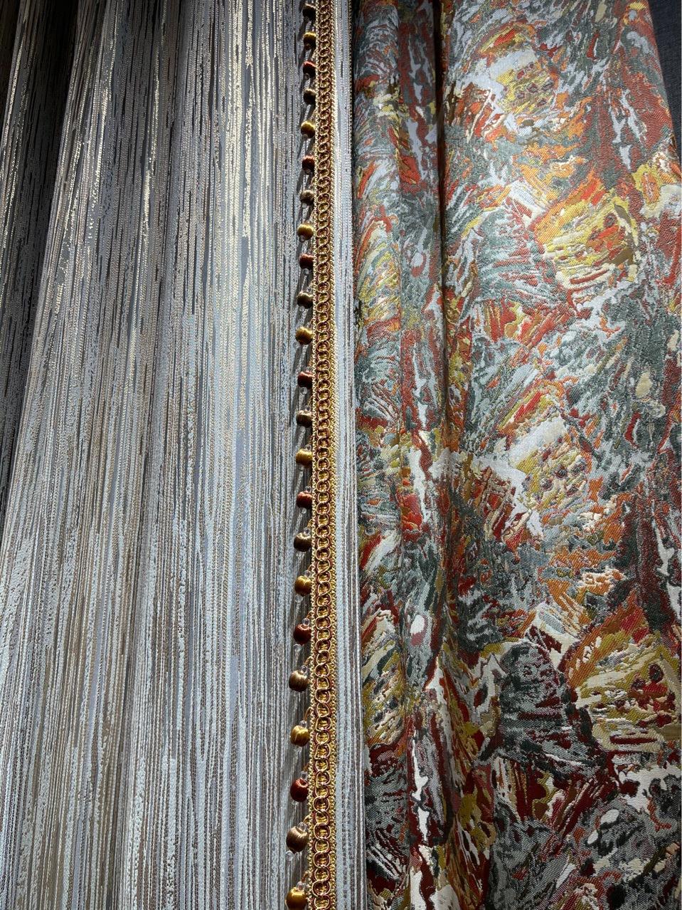 Cortina de jacquard con hilo dorado, costura americana de lujo, sombreado, sala de estar, dormitorio de lujo, cortina con acabado de costura moderna