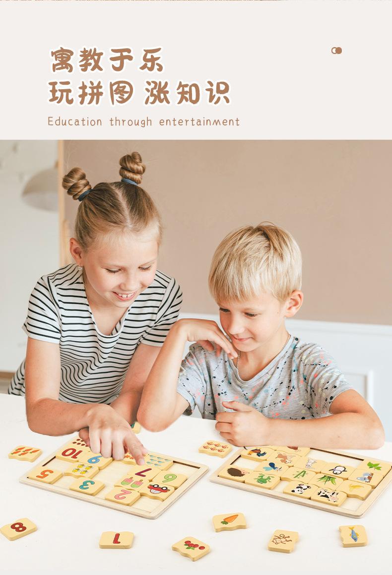 Juguetes de madera para inteligencia infantil, cognición digital, rompecabezas de animales, educación temprana, entrenamiento de pensamiento, bloques de construcción