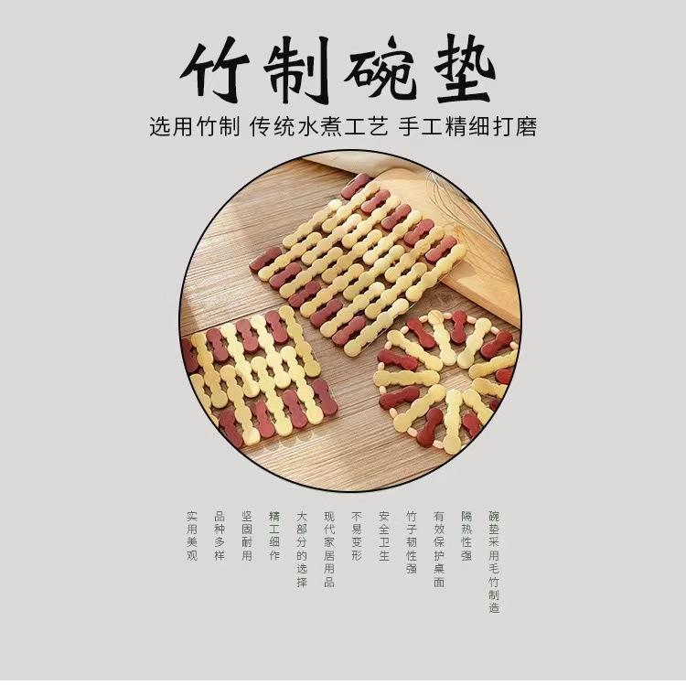 Posavasos Hueco de Bambú Individual de Mesa Bambú Anti-escaldaduras Aislamiento Térmico Tapete para Tazón Tapete para Mesa de Comedor Grande Doméstico Resistente al Calor Tapete Cuadrado para Tazón de Sopa