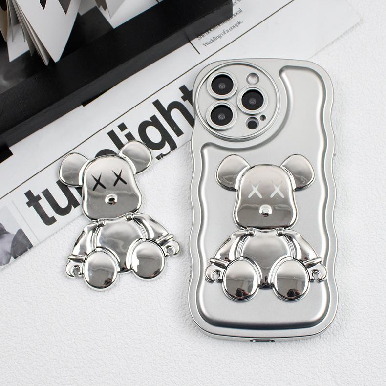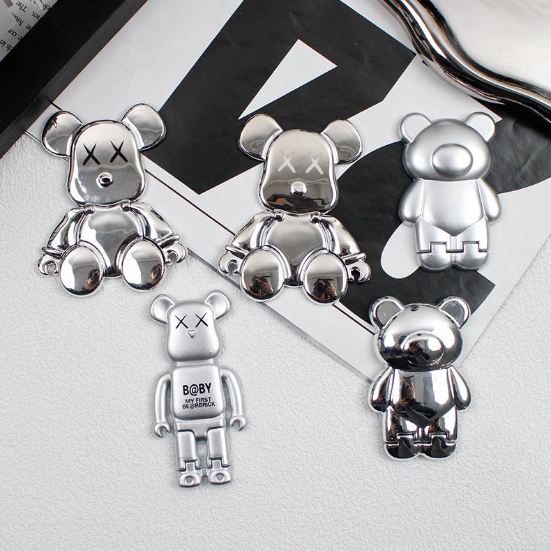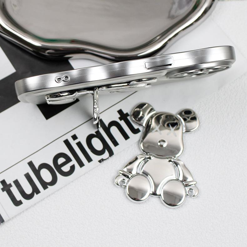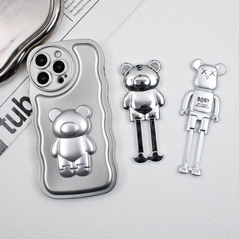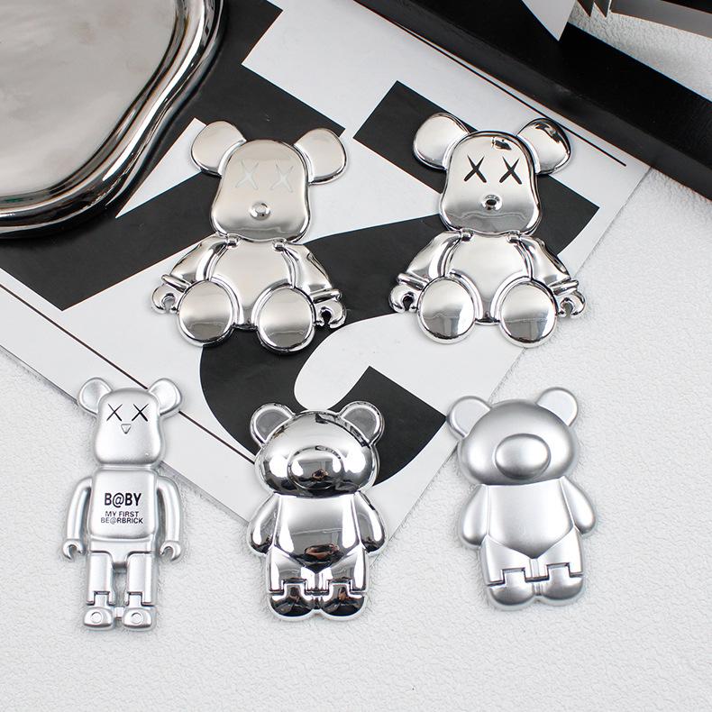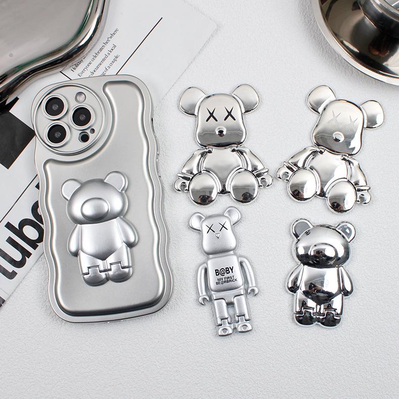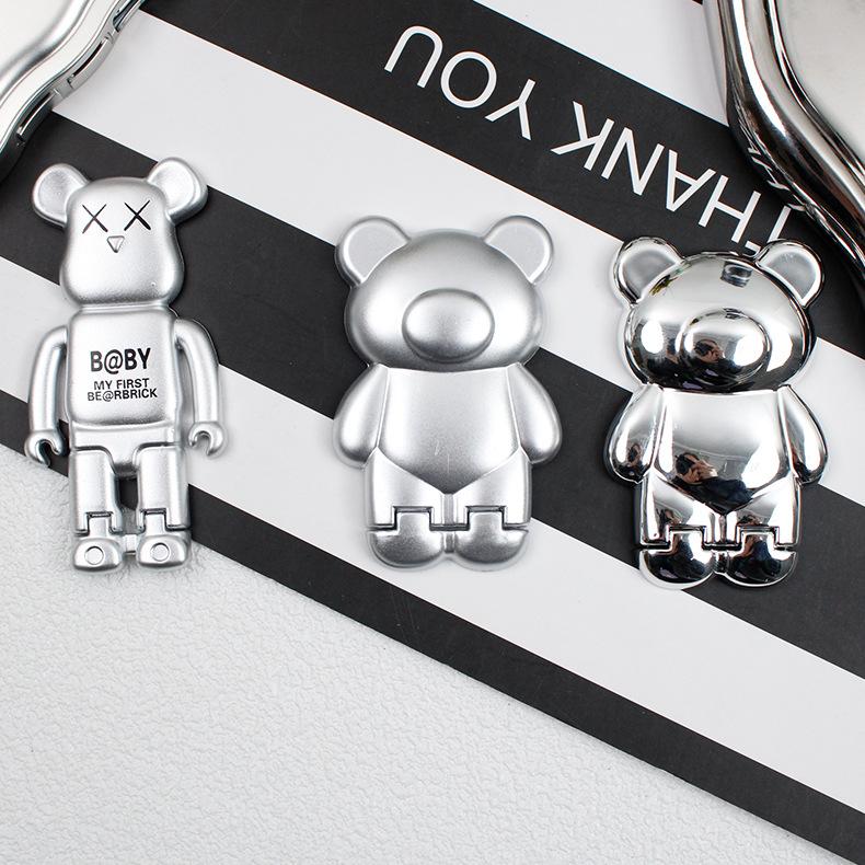 Soporte para Teléfono Móvil Electroplateado Plateado Soporte para Teléfono Móvil Oso Soporte Plegable Soporte para Teléfono Móvil Push-pull Portátil