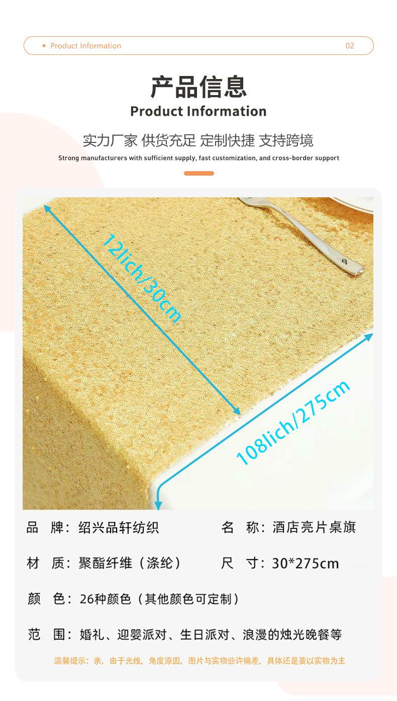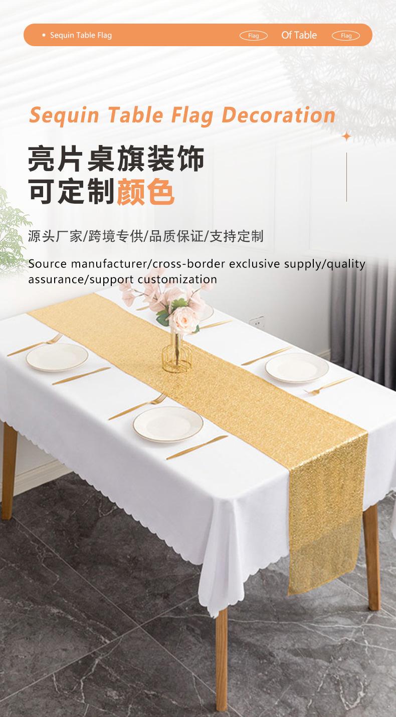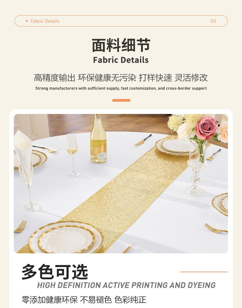 Camino de mesa con lentejuelas bordadas de color sólido transfronterizo, mantel individual, camino de mesa de poliéster de color sólido con acabado de fábrica transfronterizo