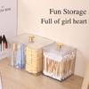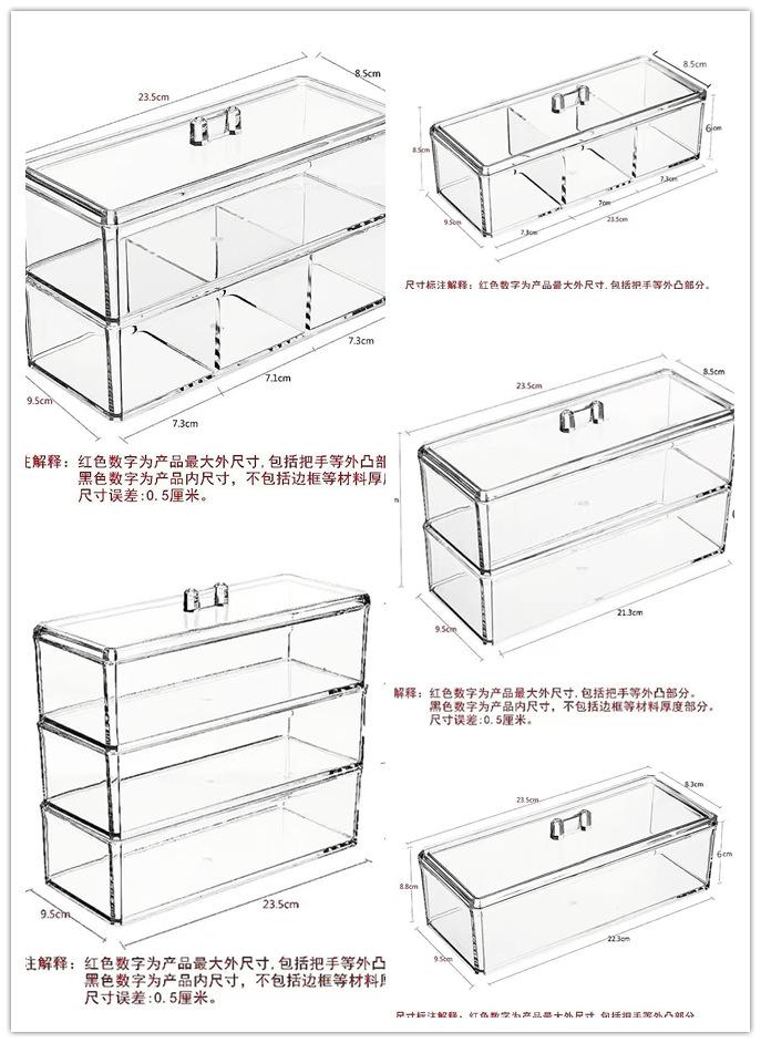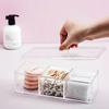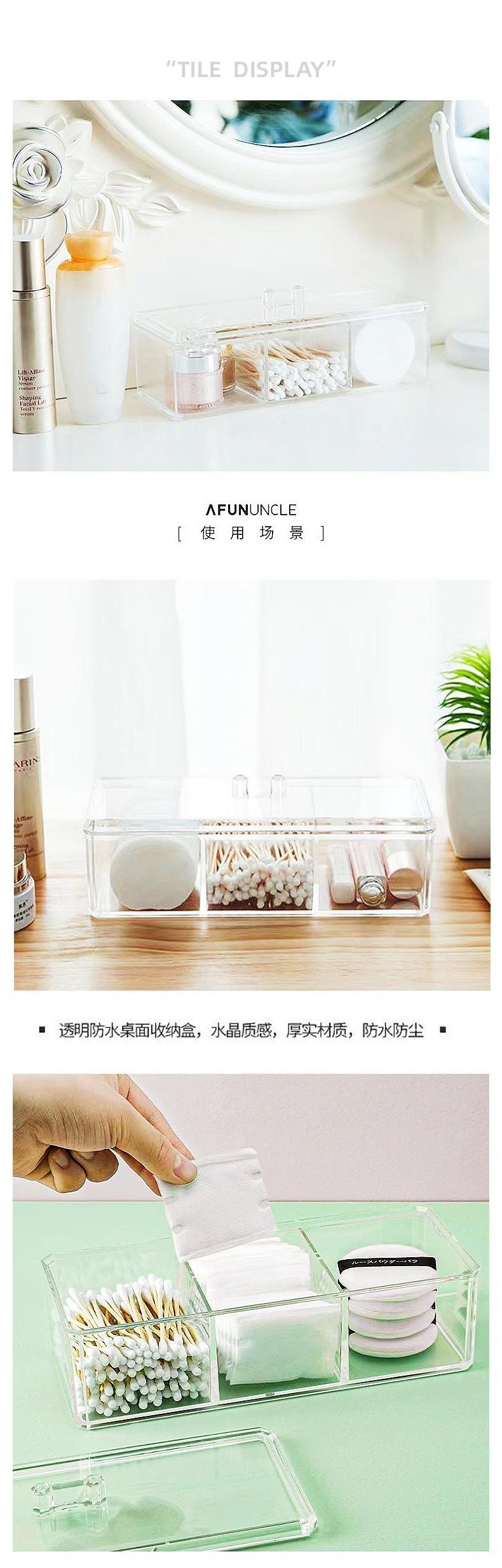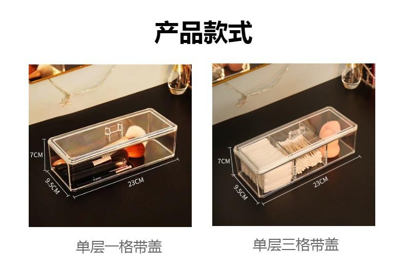 Caja de Maquillaje Rectangular Transparente de Escritorio Compartimentada con Tapa, a Prueba de Polvo para Cosméticos Hisopos de Algodón, Lápiz Labial, Caja de Almacenamiento de Algodón para Maquillaje