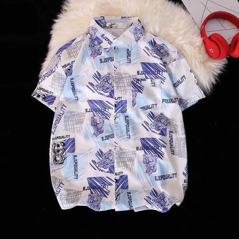 Camisa de manga corta con estampado divertido y completo para hombre, talla grande, holgada, moderna, de marca, informal, hawaiana, de media manga