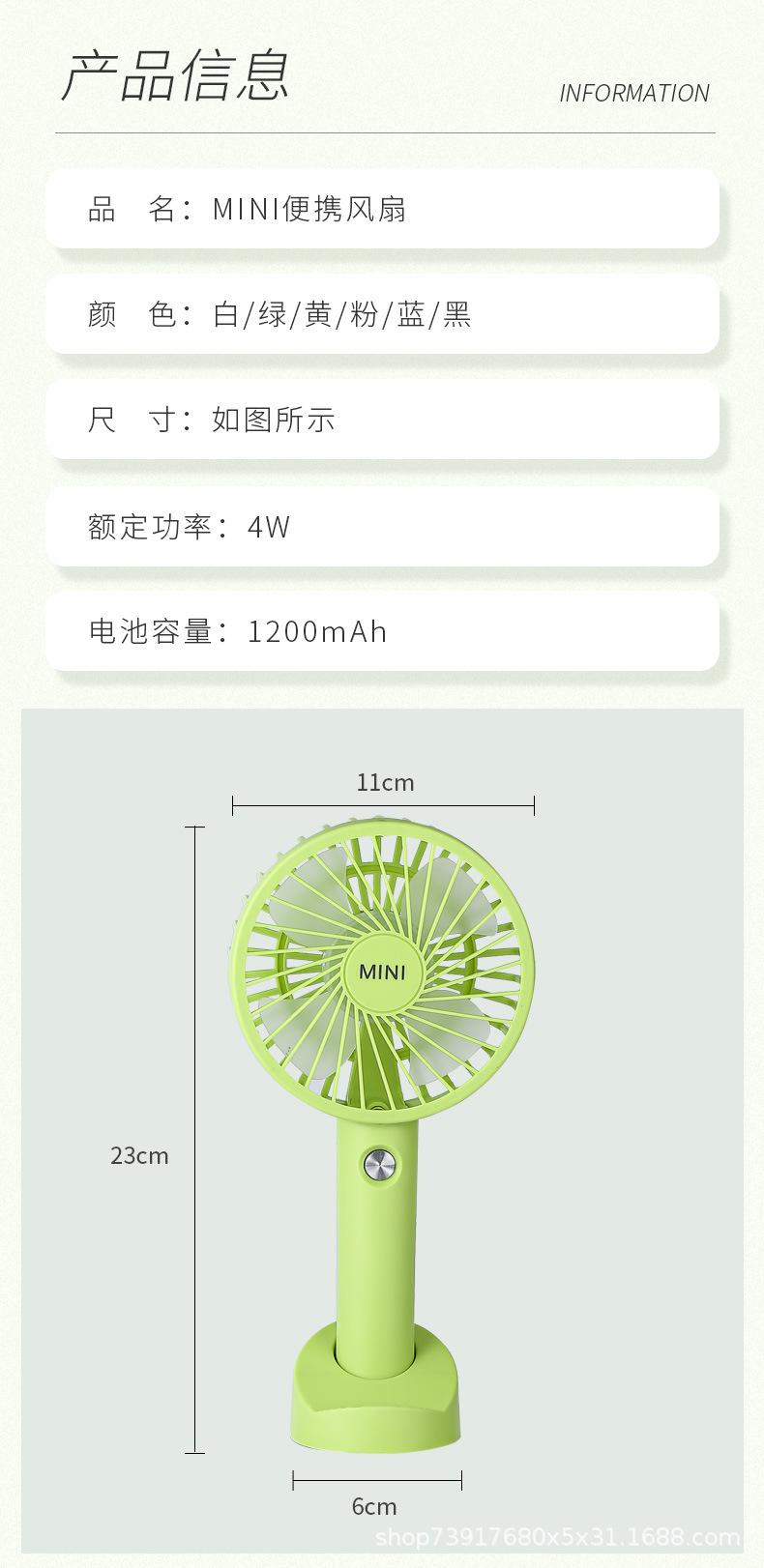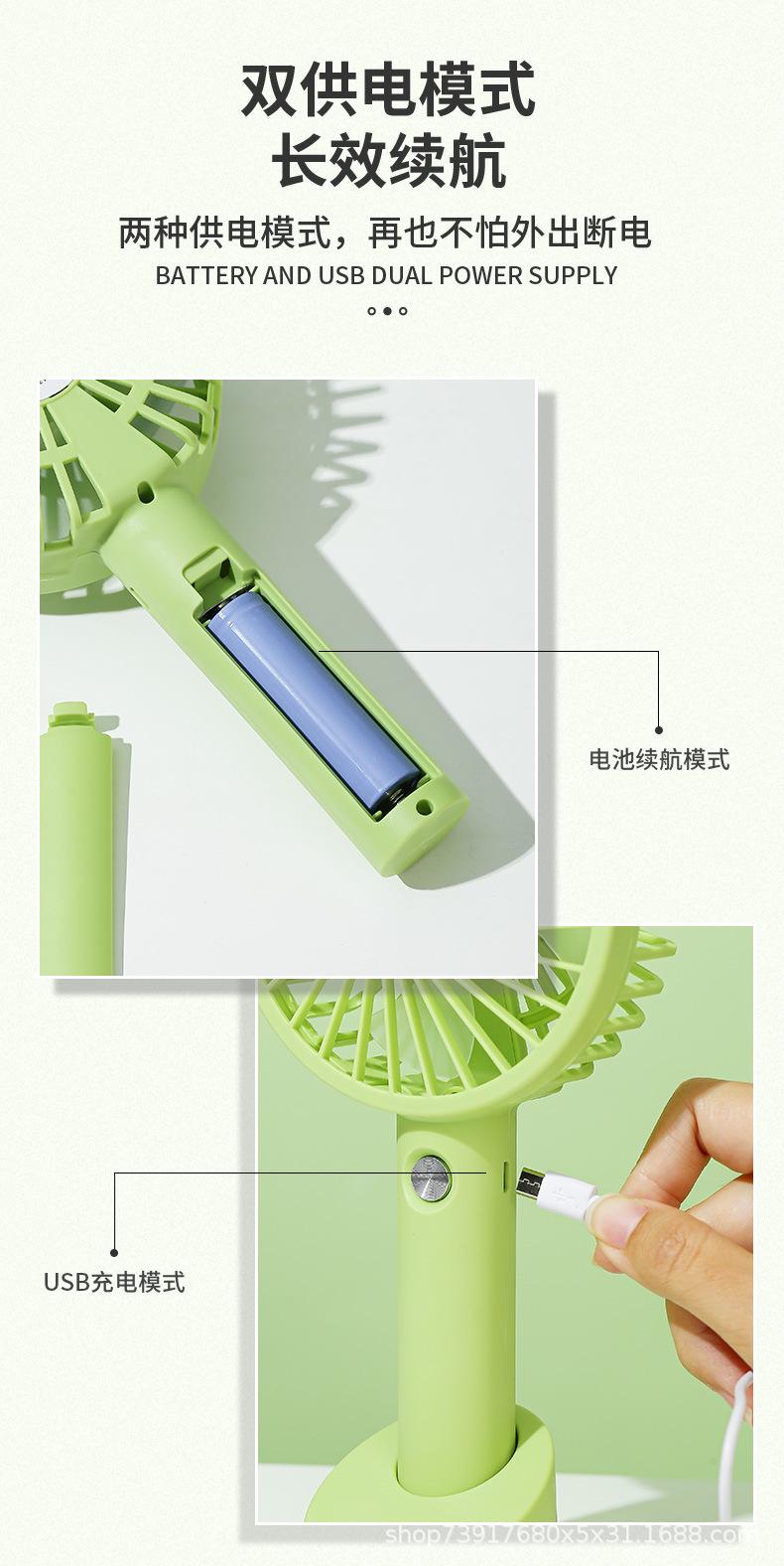 Mini ventilador de mano carga USB viento grande de escritorio portátil bajo ruido mini ventilador soporte para teléfono móvil