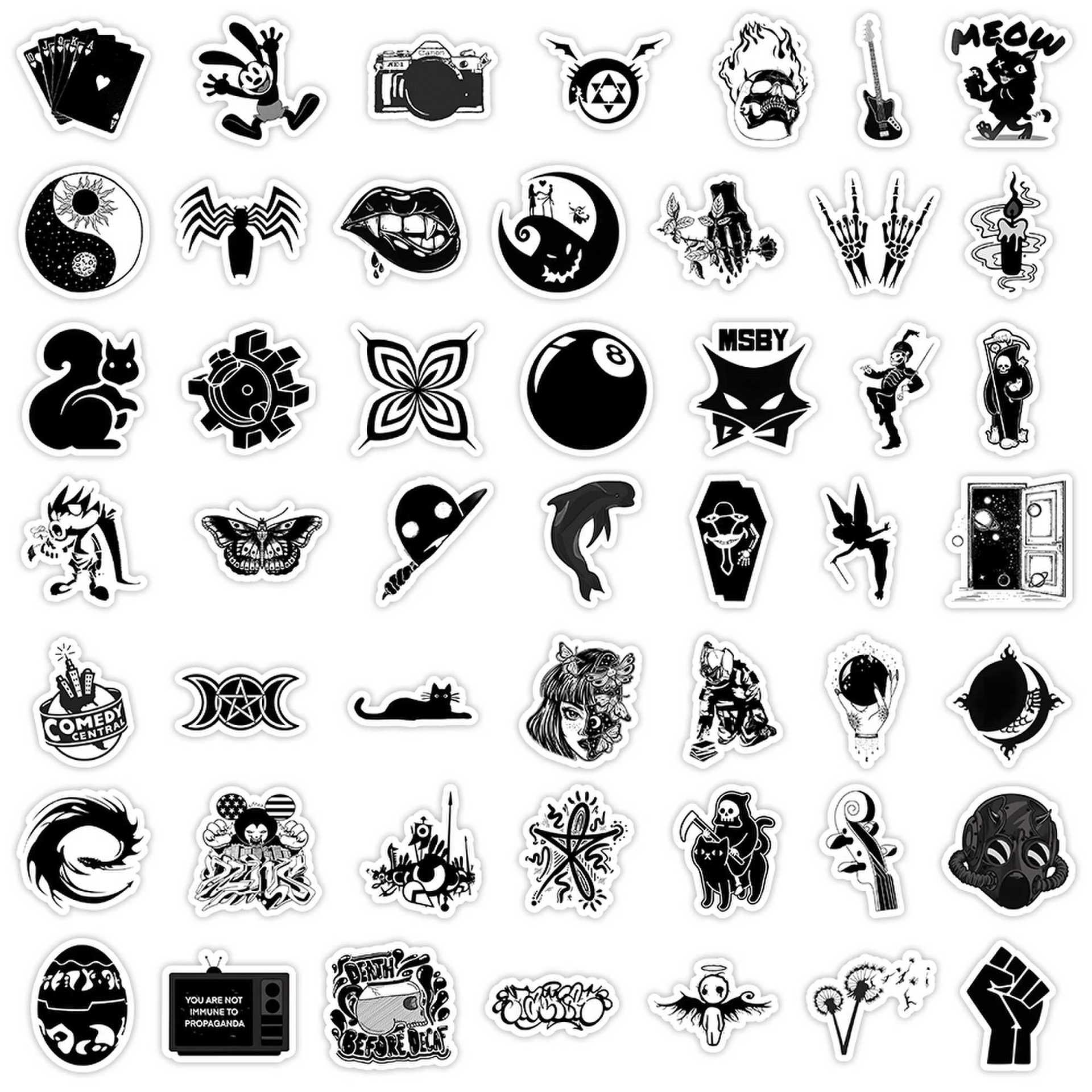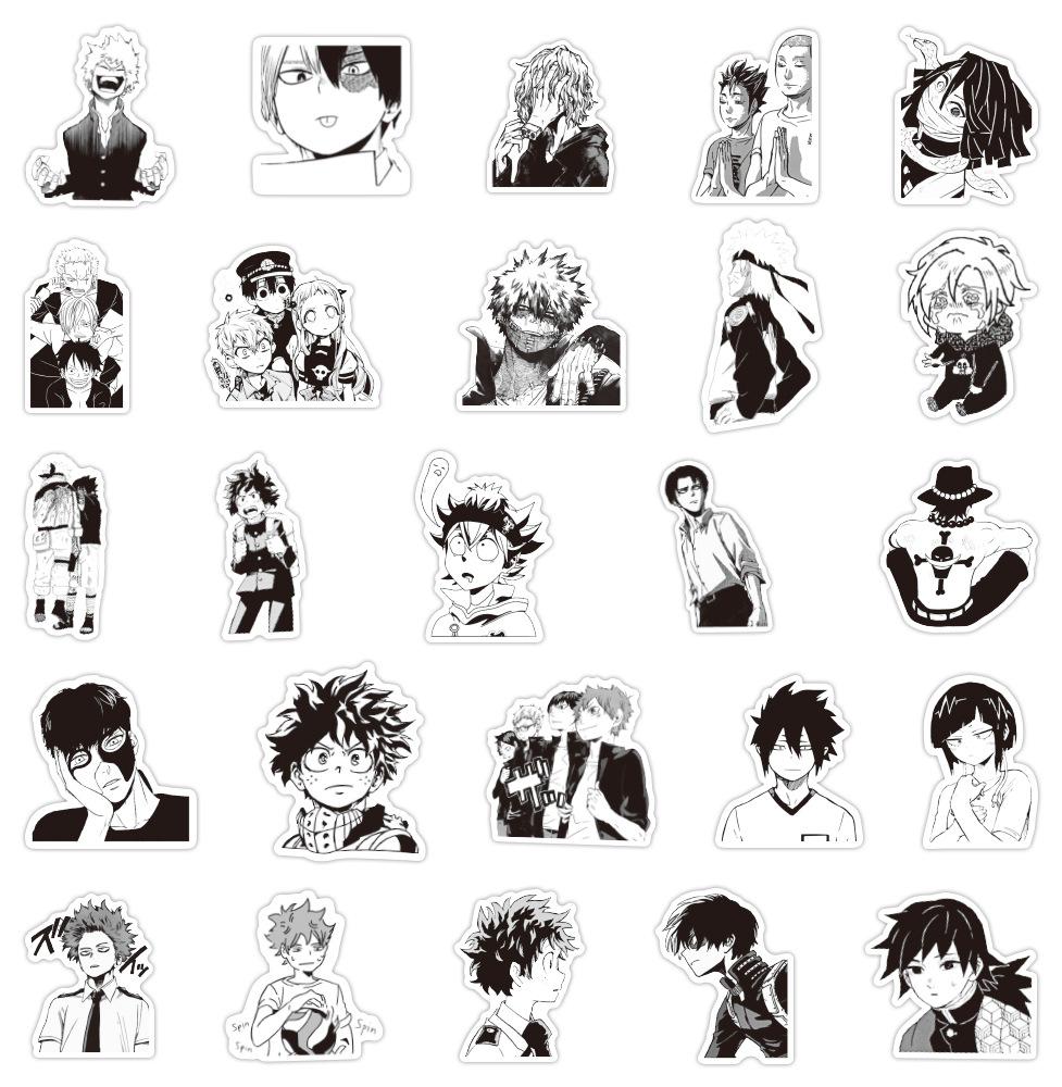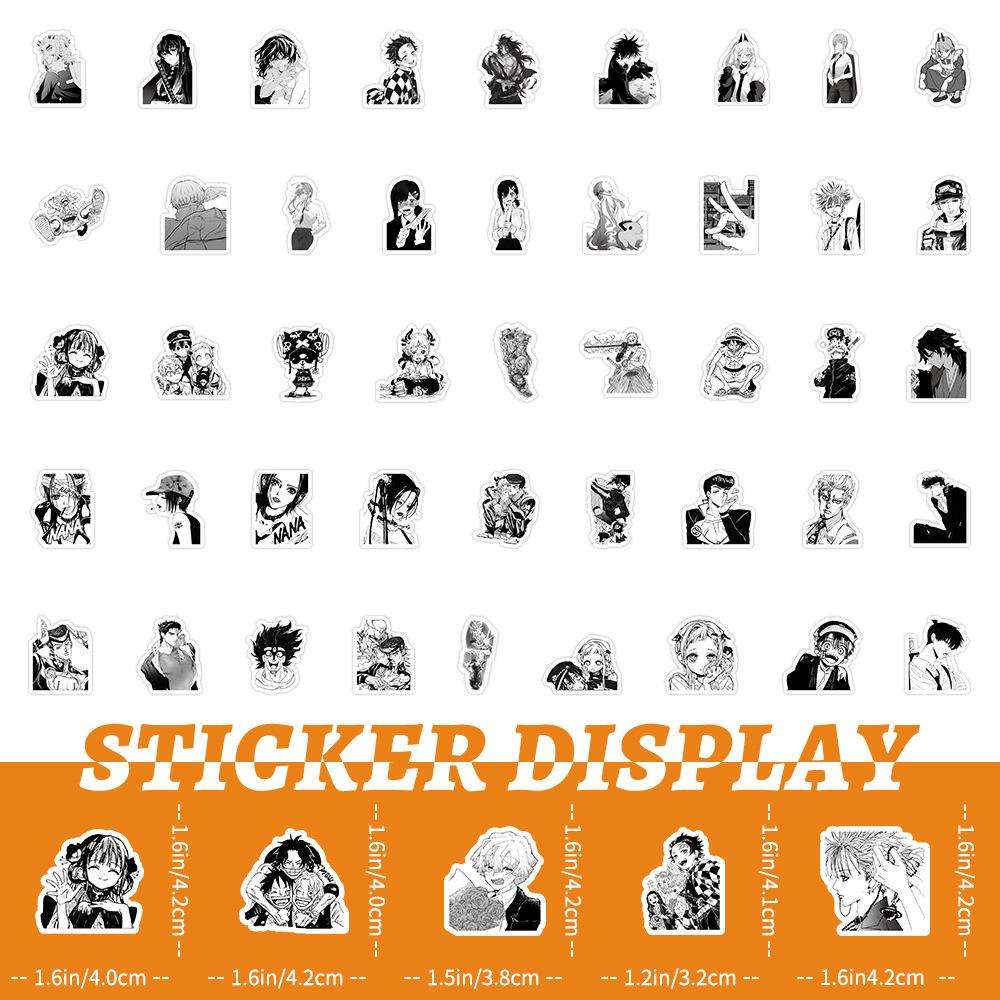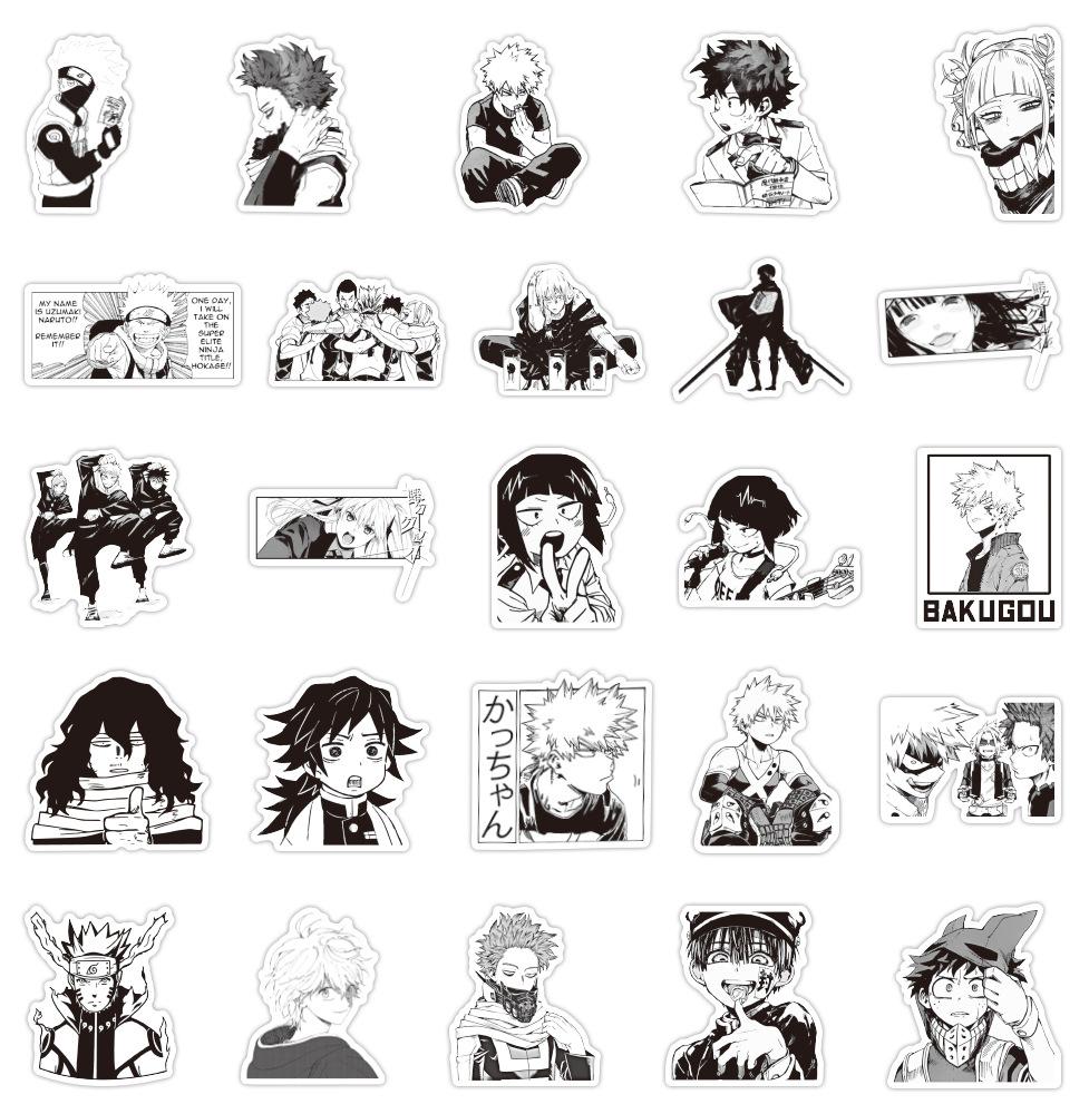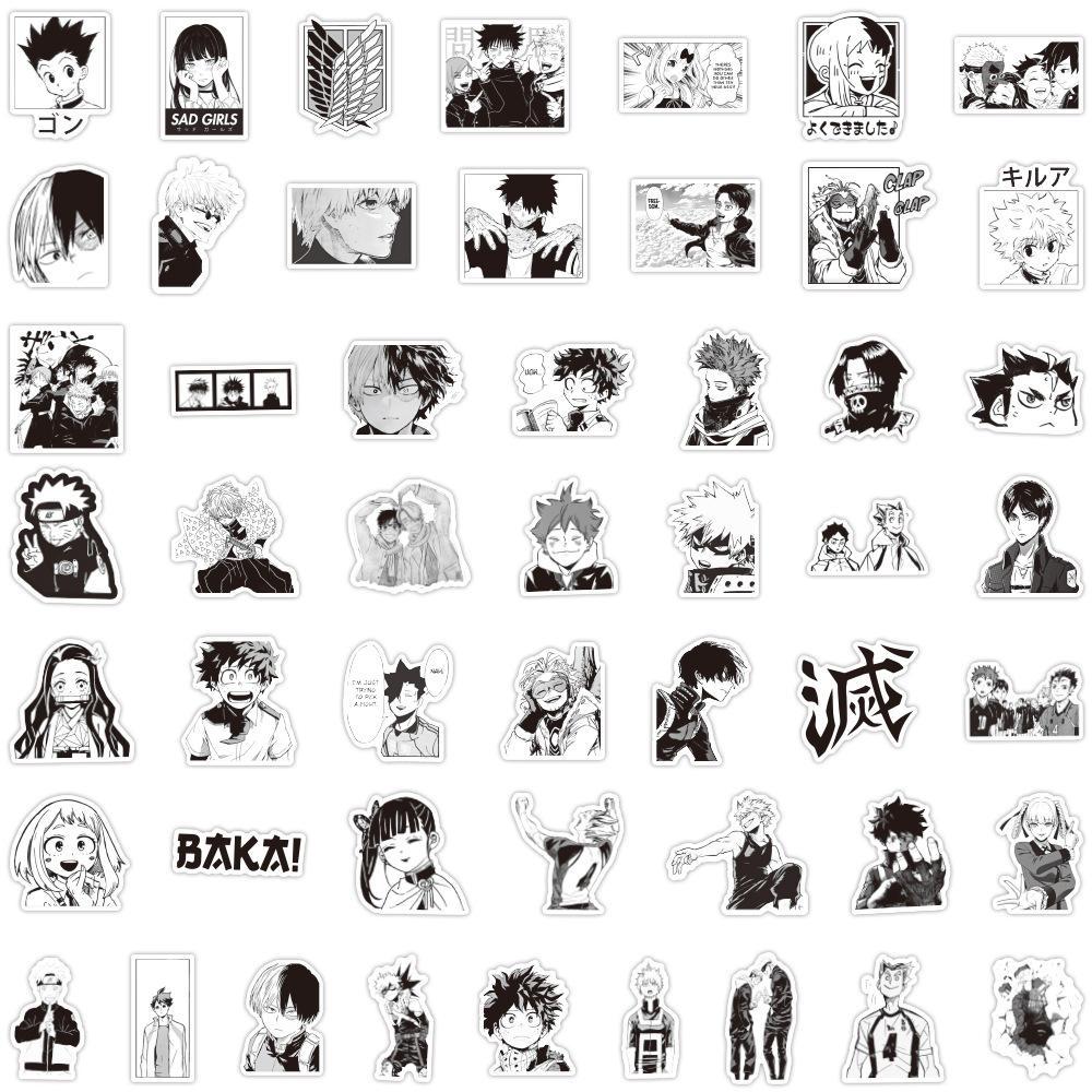 Colección de 50 Stickers de Anime en Blanco y Negro Stickers Graffiti DIY Creativos para Taza de Agua, Computadora, Guitarra, Patineta, Maleta