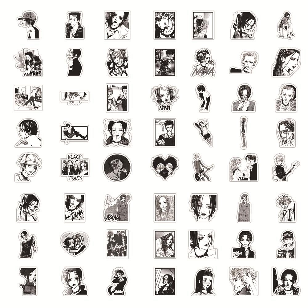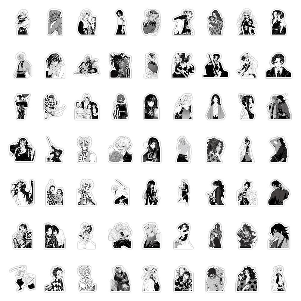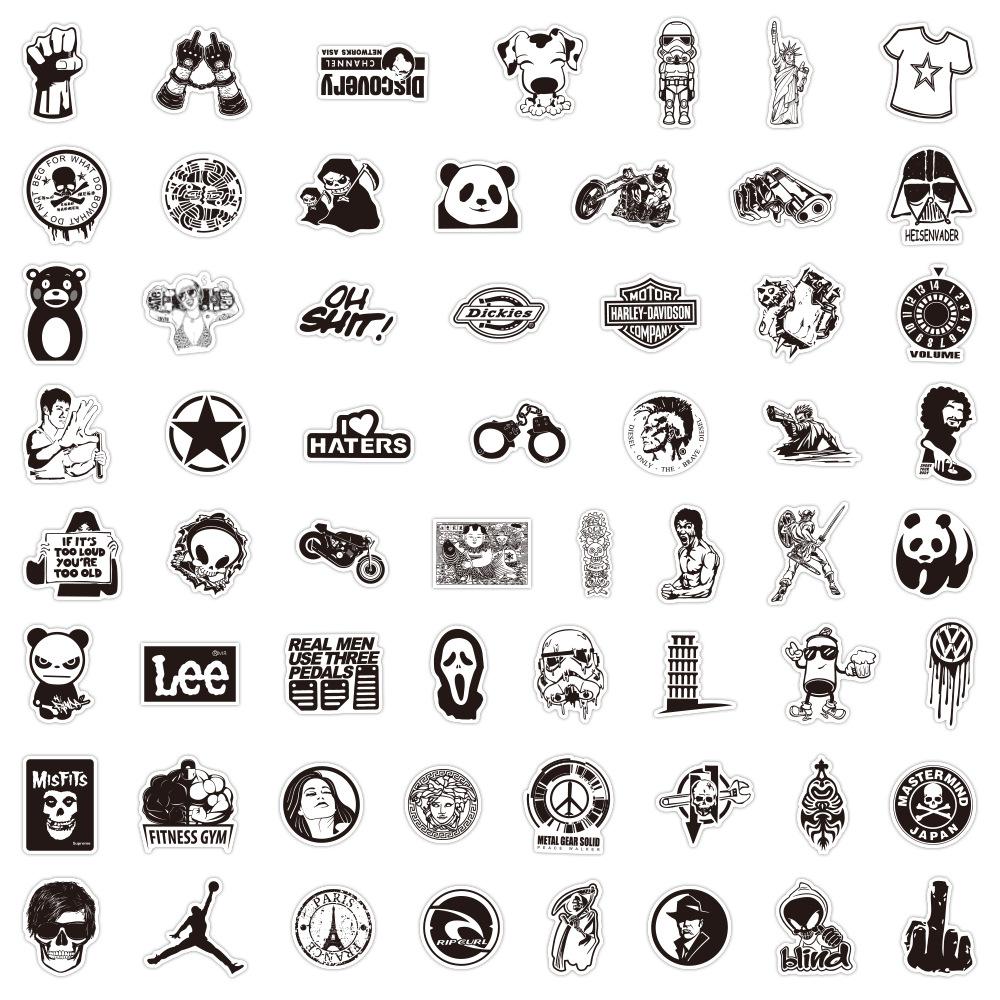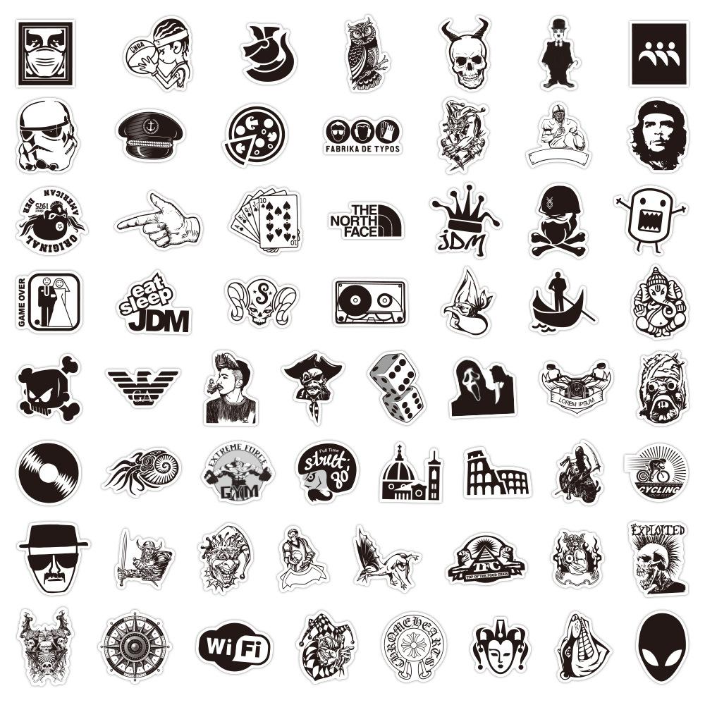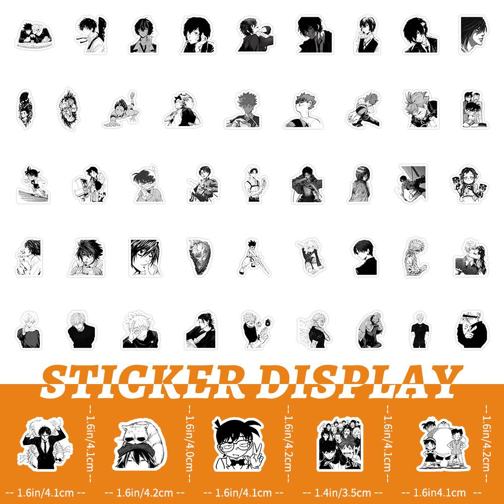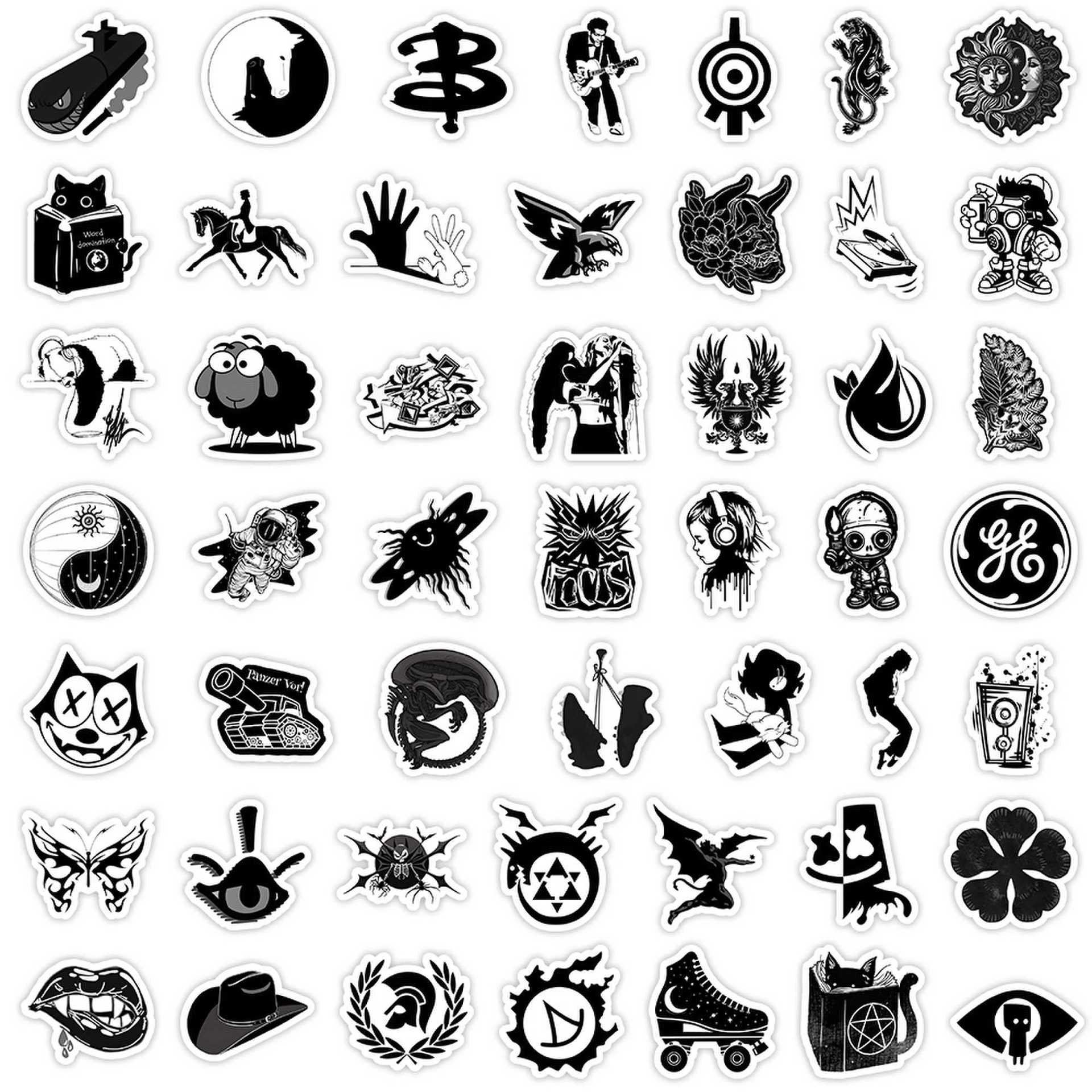 Colección de 50 Stickers de Anime en Blanco y Negro Stickers Graffiti DIY Creativos para Taza de Agua, Computadora, Guitarra, Patineta, Maleta
