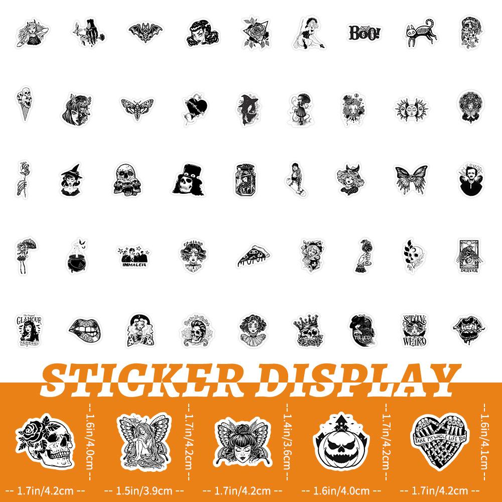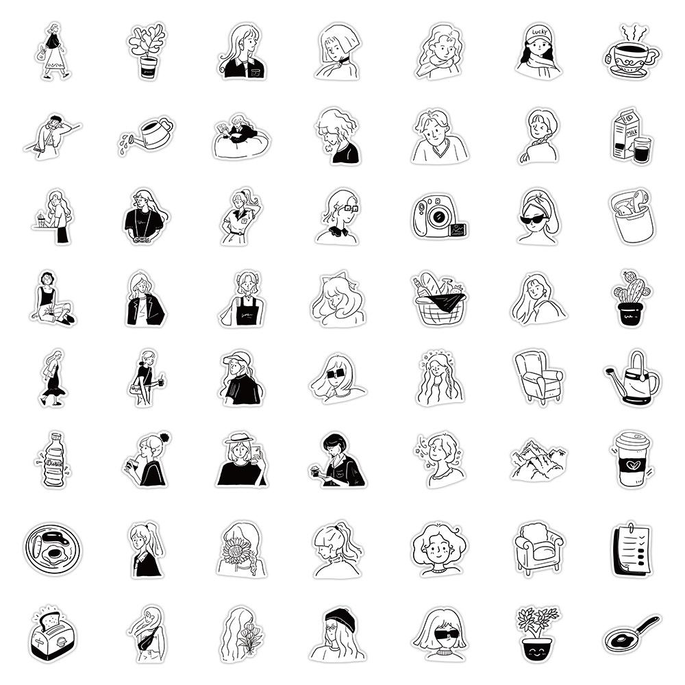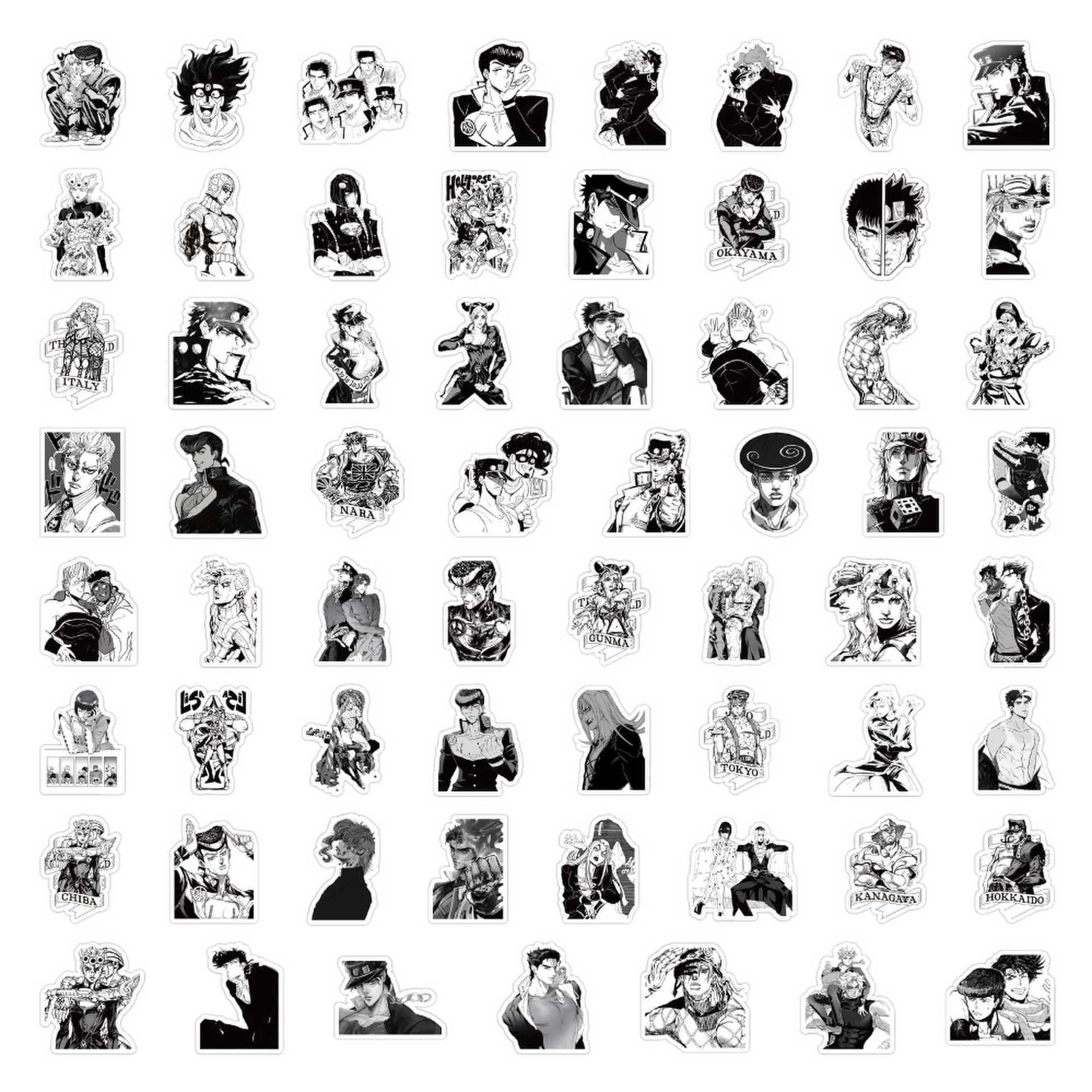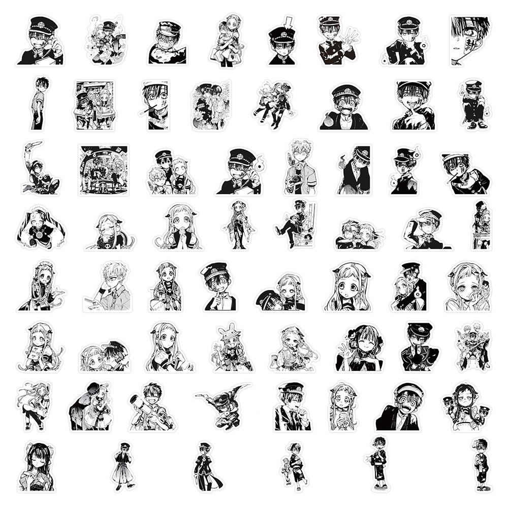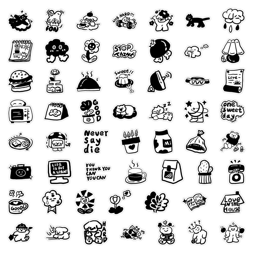 Colección de 50 Stickers de Anime en Blanco y Negro Stickers Graffiti DIY Creativos para Taza de Agua, Computadora, Guitarra, Patineta, Maleta