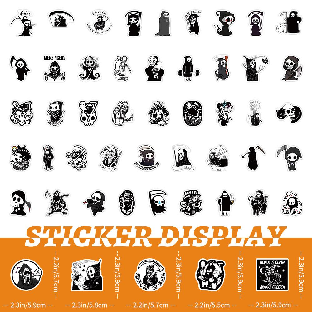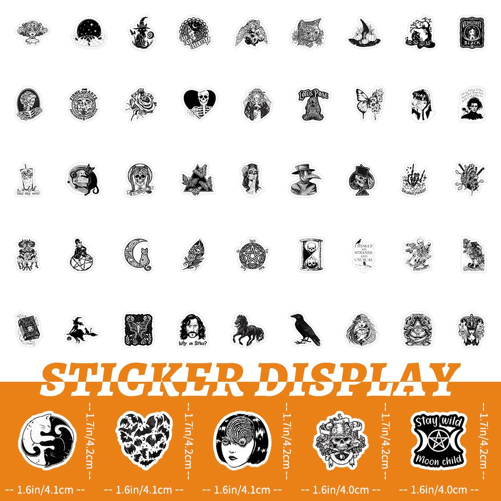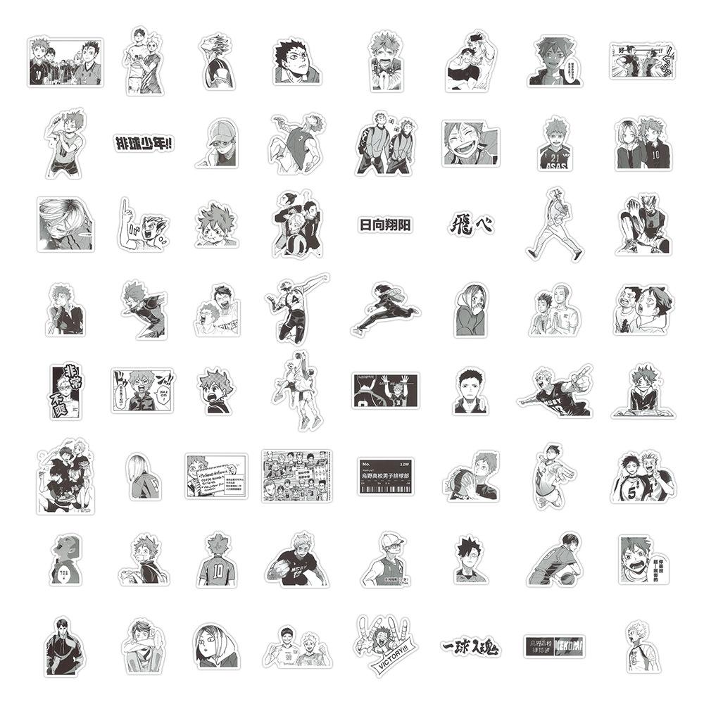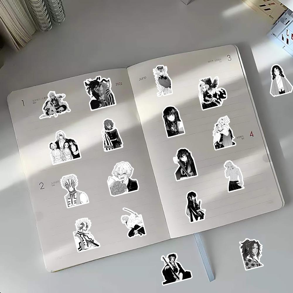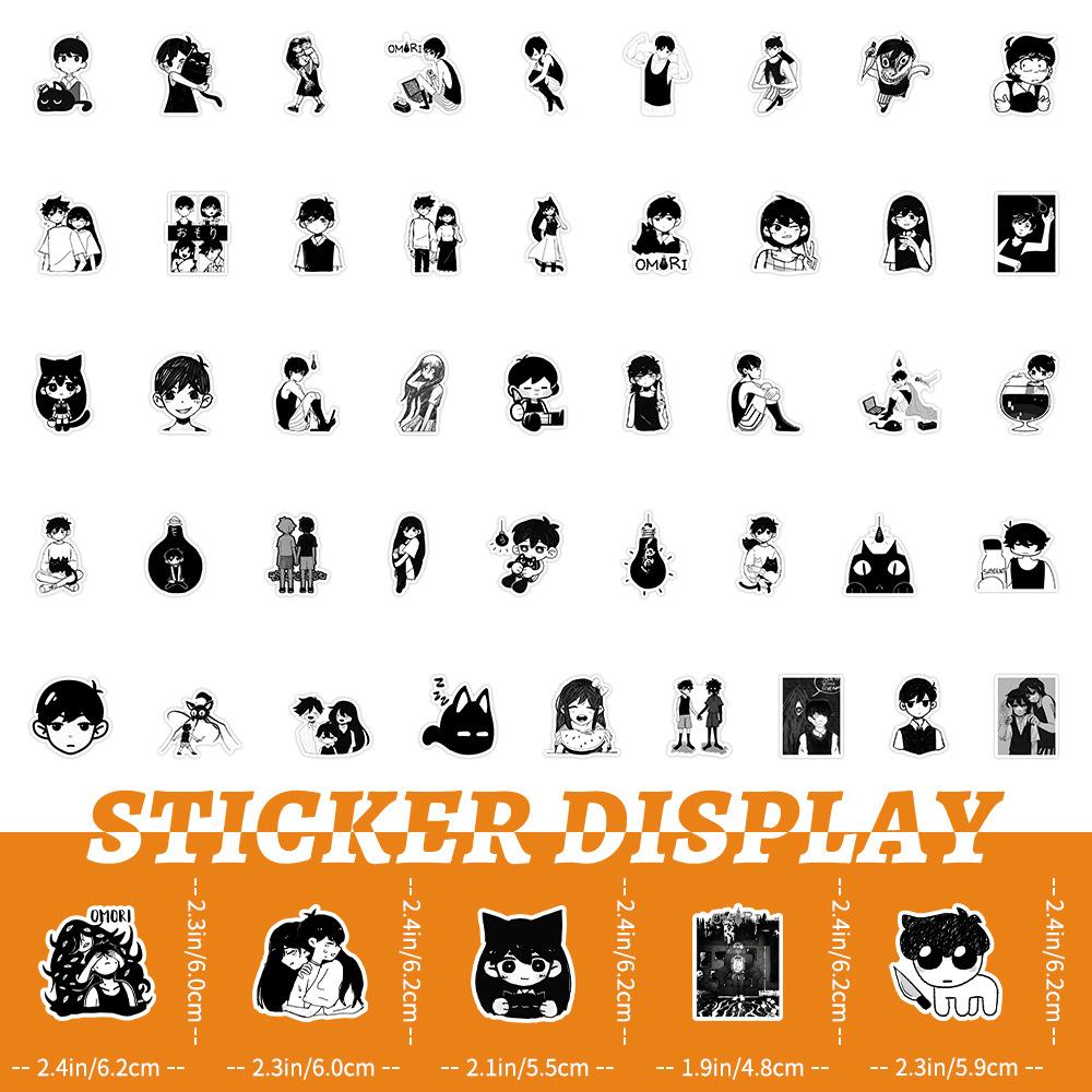 Colección de 50 Stickers de Anime en Blanco y Negro Stickers Graffiti DIY Creativos para Taza de Agua, Computadora, Guitarra, Patineta, Maleta