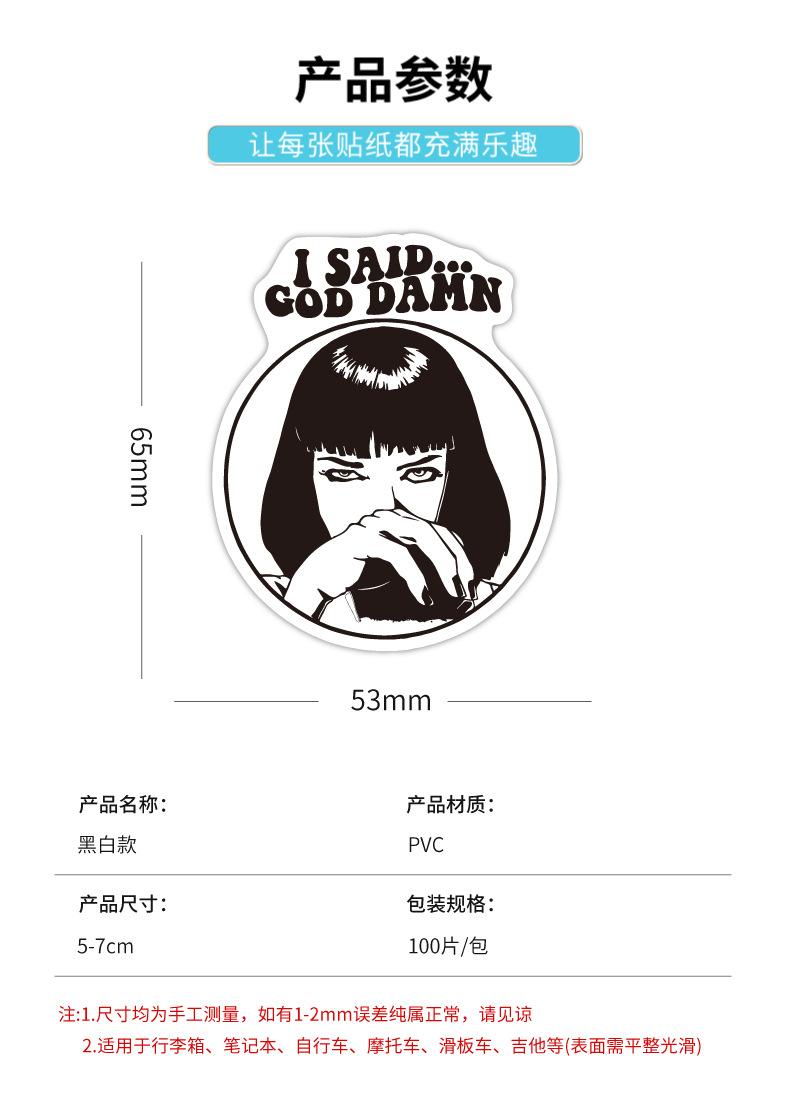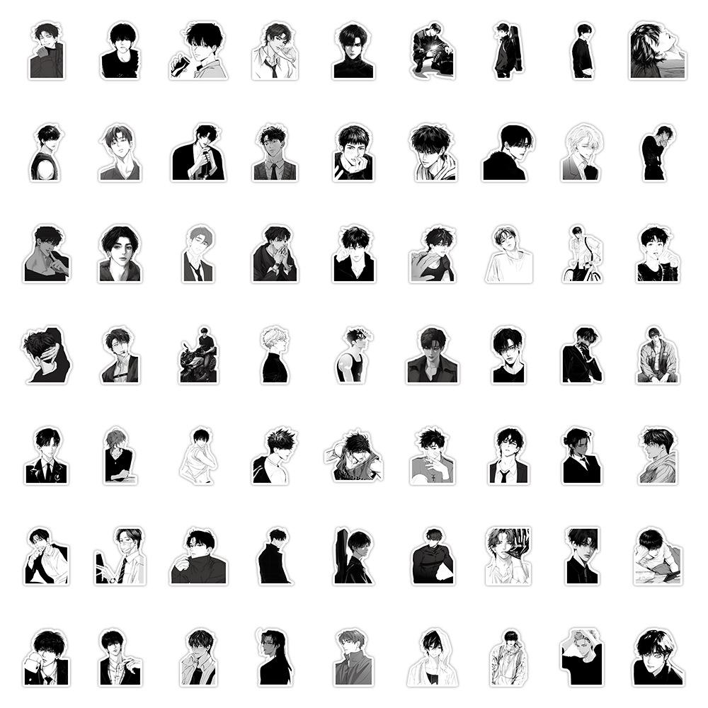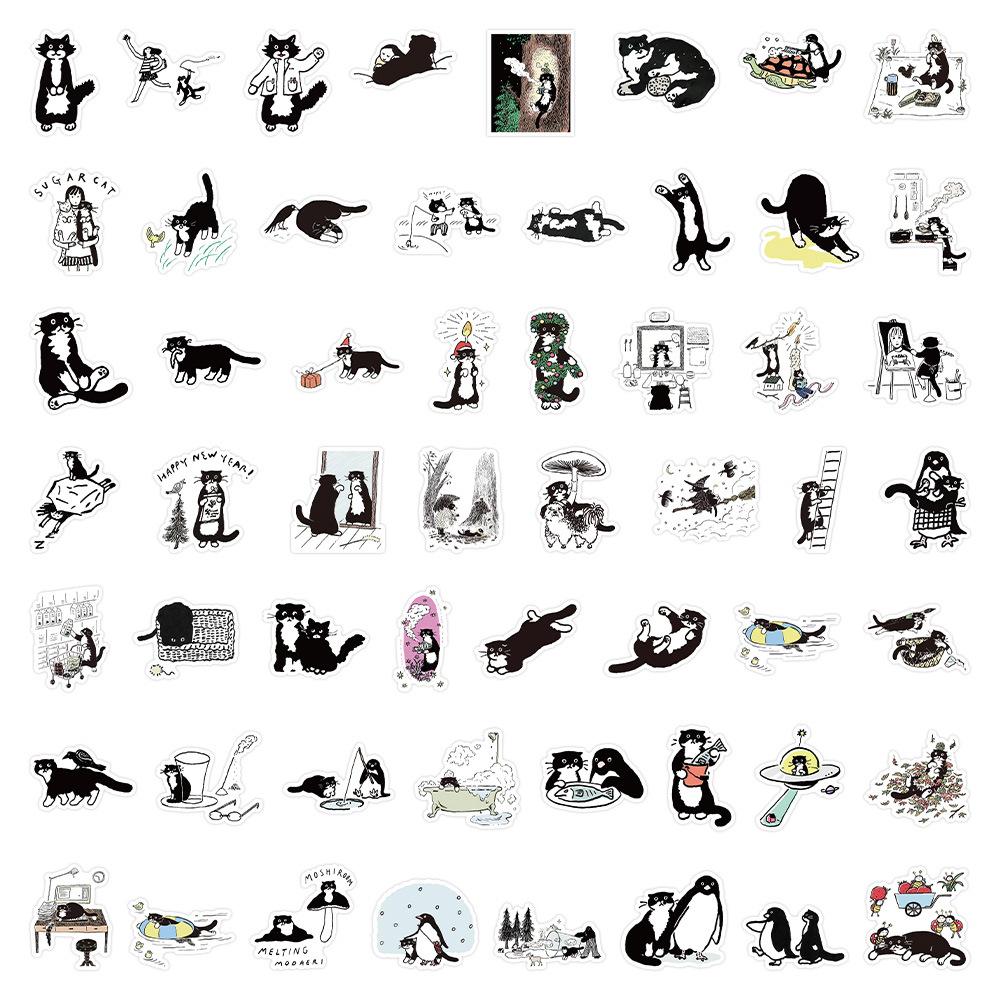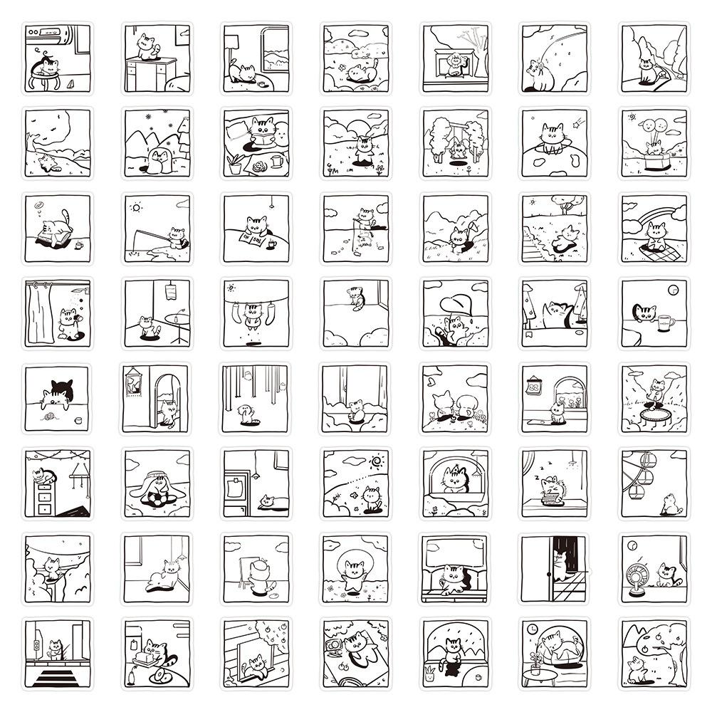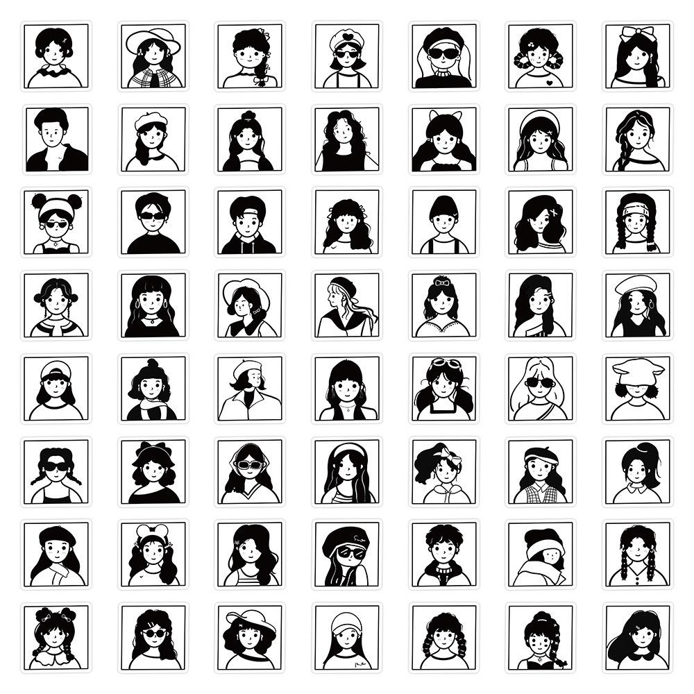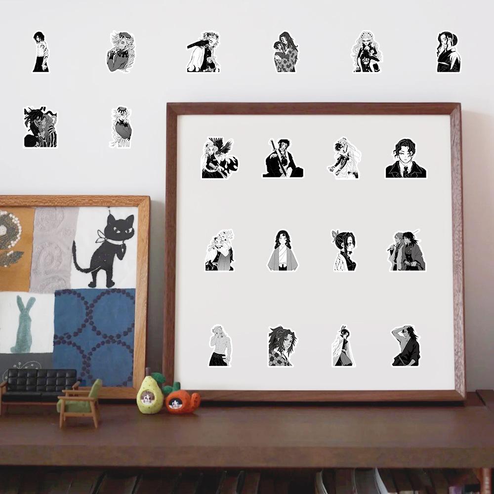 Colección de 50 Stickers de Anime en Blanco y Negro Stickers Graffiti DIY Creativos para Taza de Agua, Computadora, Guitarra, Patineta, Maleta