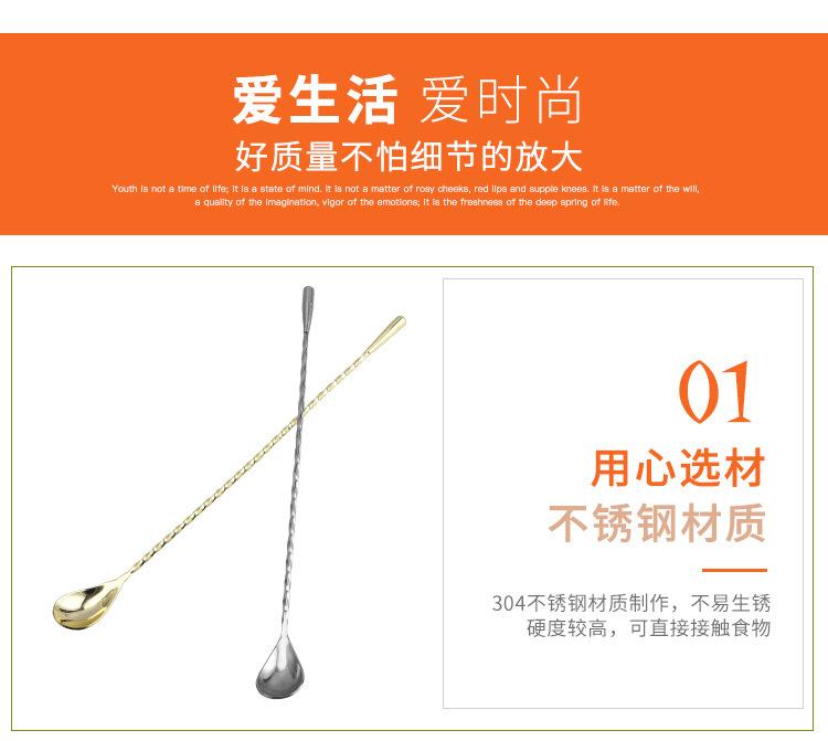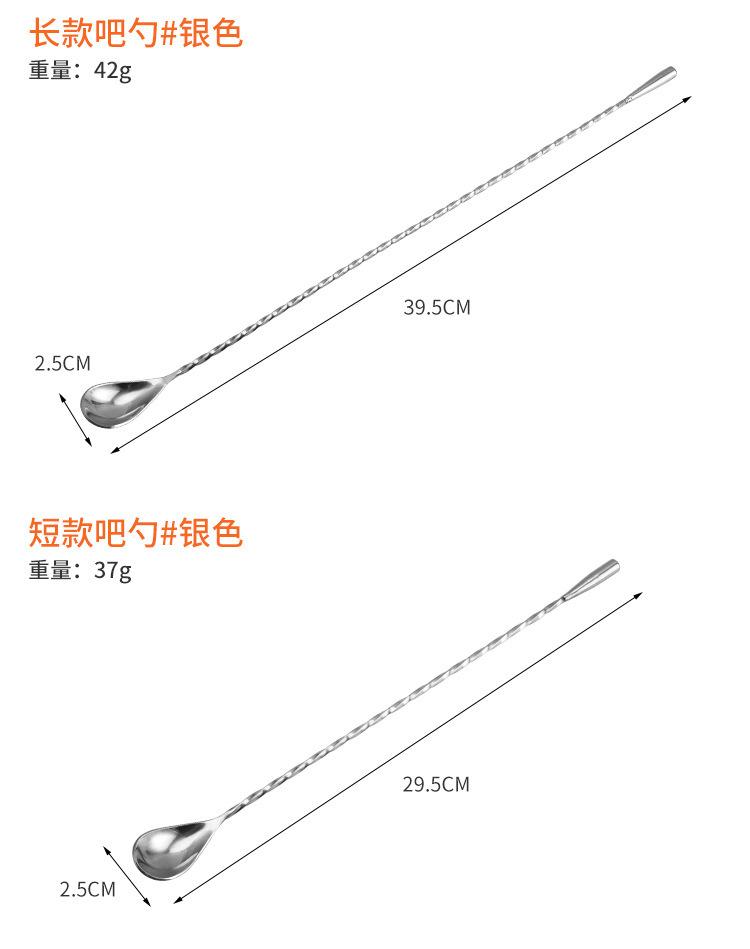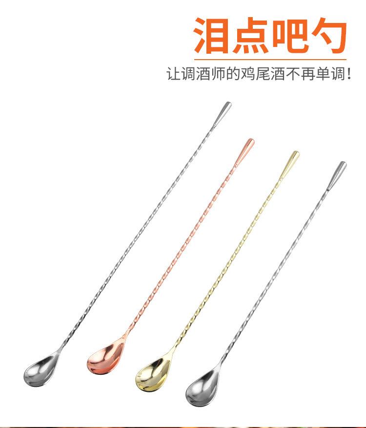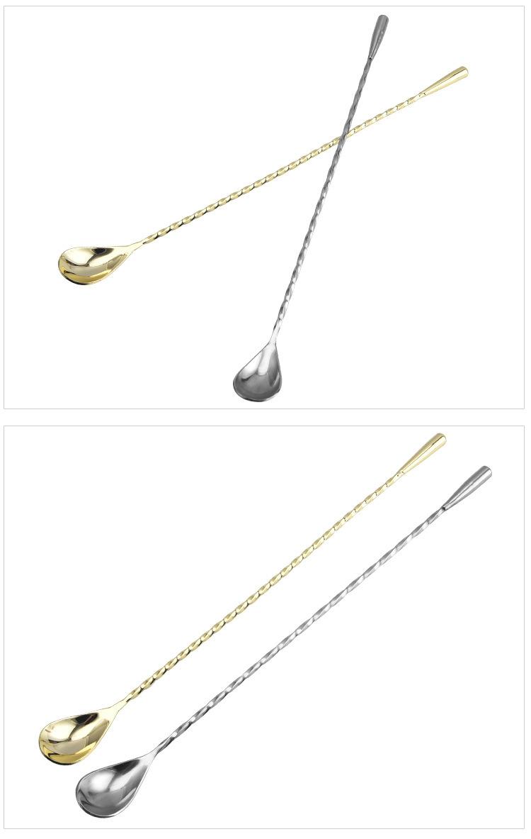 Cuchara de barra de acero inoxidable 304 con forma de gota de agua, de rosca fina, para mezclar cócteles, con forma de lágrima