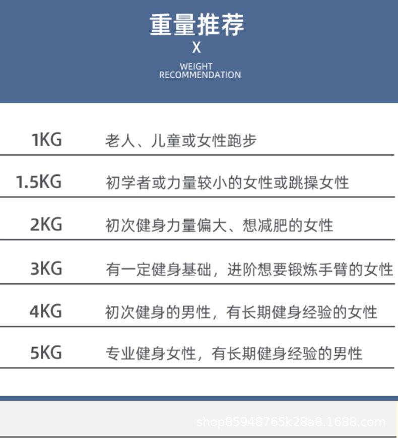 0.5kg single (purple, black, red, yellow, pink, gray), 1kg single (purple, black, red, yellow, pink, gray), 2k...