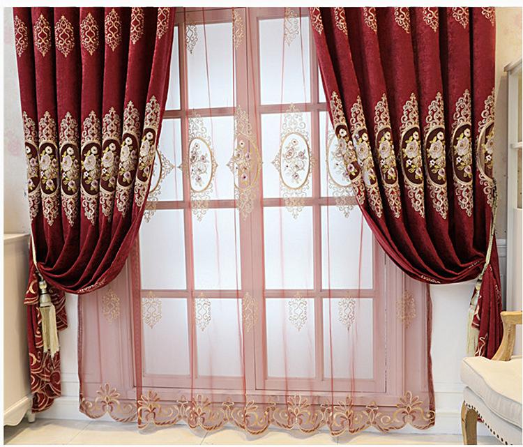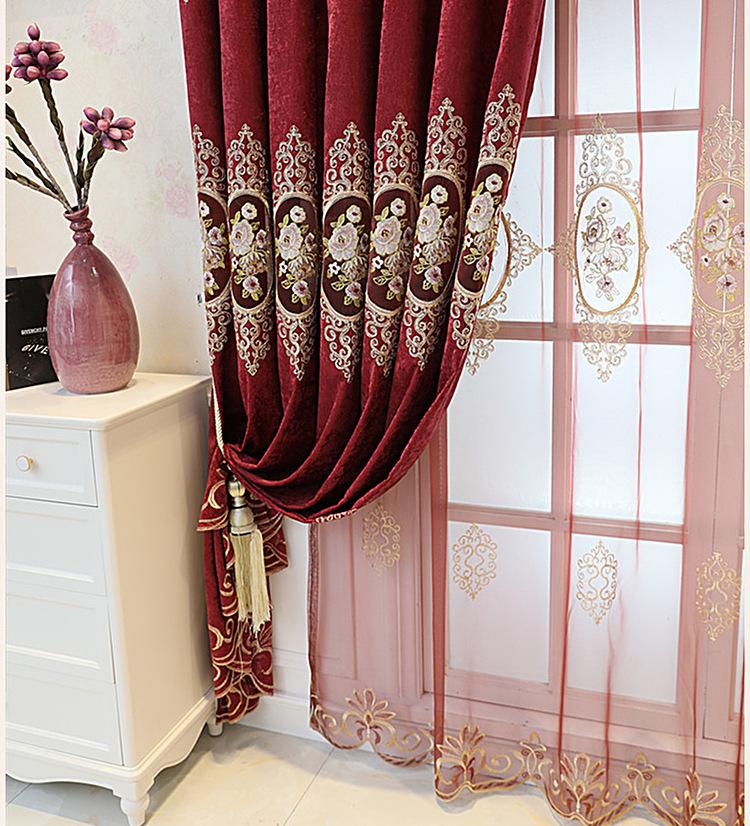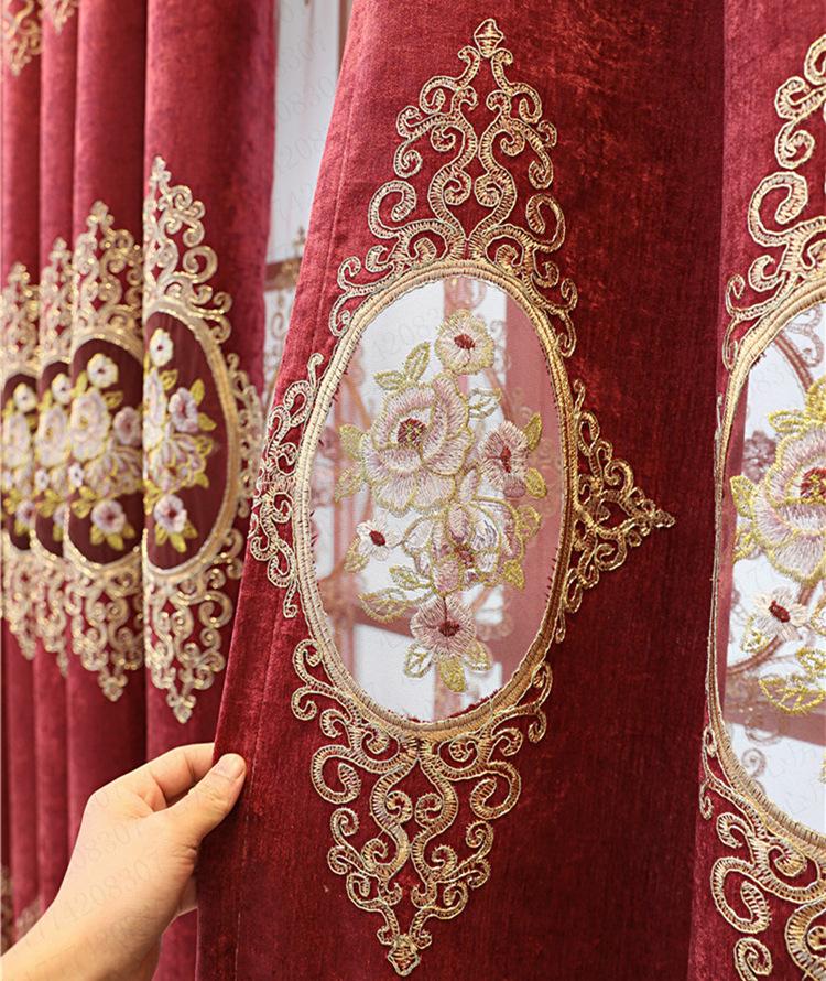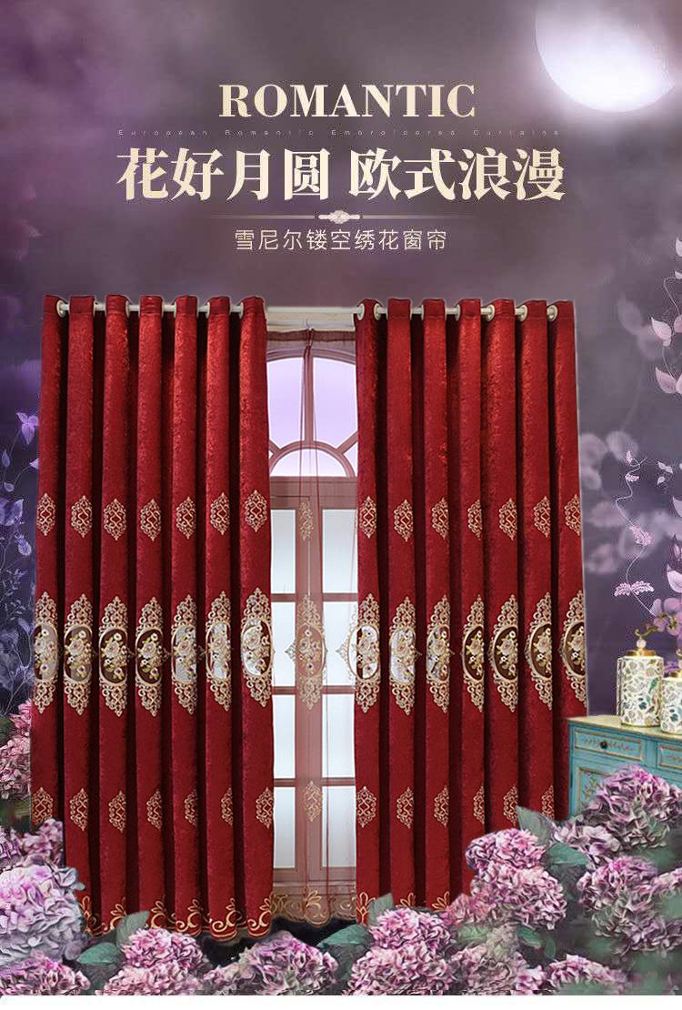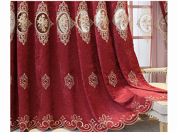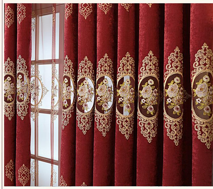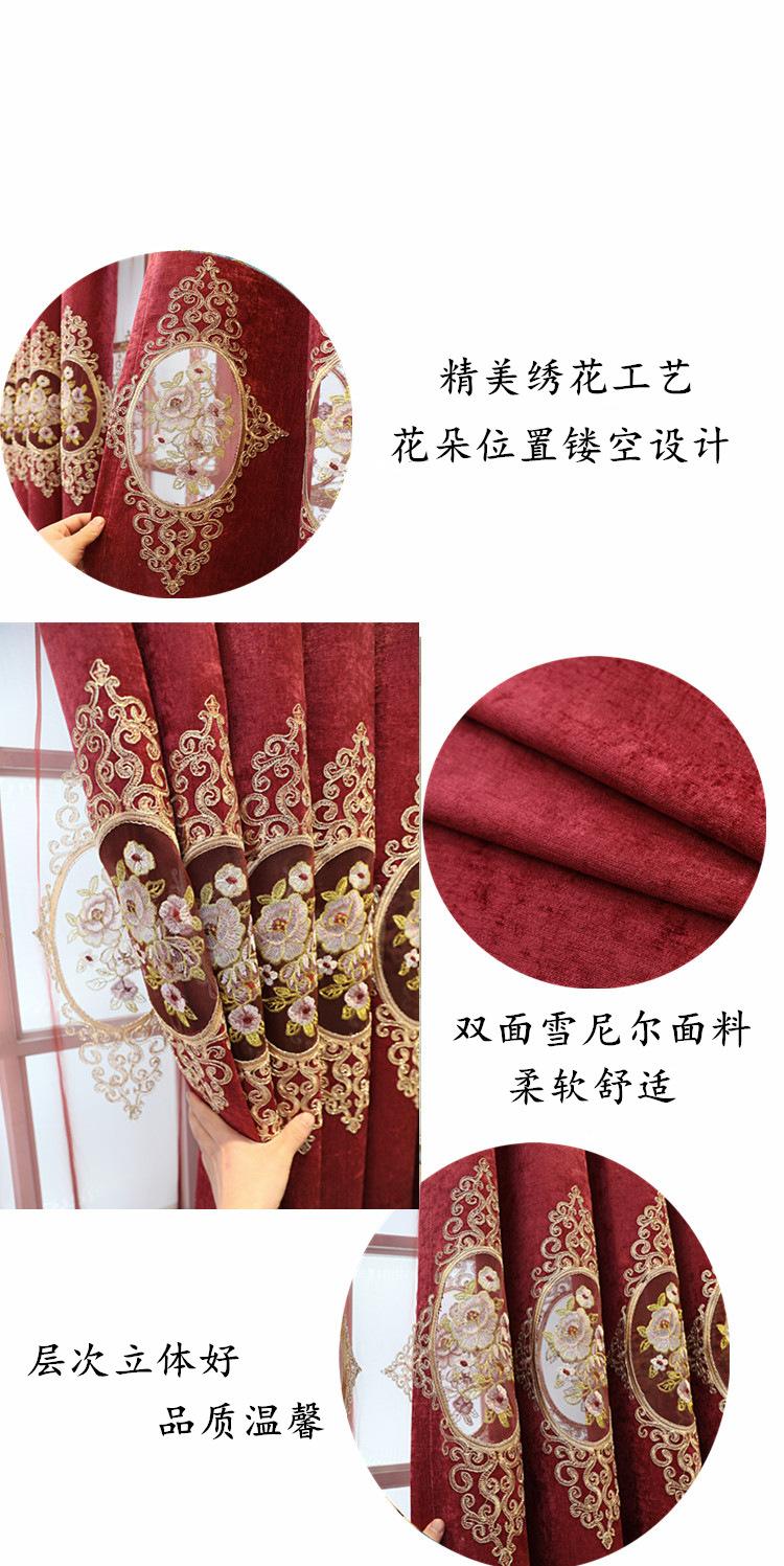 Tela de cortina bordada europea, suministro directo de fábrica, cortina de chenilla terminada, sala de estar, dormitorio, balcón, piso, ventana, venta al por mayor