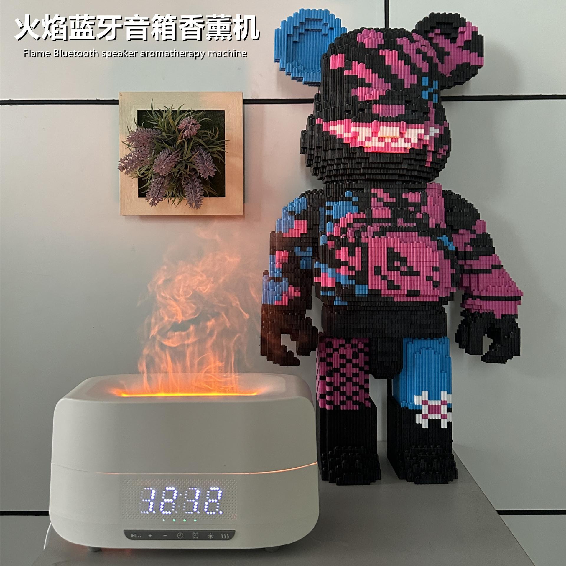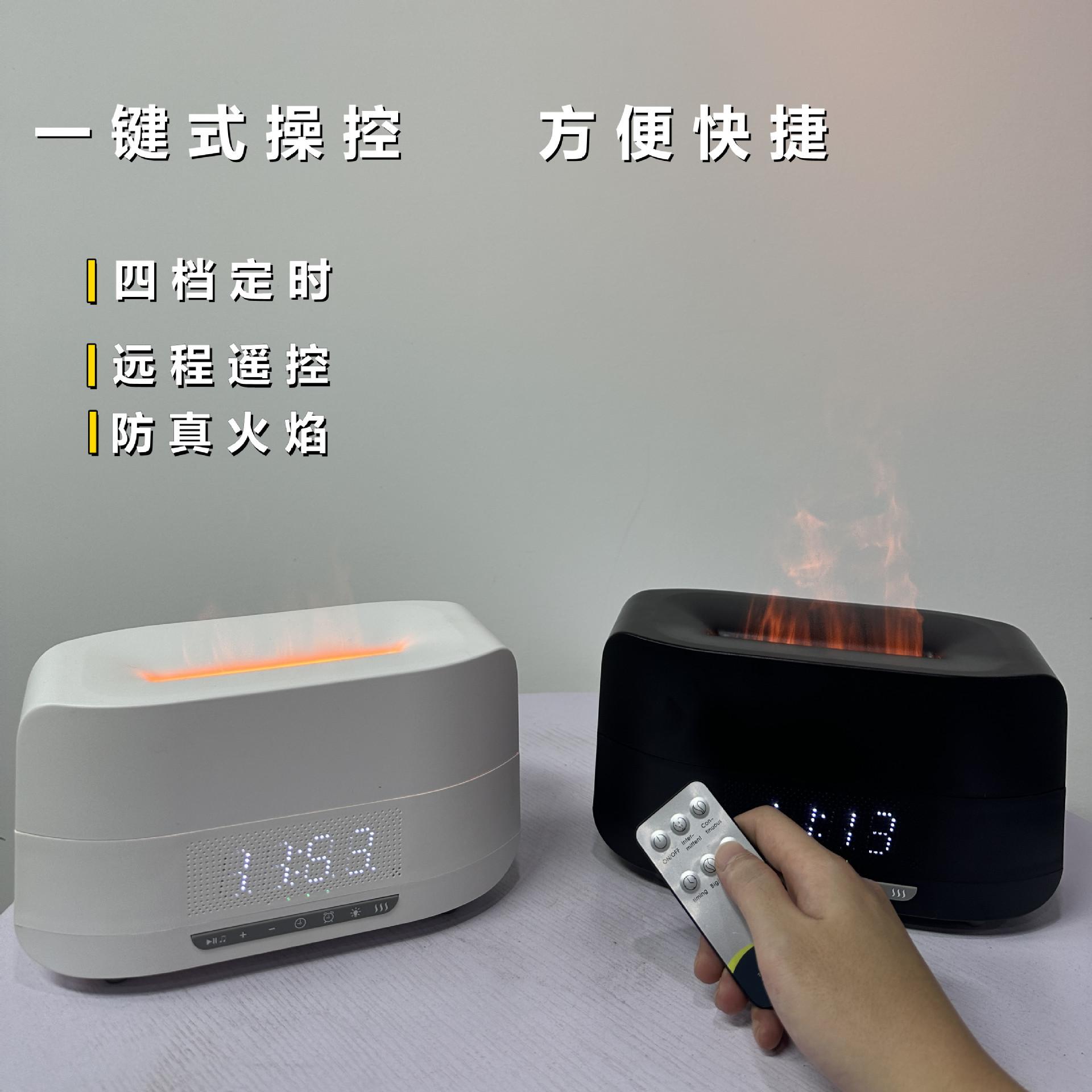 Nuevo Altavoz Bluetooth Inalámbrico Creativo Transfronterizo Humidificador de Llama Máquina de Aromaterapia Reloj con Pantalla Digital Ventas Directas de Fábrica Regalos
