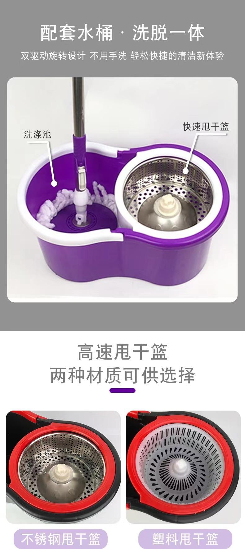 Set de Cubeta para Trapeador Extra Grande de Doble Impulso Perezoso Giratorio de Acero Inoxidable Giratorio-Secado Doméstico Trapeador de Lavado a Mano de Doble Uso Seco y Húmedo