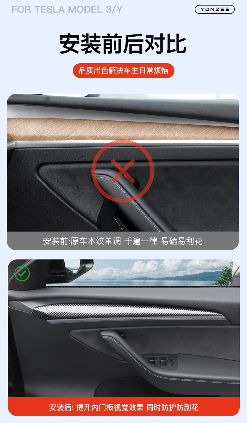 Adecuado para moldura de puerta Tesla Model3/Y, modificación interior del panel de instrumentos de la consola central, autopartes de puerta delantera