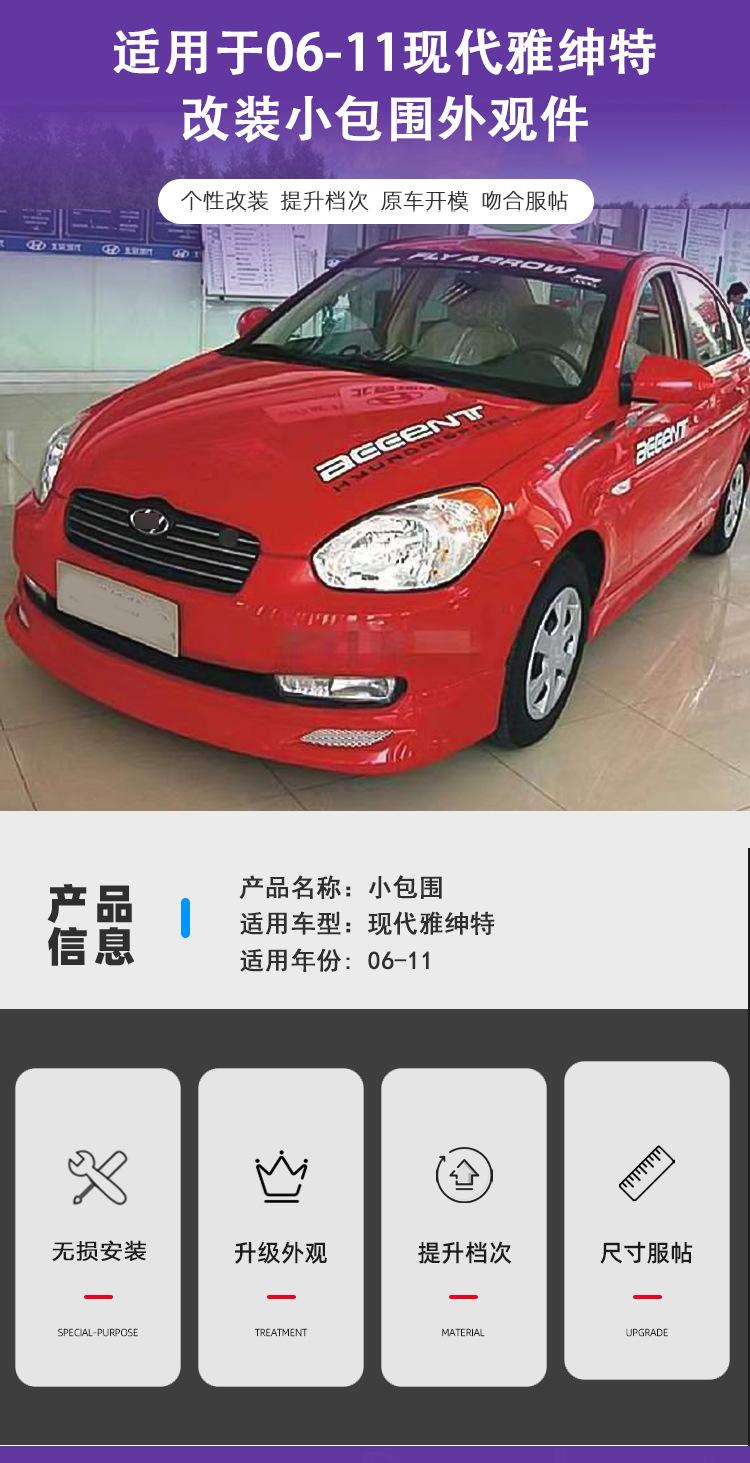 Adecuado para Hyundai Accent 06-11 piezas de apariencia envolvente labio delantero engrosado alerón labio trasero faldón lateral piezas de modificación de coche