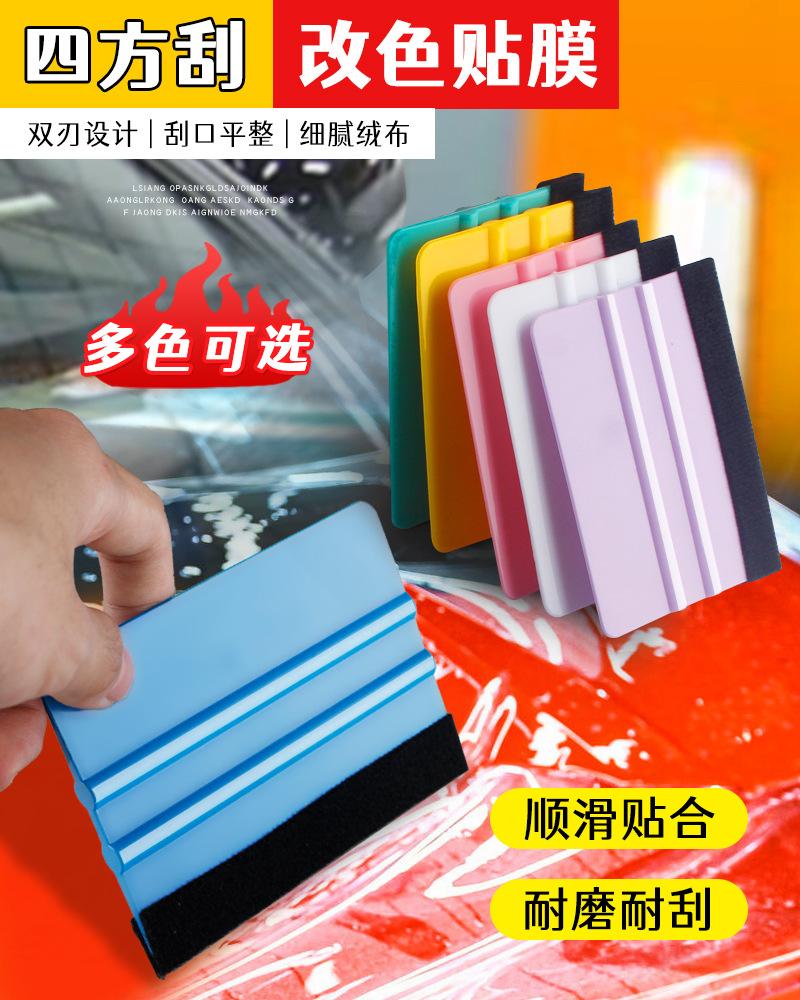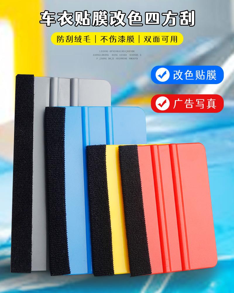 Espátula cuadrada para película de coche con franela, multicolor, opcional, espátula para película que cambia de color, espátula para construcción de película de modulación de luz