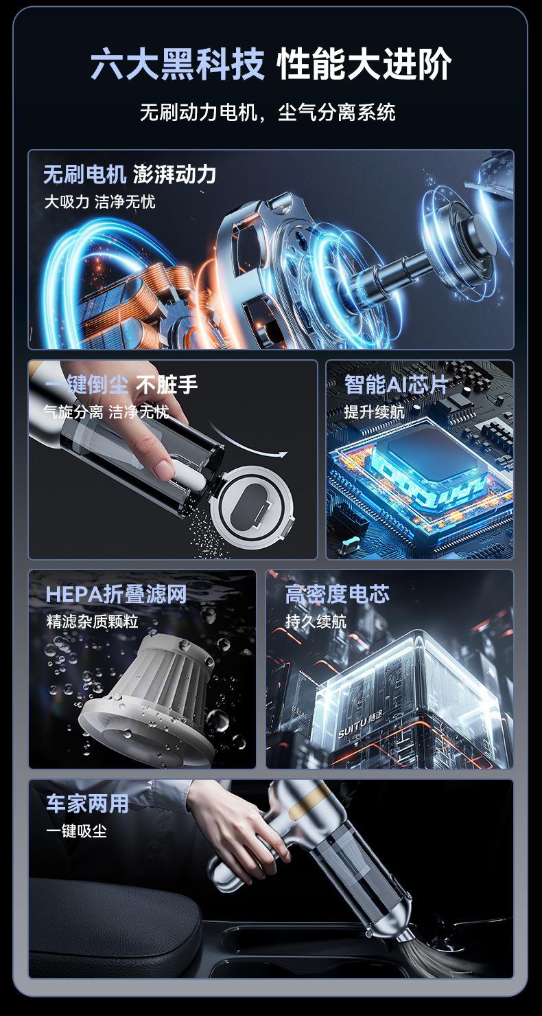 Brushless two-speed adjustment/blow, suction and charging four-in-one/one-c dust pouring/7.4v*12000pa/type-c c...