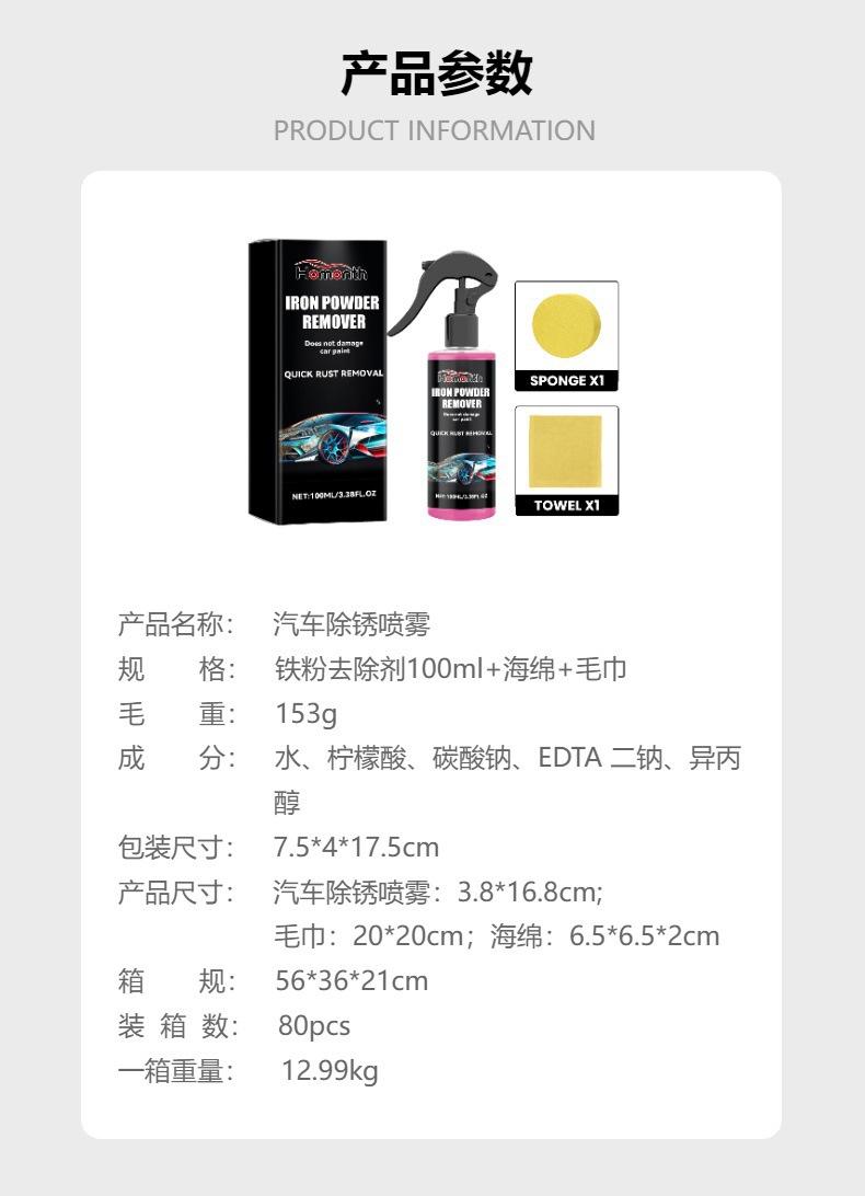 Spray quitaóxido para coches Homonth, limpieza y reacondicionamiento de coches, eliminación de óxido, prevención de óxido, abrillantador de pintura, mantenimiento de superficies, agente de pulido